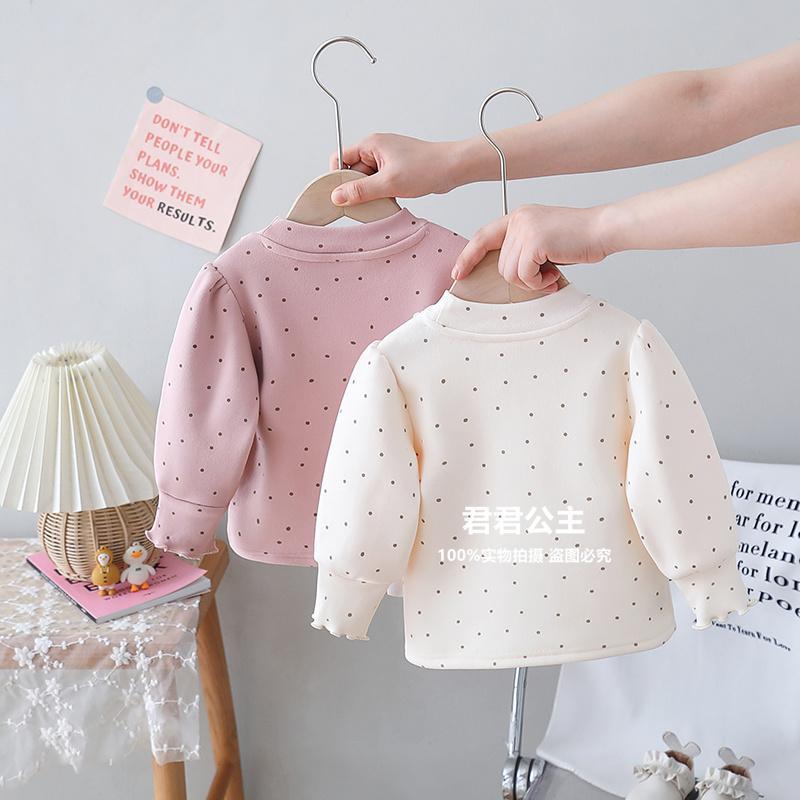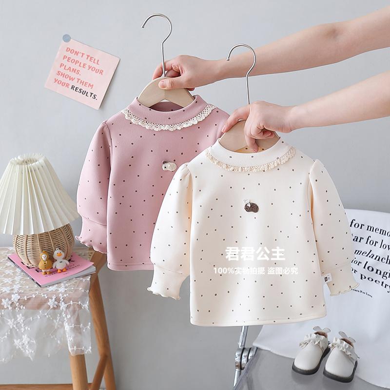 어린이 겨울옷 여아 기모 두껍게베이스 셔츠 반 높이 칼라 아기 소녀의 레이스 긴 소매 트렌디 탑스토어 가기