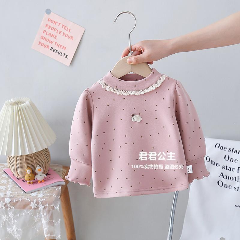 어린이 겨울옷 여아 기모 두껍게베이스 셔츠 반 높이 칼라 아기 소녀의 레이스 긴 소매 트렌디 탑