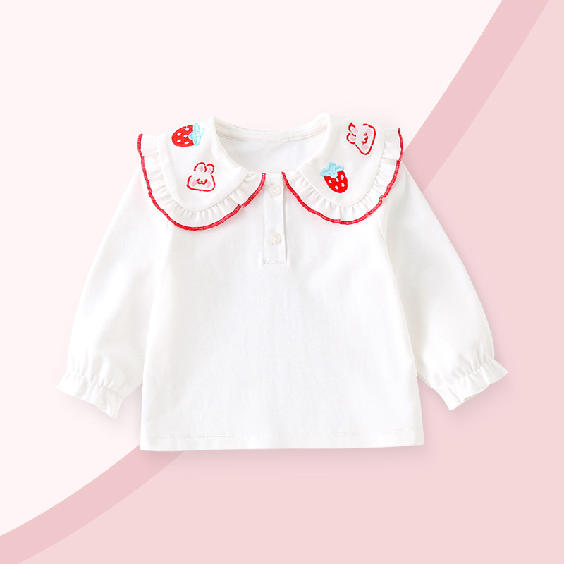 여자 셔츠 가을 의류 2025 새로운 스타일 베이비 화이트 탑 봄, 가을 어린이 셔츠 인형 셔츠 아동 의류스토어 가기
