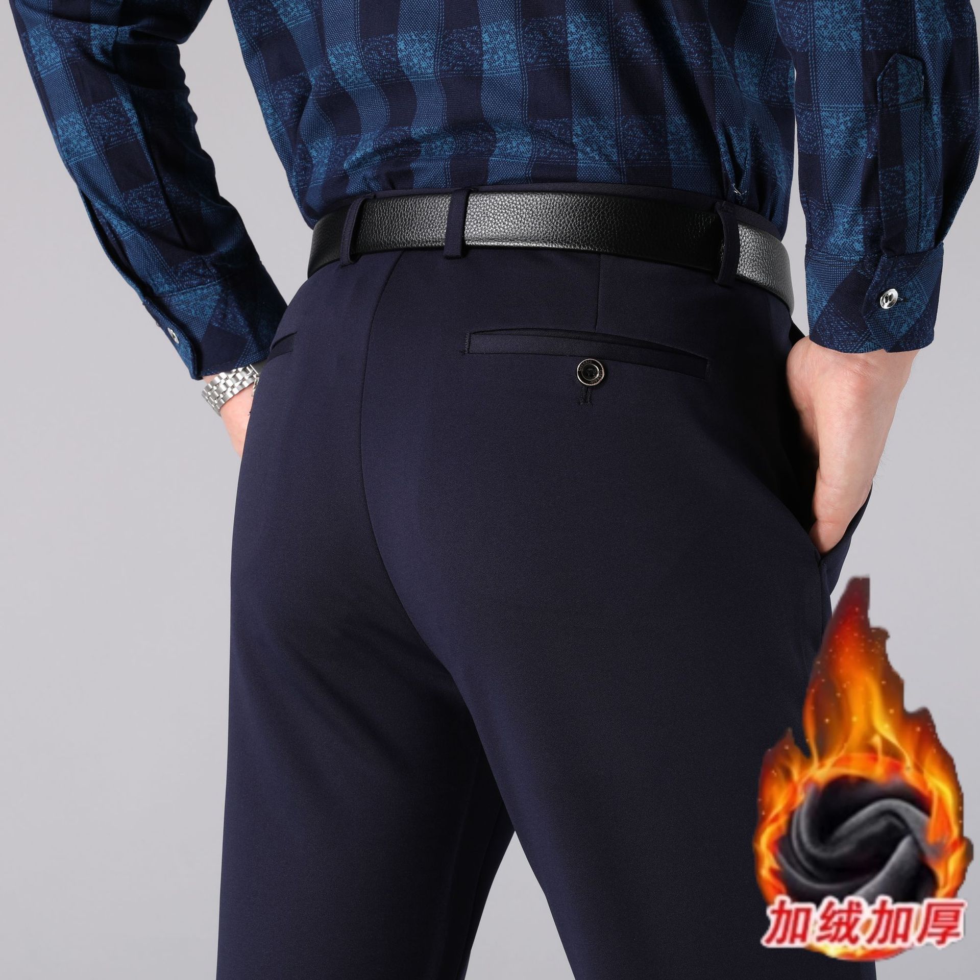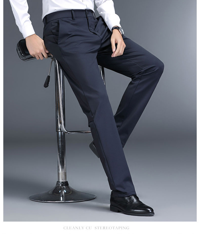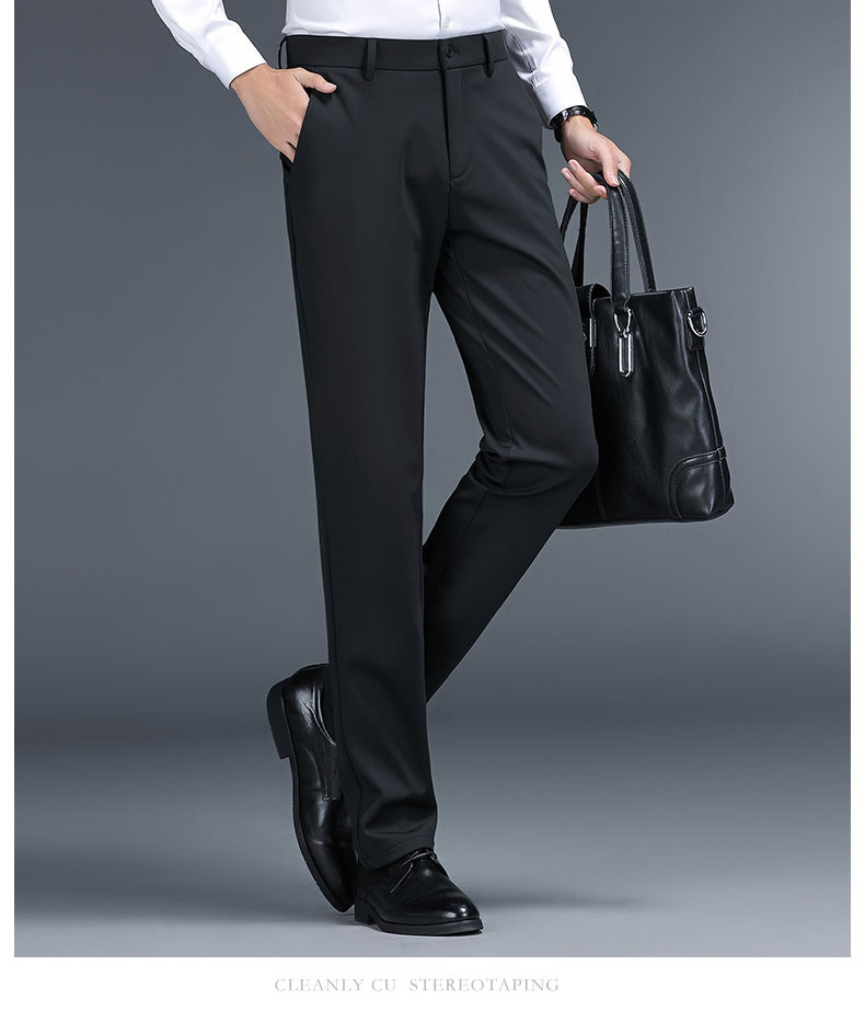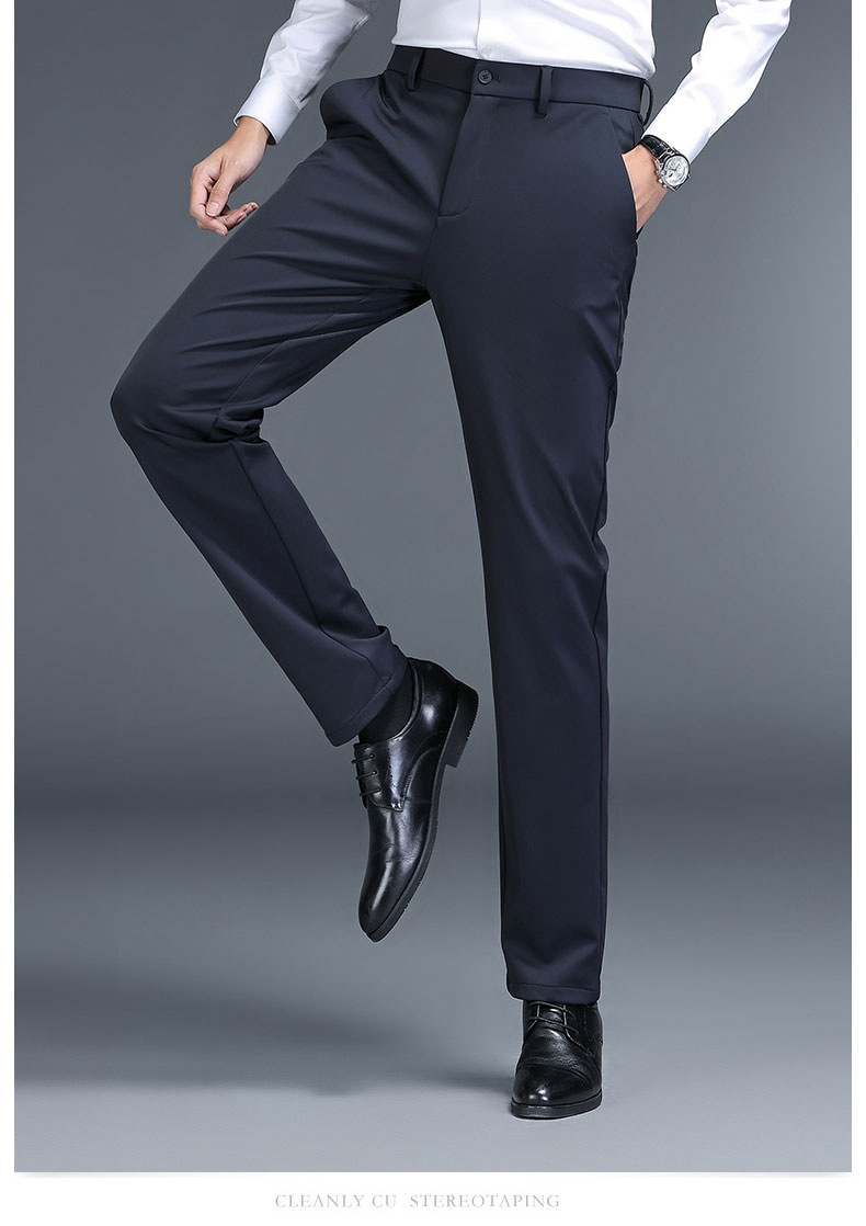 남성용 스트레이트 정장 바지 봄 가을 두께감 있는 비즈니스 바지 신축성 높은 허리 슬림핏 정장 남성 캐주얼 바지스토어 가기