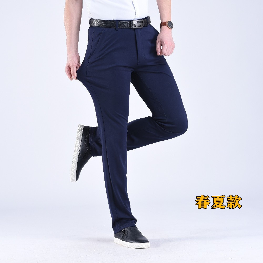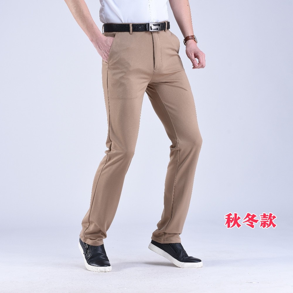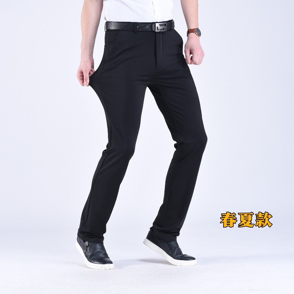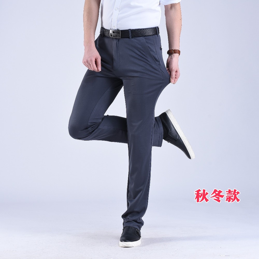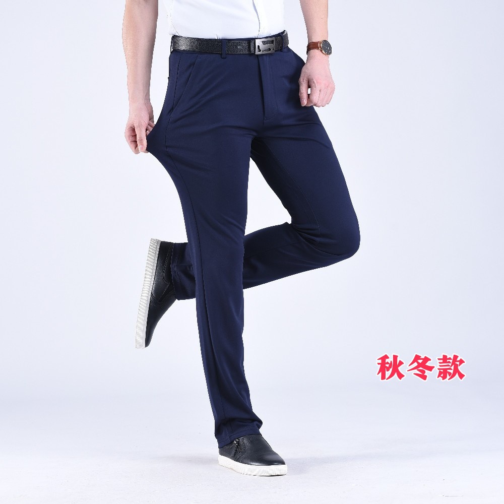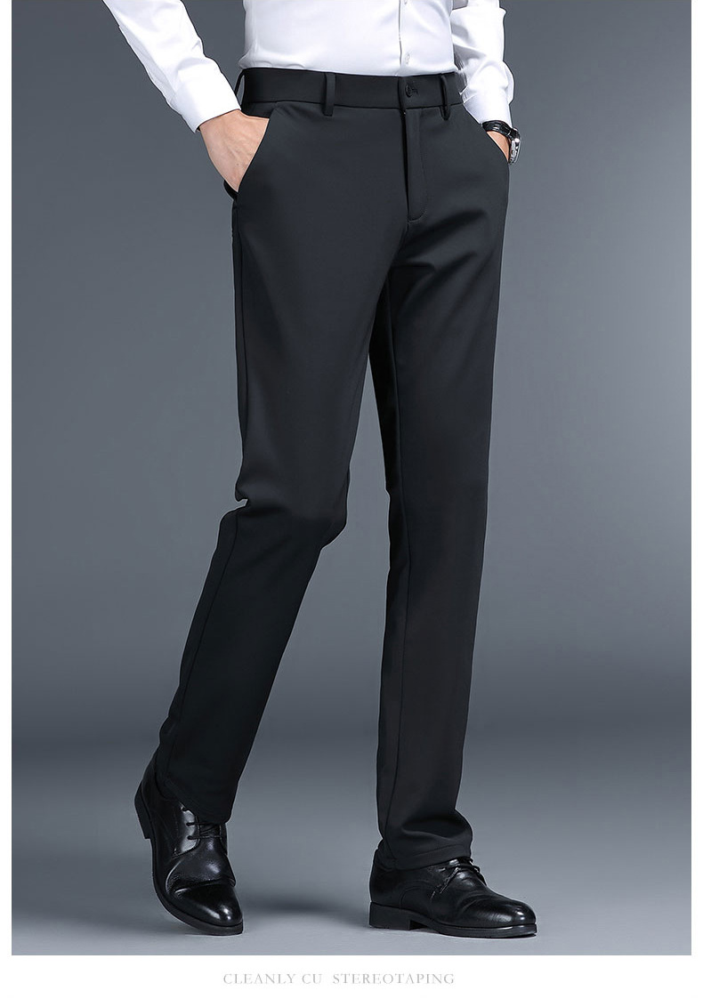 남성용 스트레이트 정장 바지 봄 가을 두께감 있는 비즈니스 바지 신축성 높은 허리 슬림핏 정장 남성 캐주얼 바지