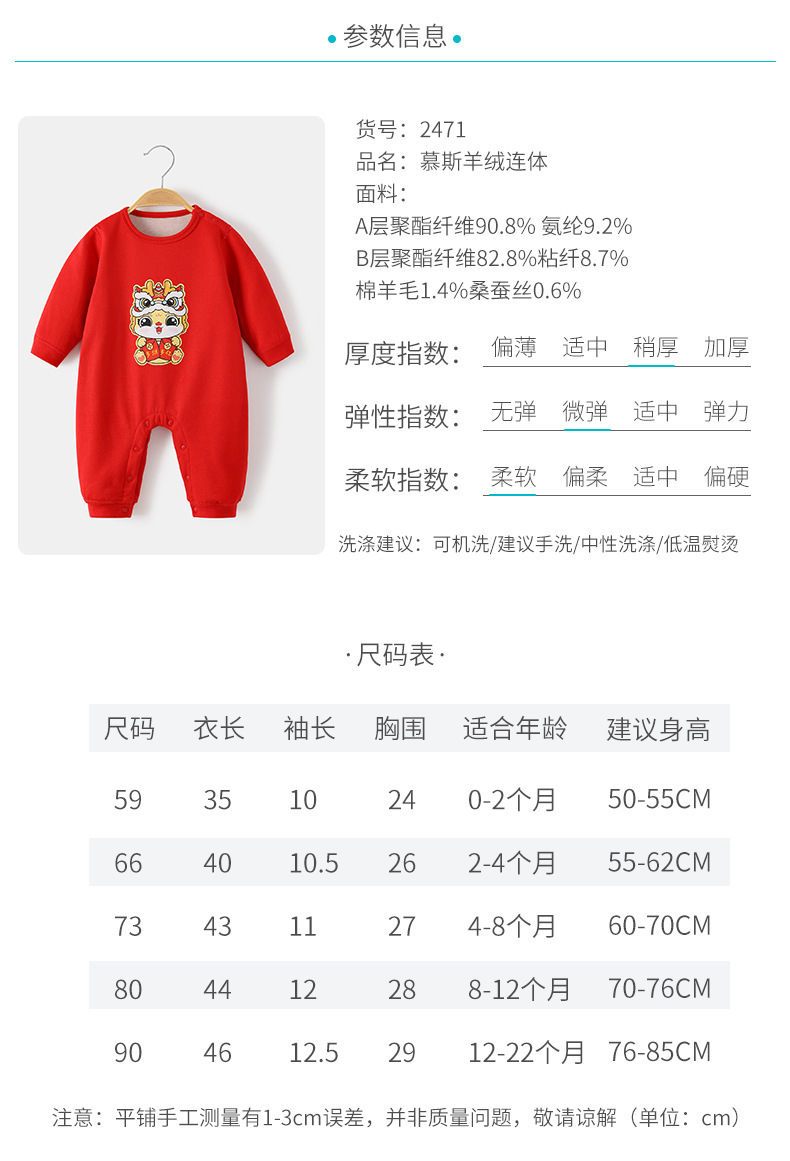 아기 신년 서비스 붉은 설날 면화 한 조각 옷 아기의 가을과 겨울 신생아 두꺼운 등반 옷스토어 가기