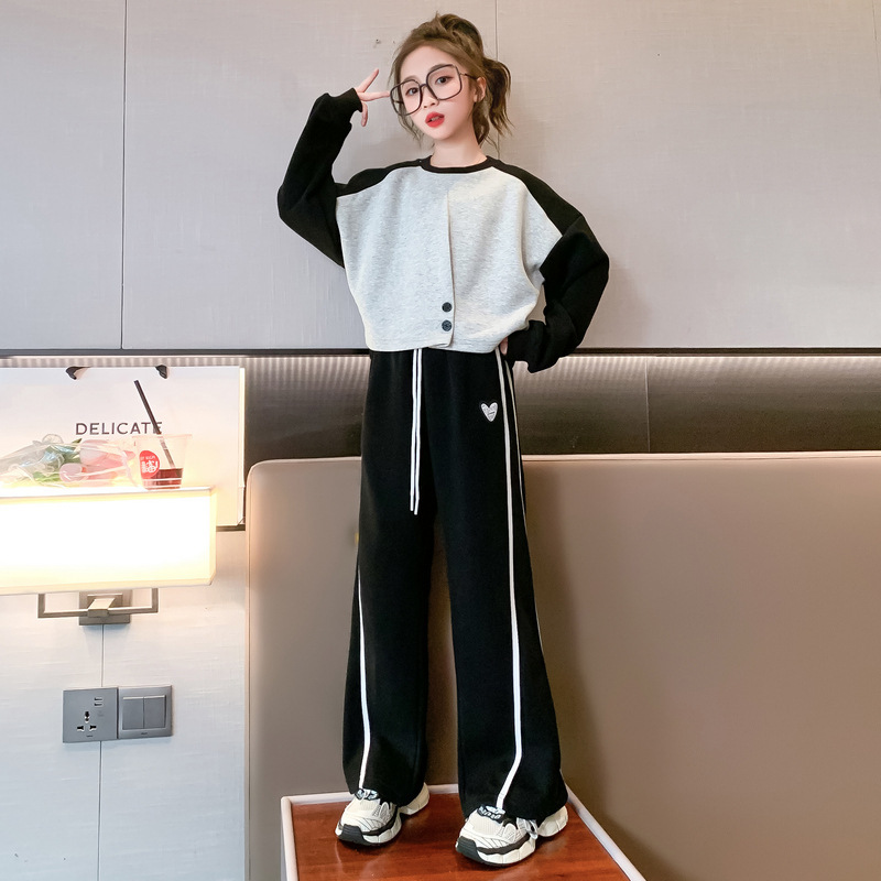 빅 보이 2023 한국 스타일 캐주얼웨어 서양식 소녀의 가을 착용 세트 스포츠 땀 투피스 새로운 스타일 달콤하고 쿨