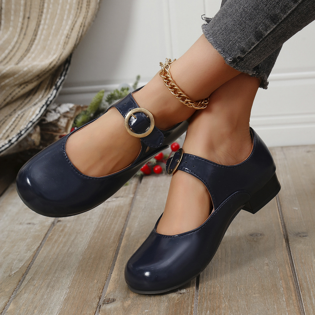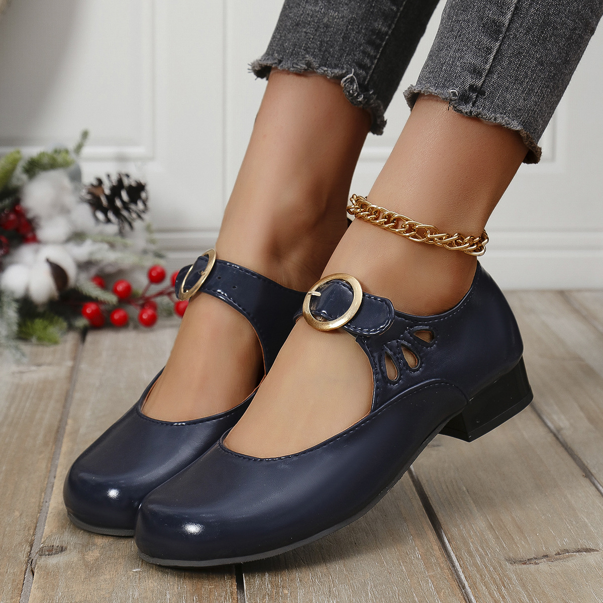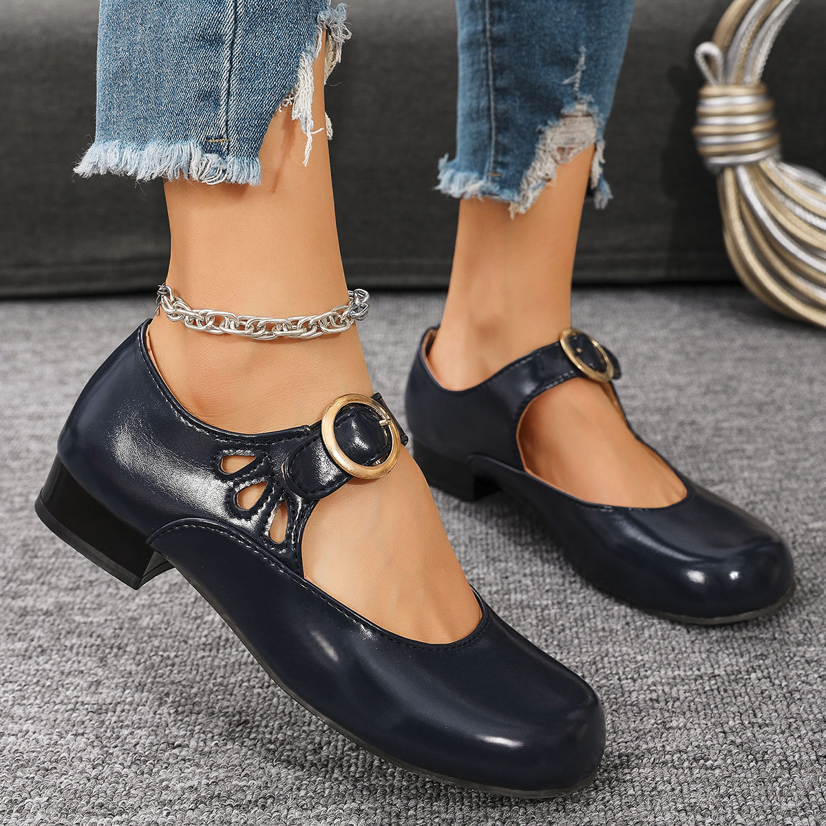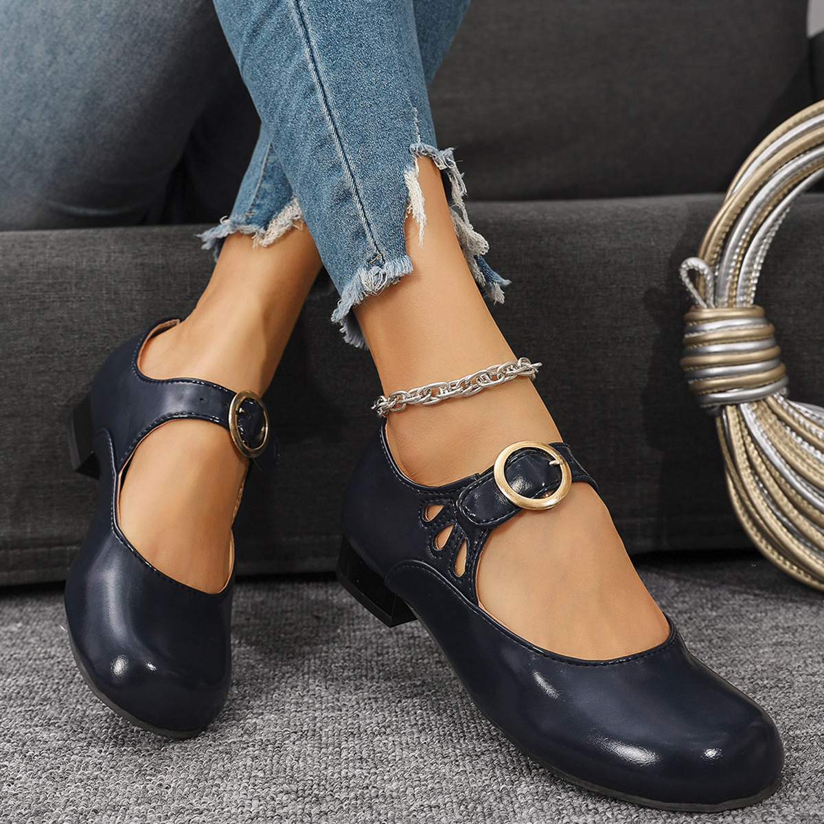 2025 봄 새 여성 신발 싱글 레이어 신발 올매치 로우 힐 라운드 토 플러스 사이즈 신발 여성 신발 메리 제인스토어 가기