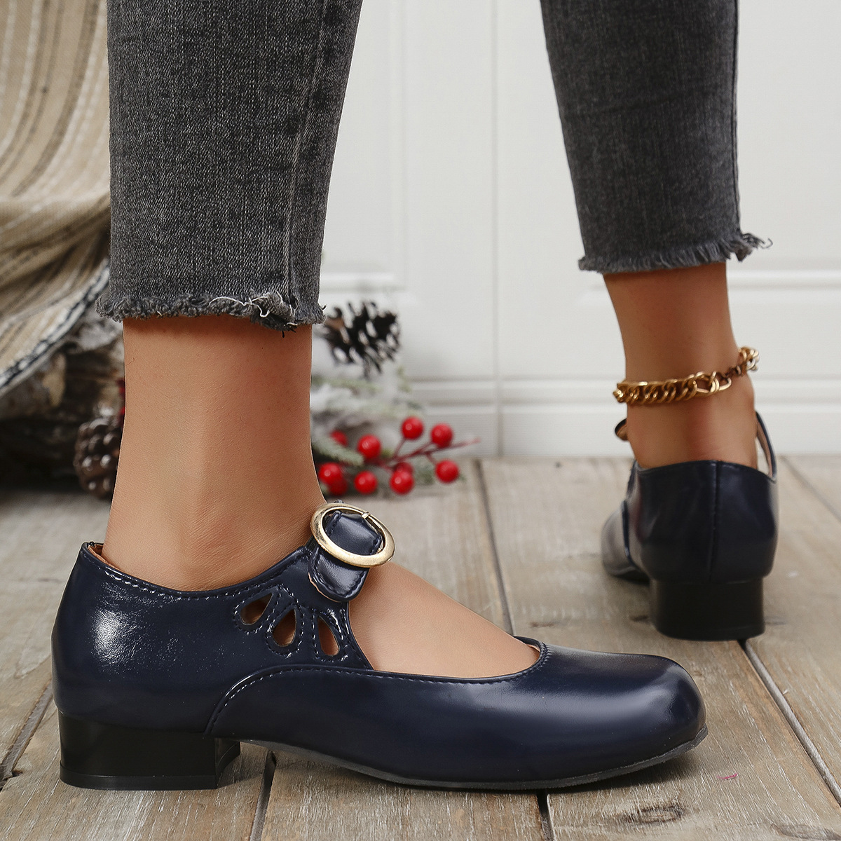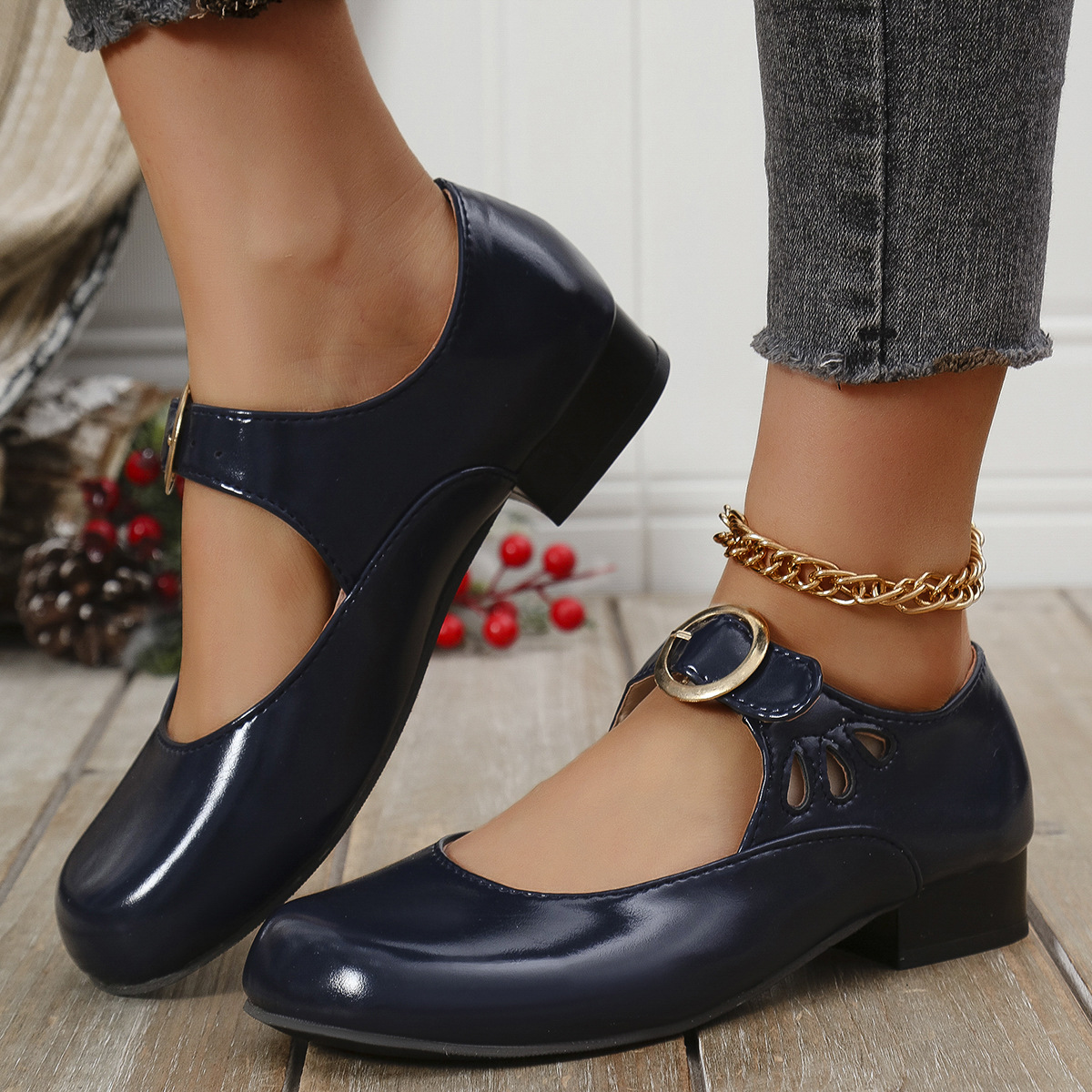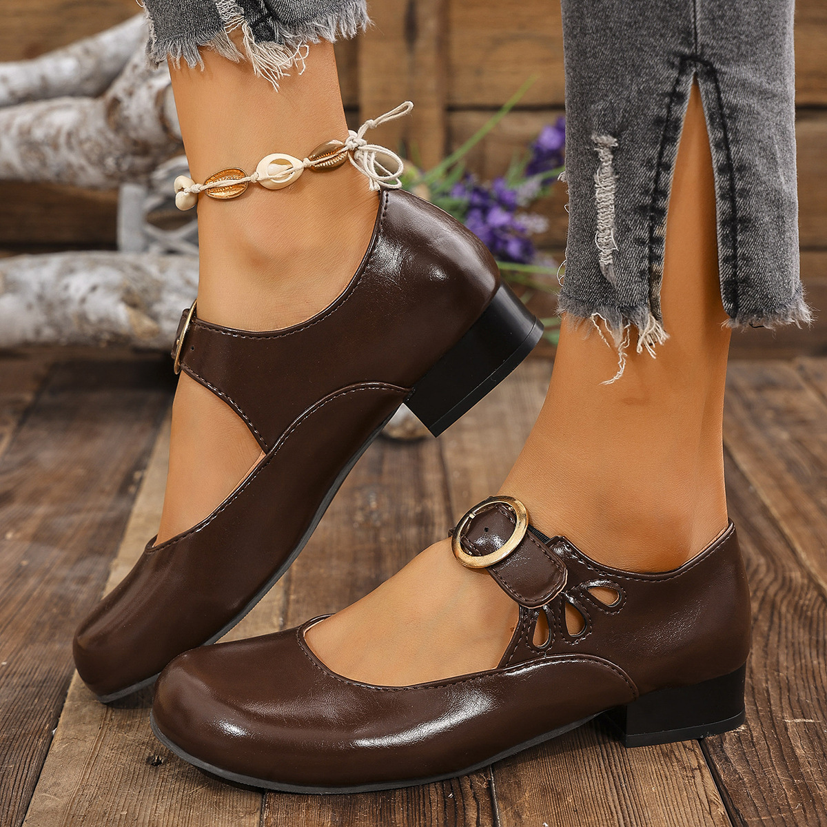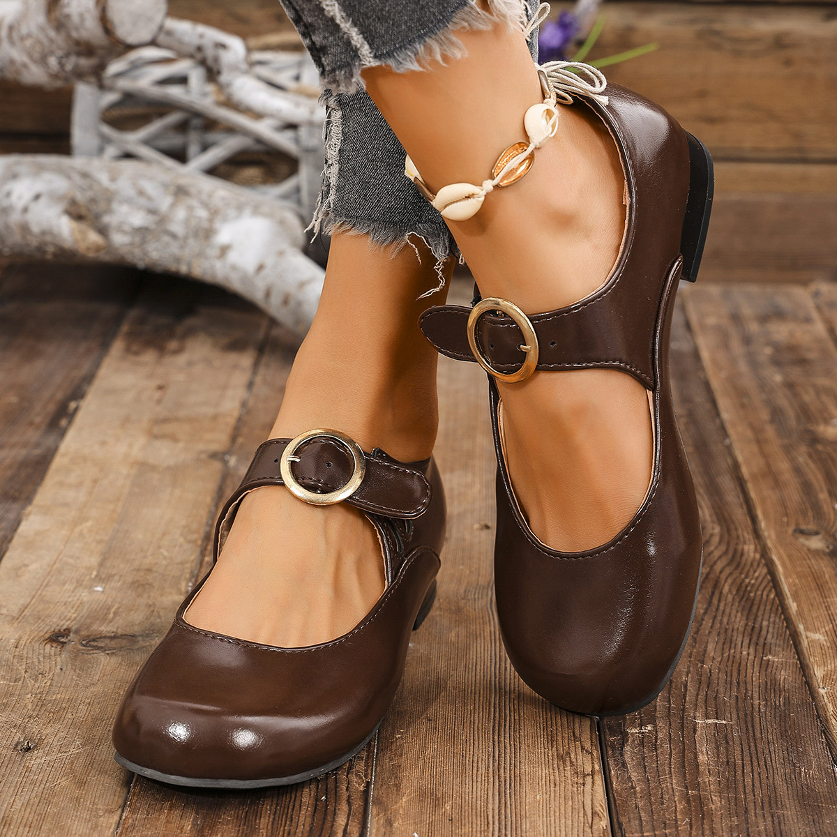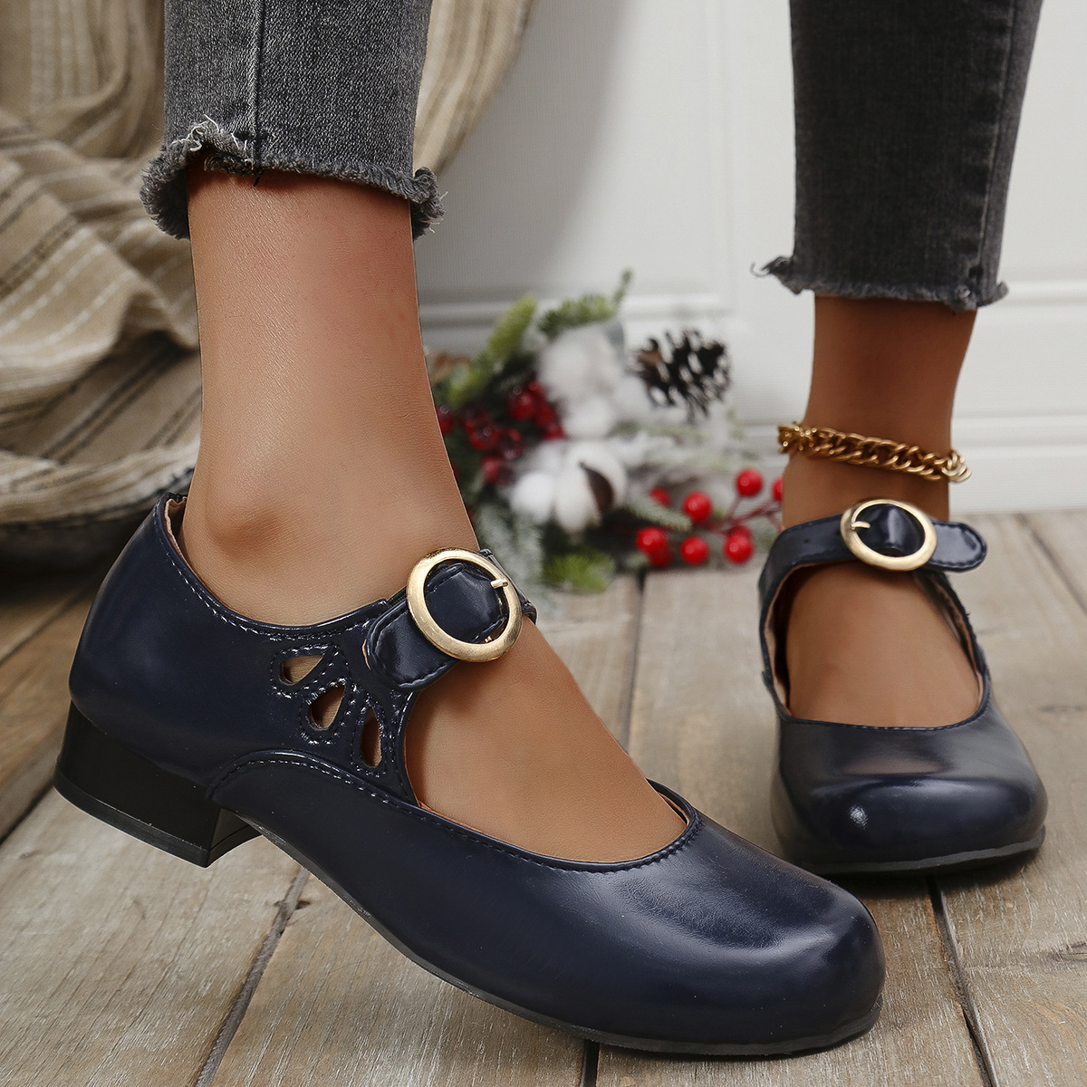 2025 봄 새 여성 신발 싱글 레이어 신발 올매치 로우 힐 라운드 토 플러스 사이즈 신발 여성 신발 메리 제인스토어 가기