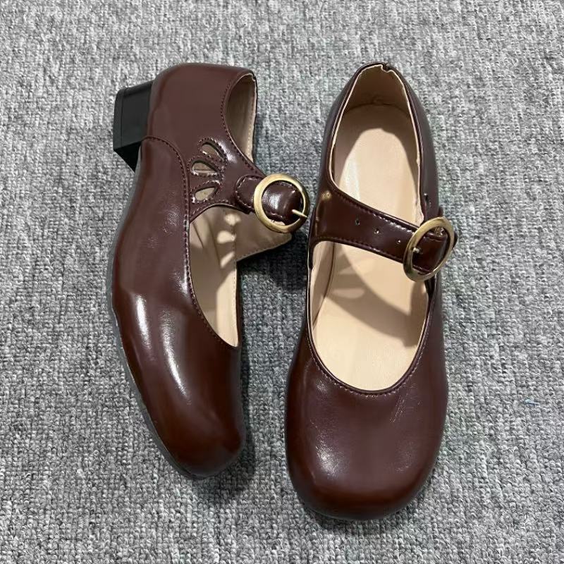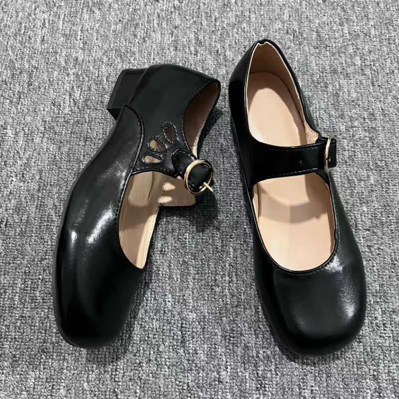 2025 봄 새 여성 신발 싱글 레이어 신발 올매치 로우 힐 라운드 토 플러스 사이즈 신발 여성 신발 메리 제인