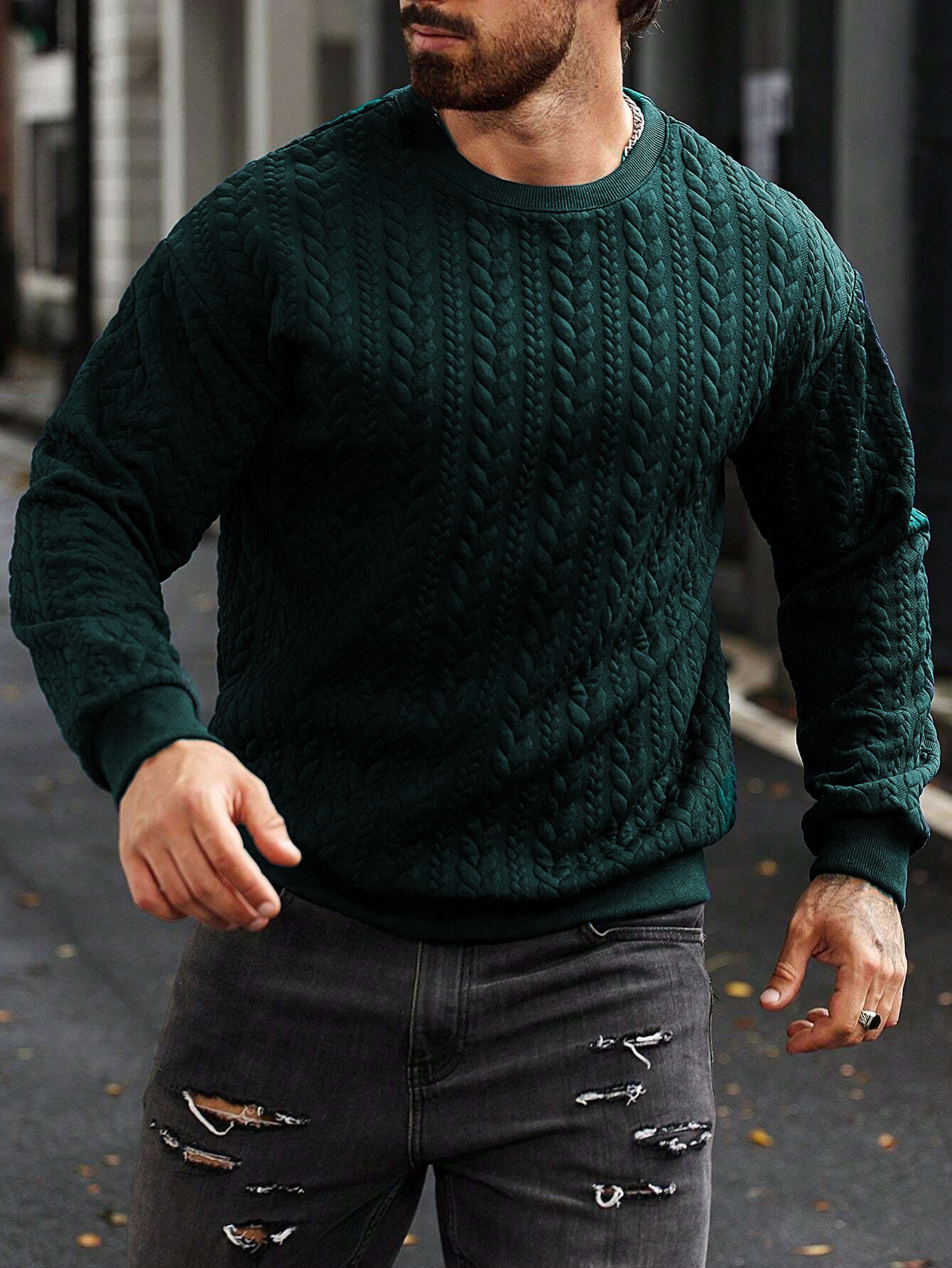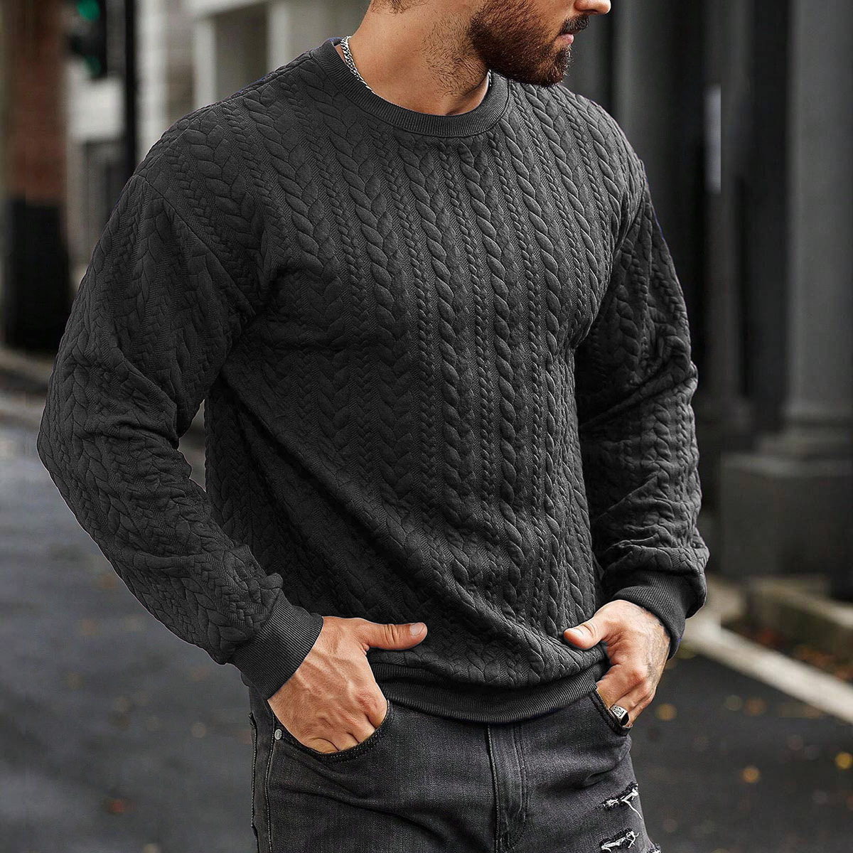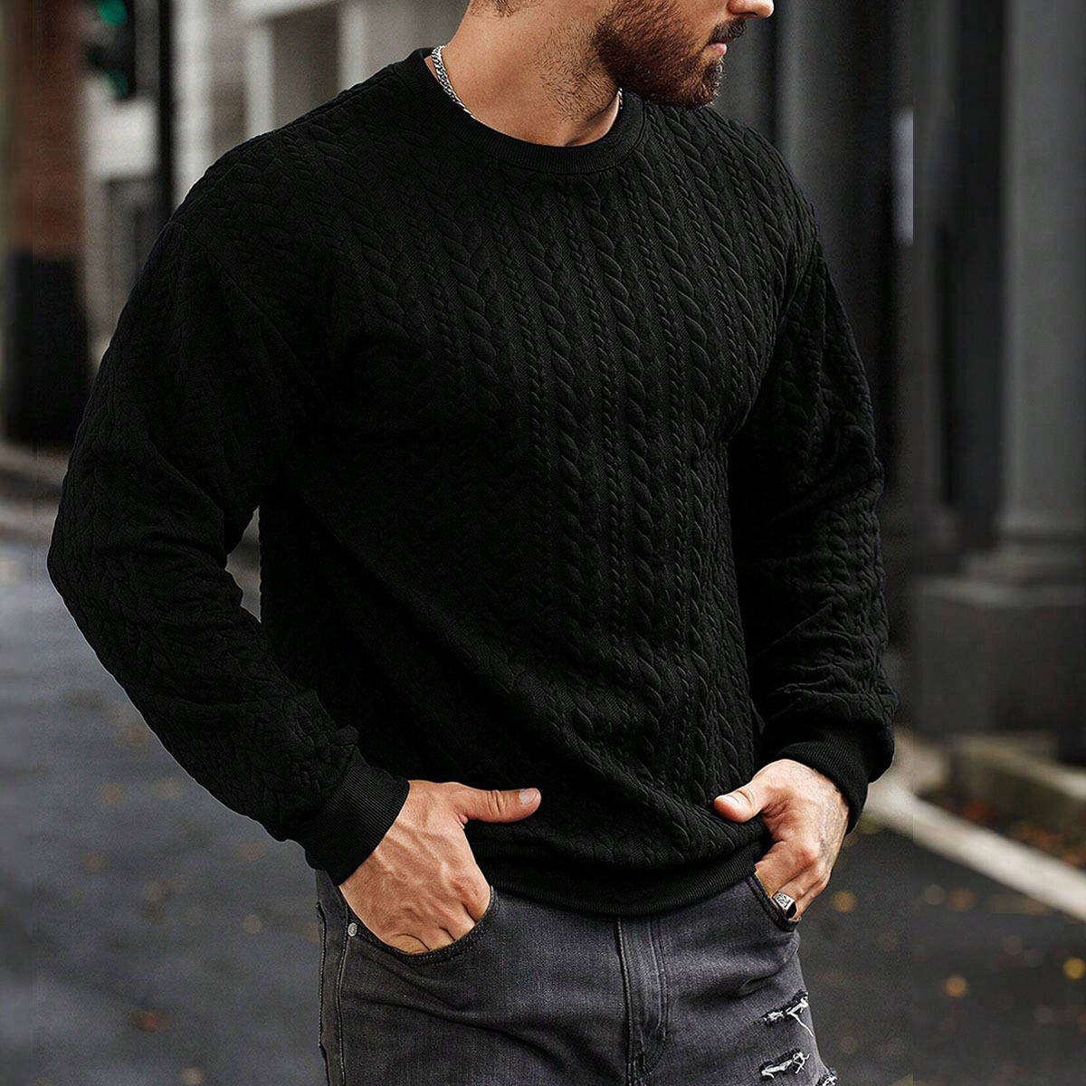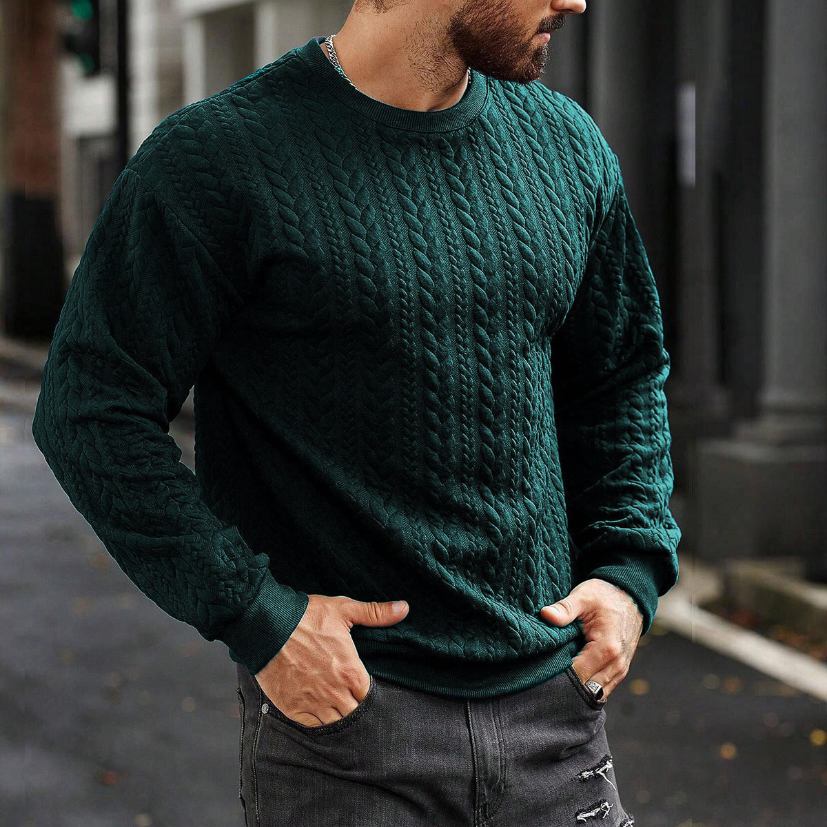 국경 간 미국 복고풍 둥근 목 남자 무거운 긴 소매 국경 가을과 겨울 캐주얼 자카드 땀 3672