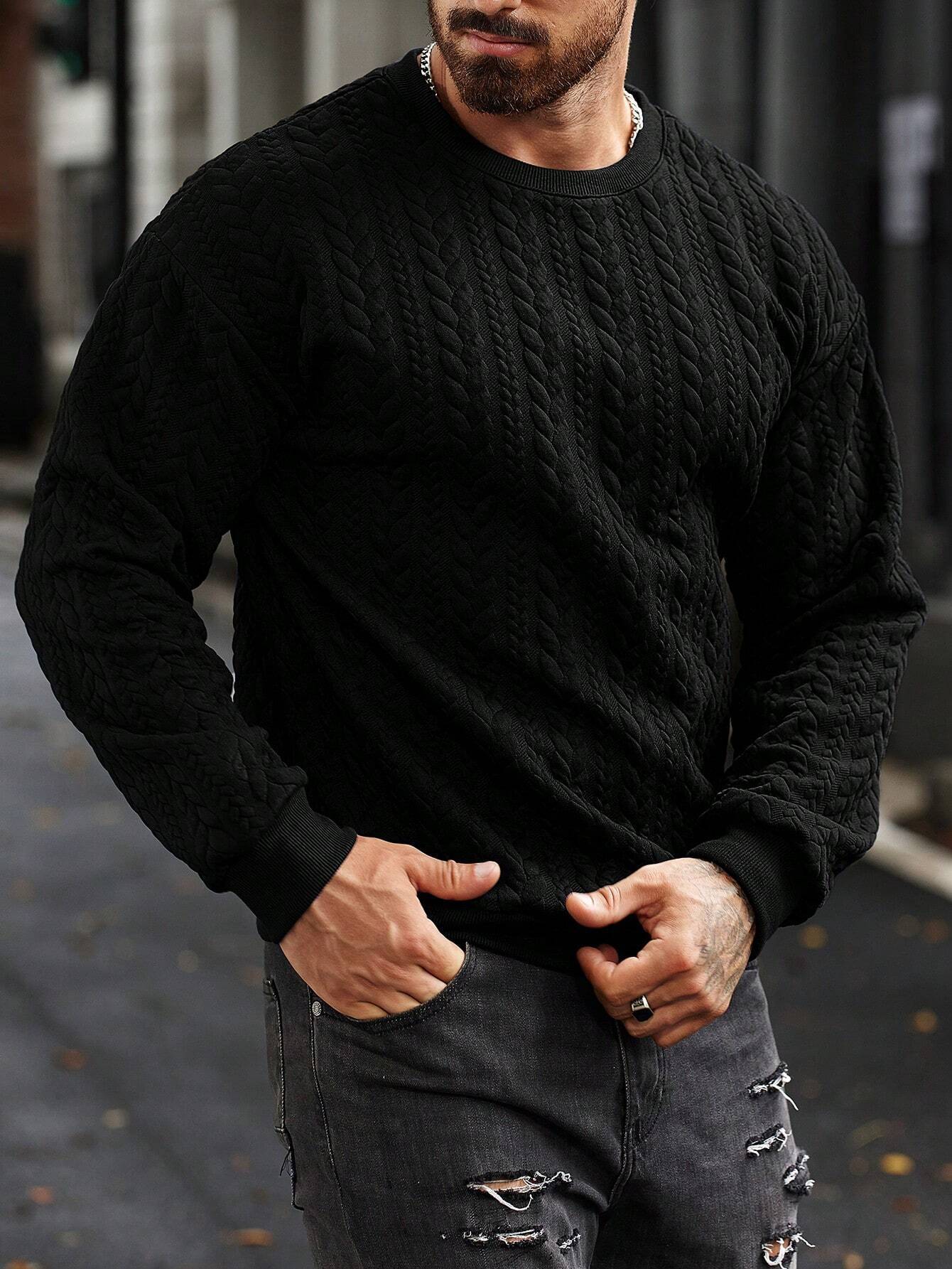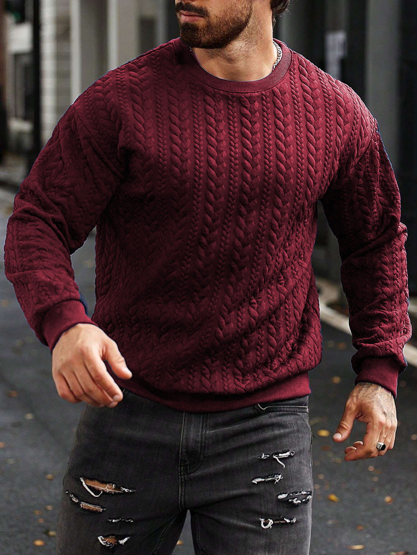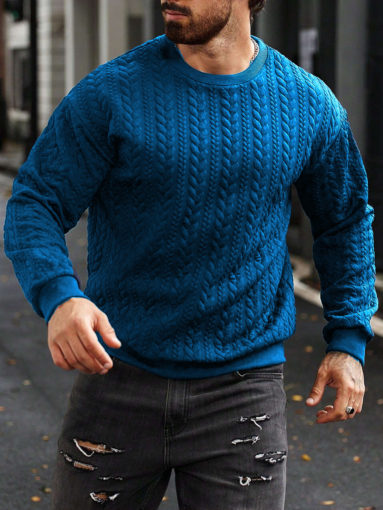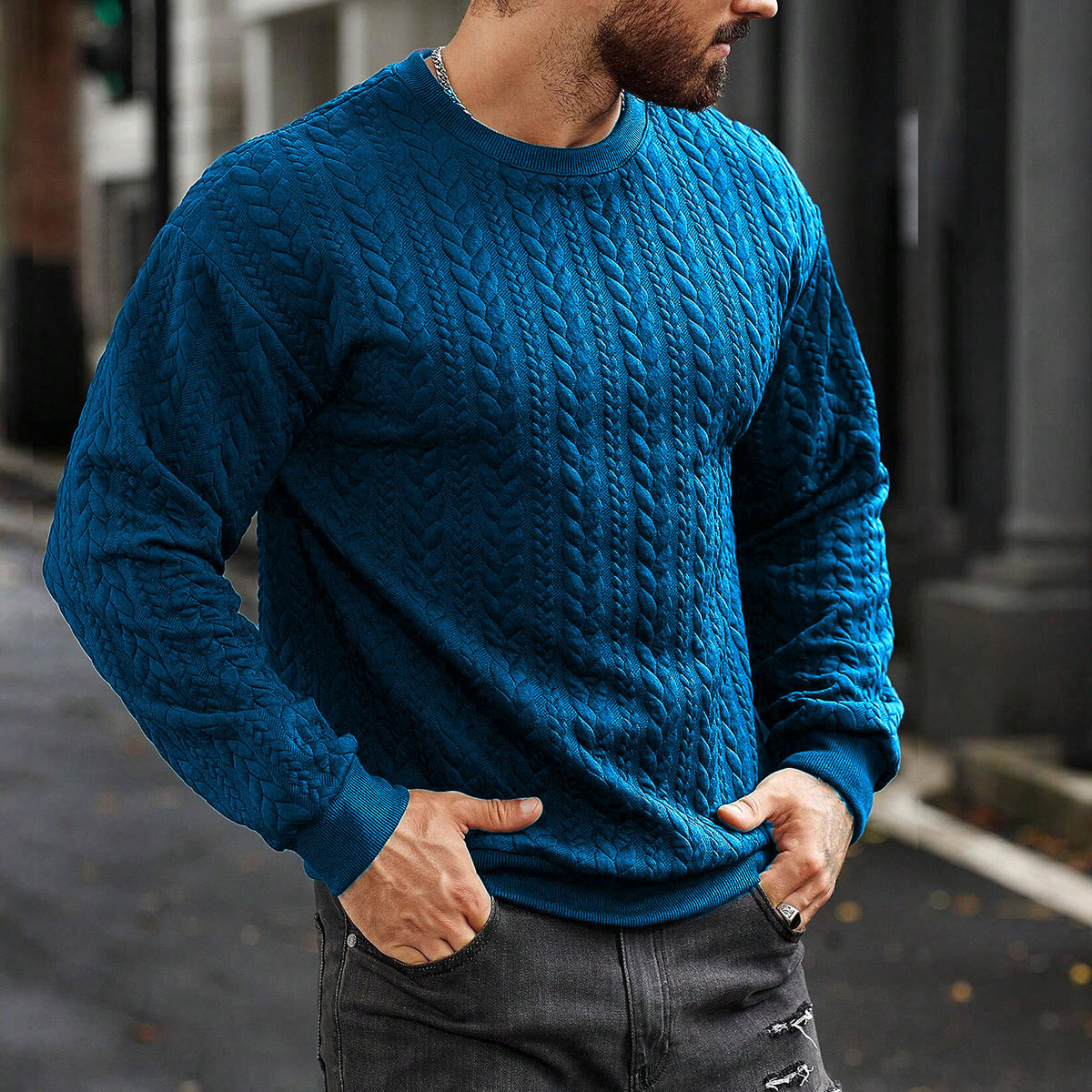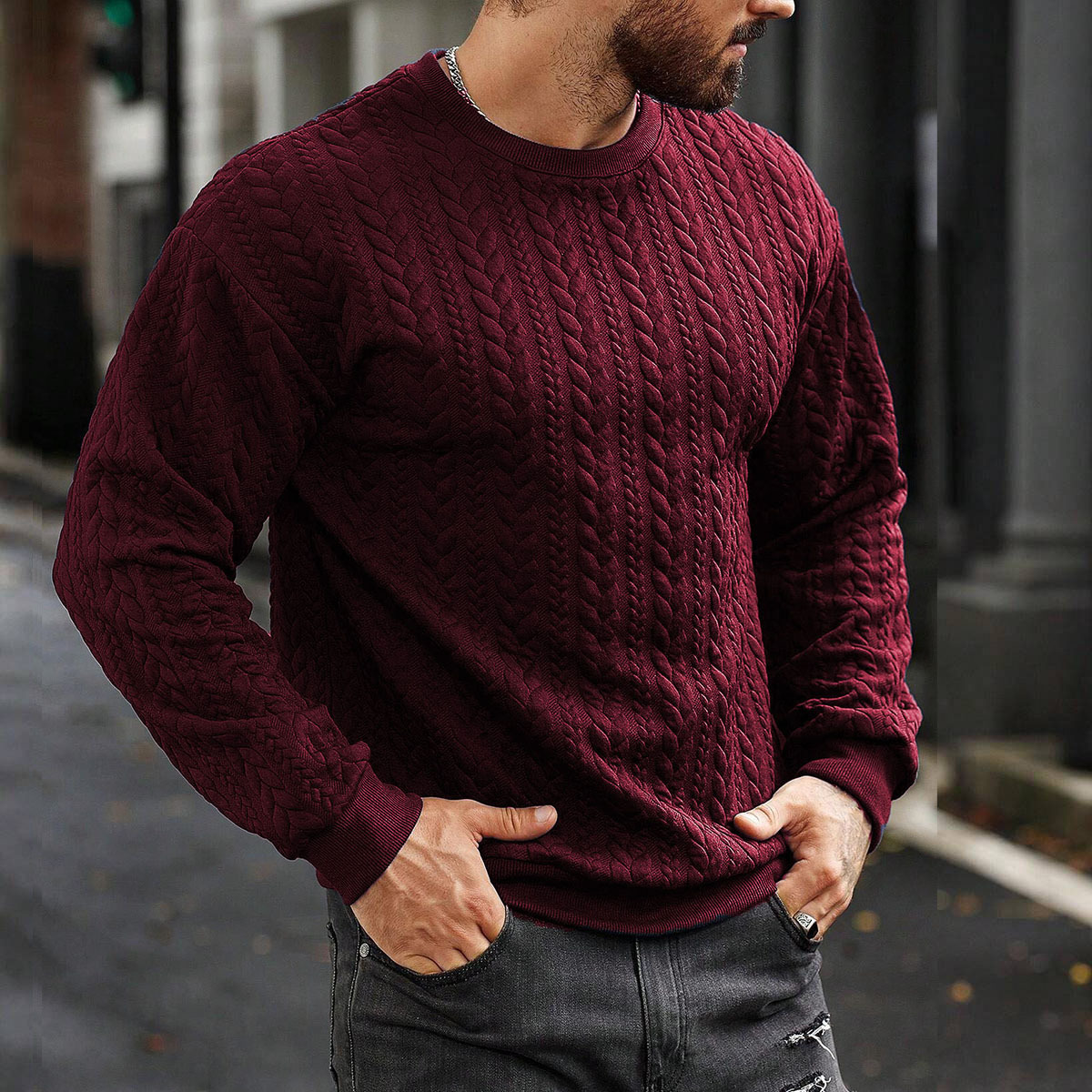 국경 간 미국 복고풍 둥근 목 남자 무거운 긴 소매 국경 가을과 겨울 캐주얼 자카드 땀 3672