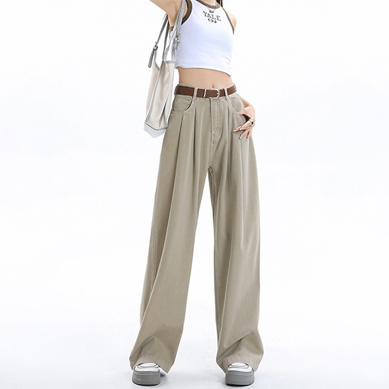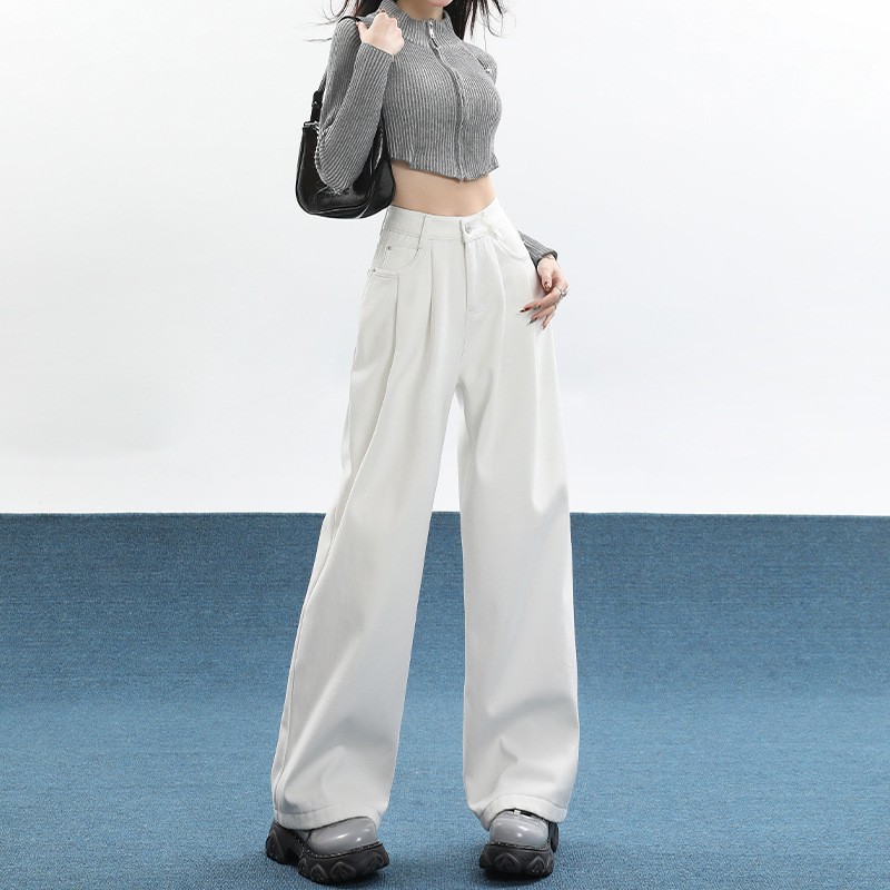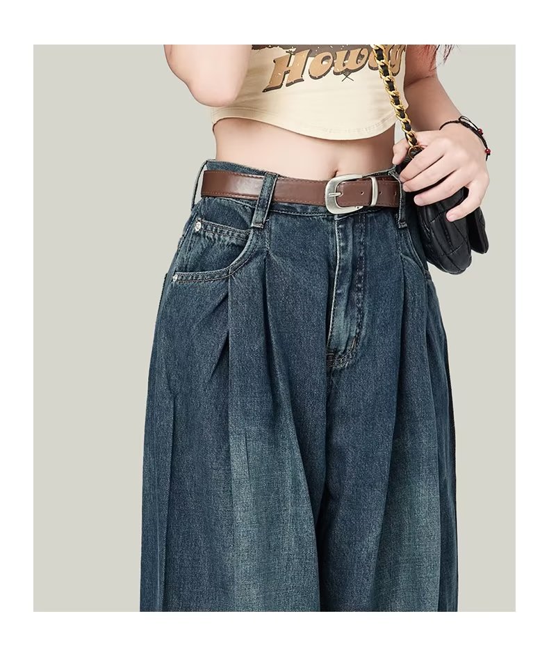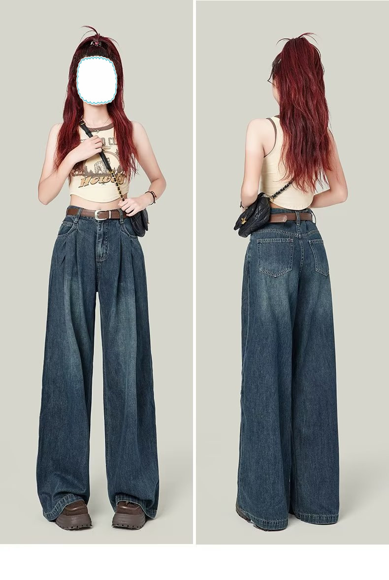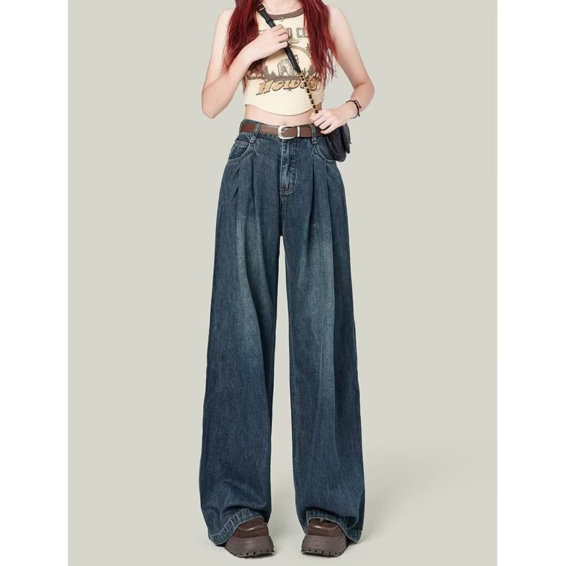 빈티지 넓은 다리 청바지 여성의 봄 2023 새로운 높은 허리 모양의 슬림 모양의 바지 디자인 센스 배 모양의 바디