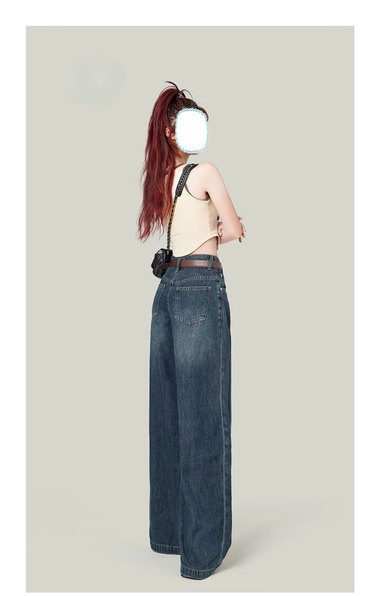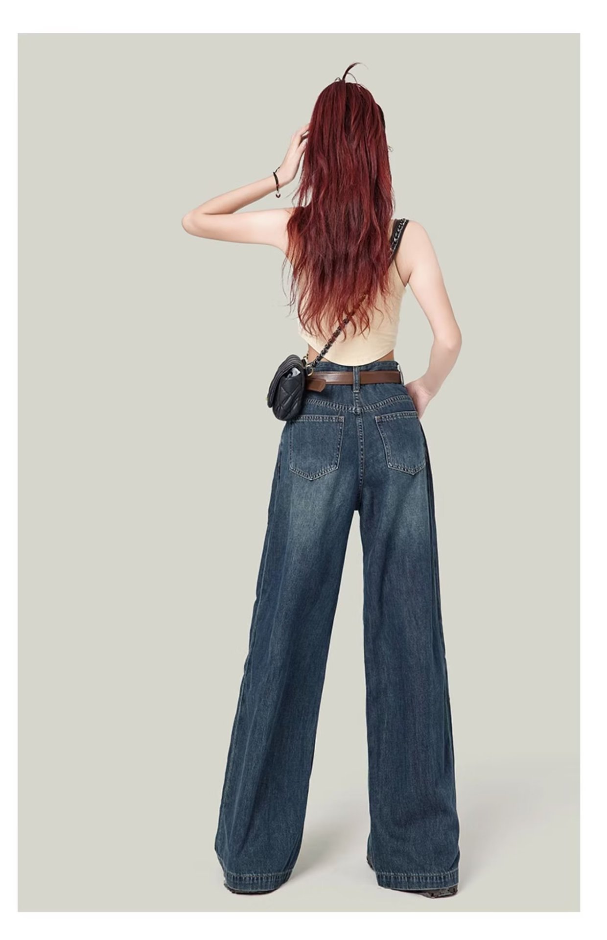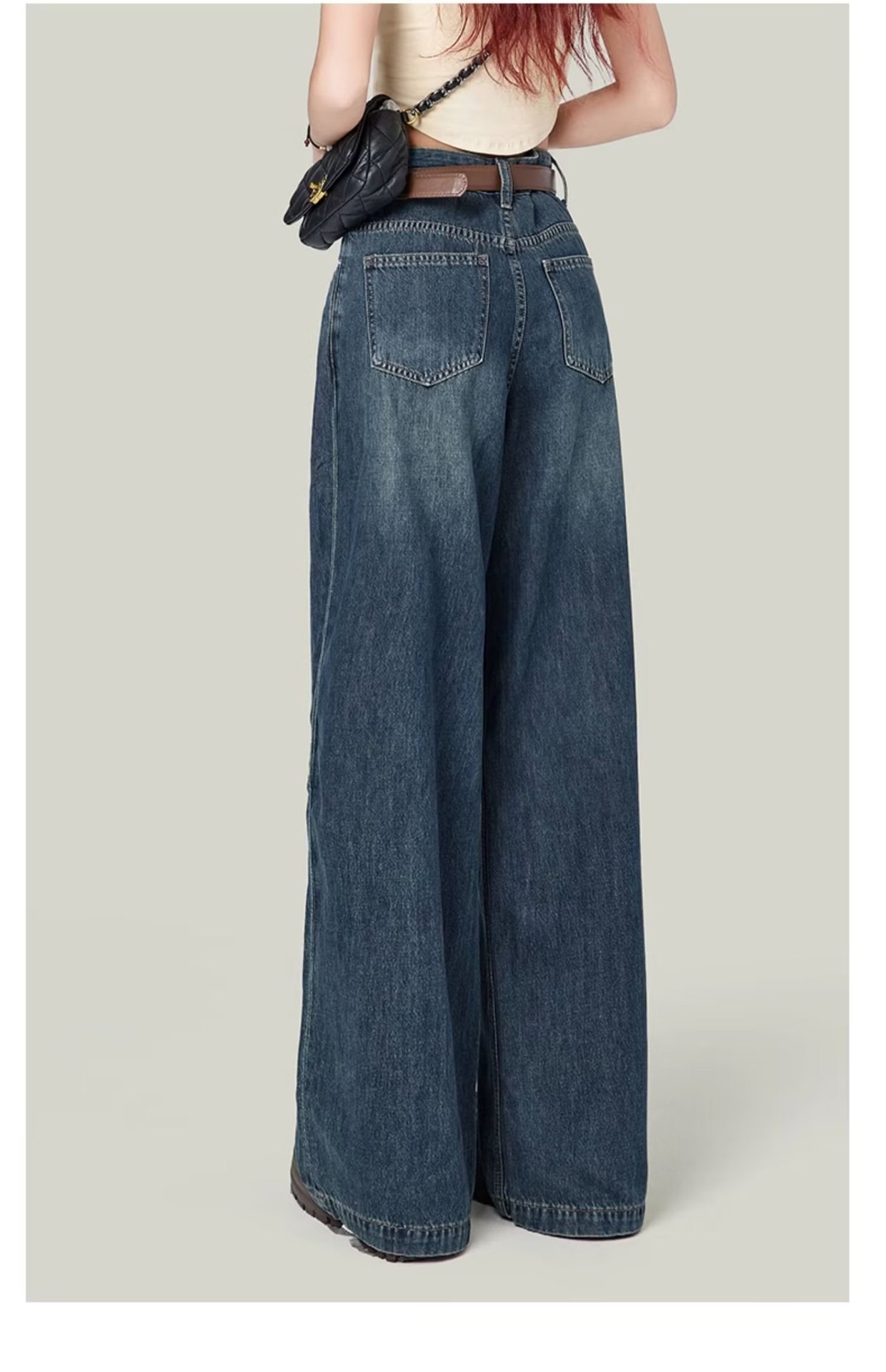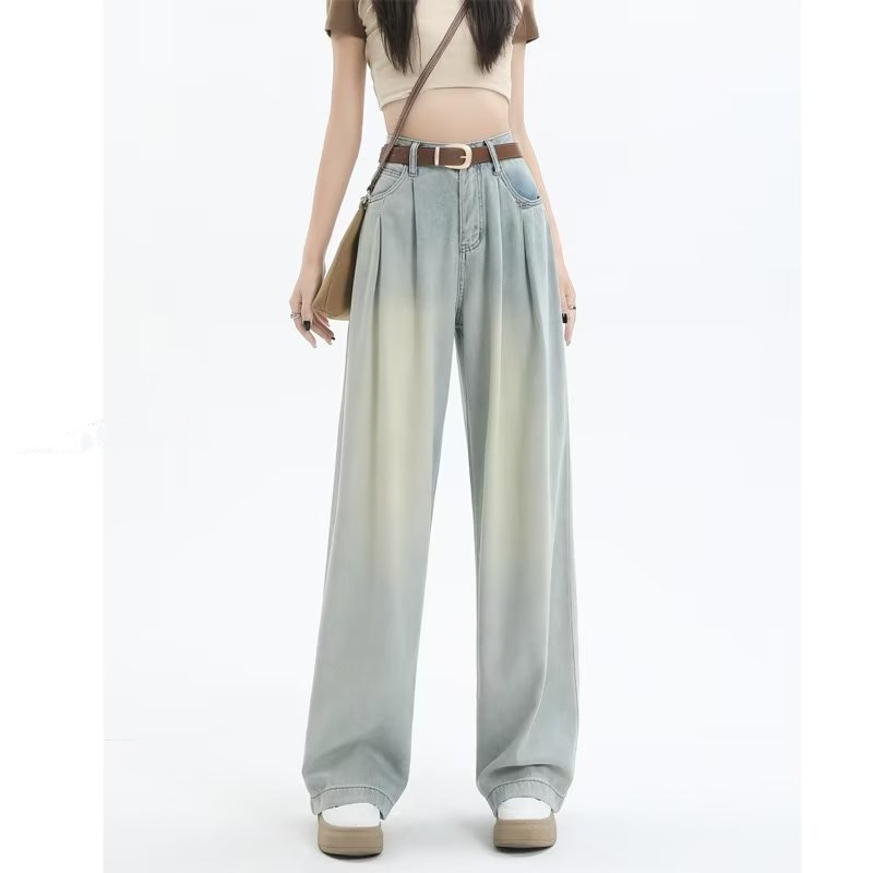 빈티지 넓은 다리 청바지 여성의 봄 2023 새로운 높은 허리 모양의 슬림 모양의 바지 디자인 센스 배 모양의 바디