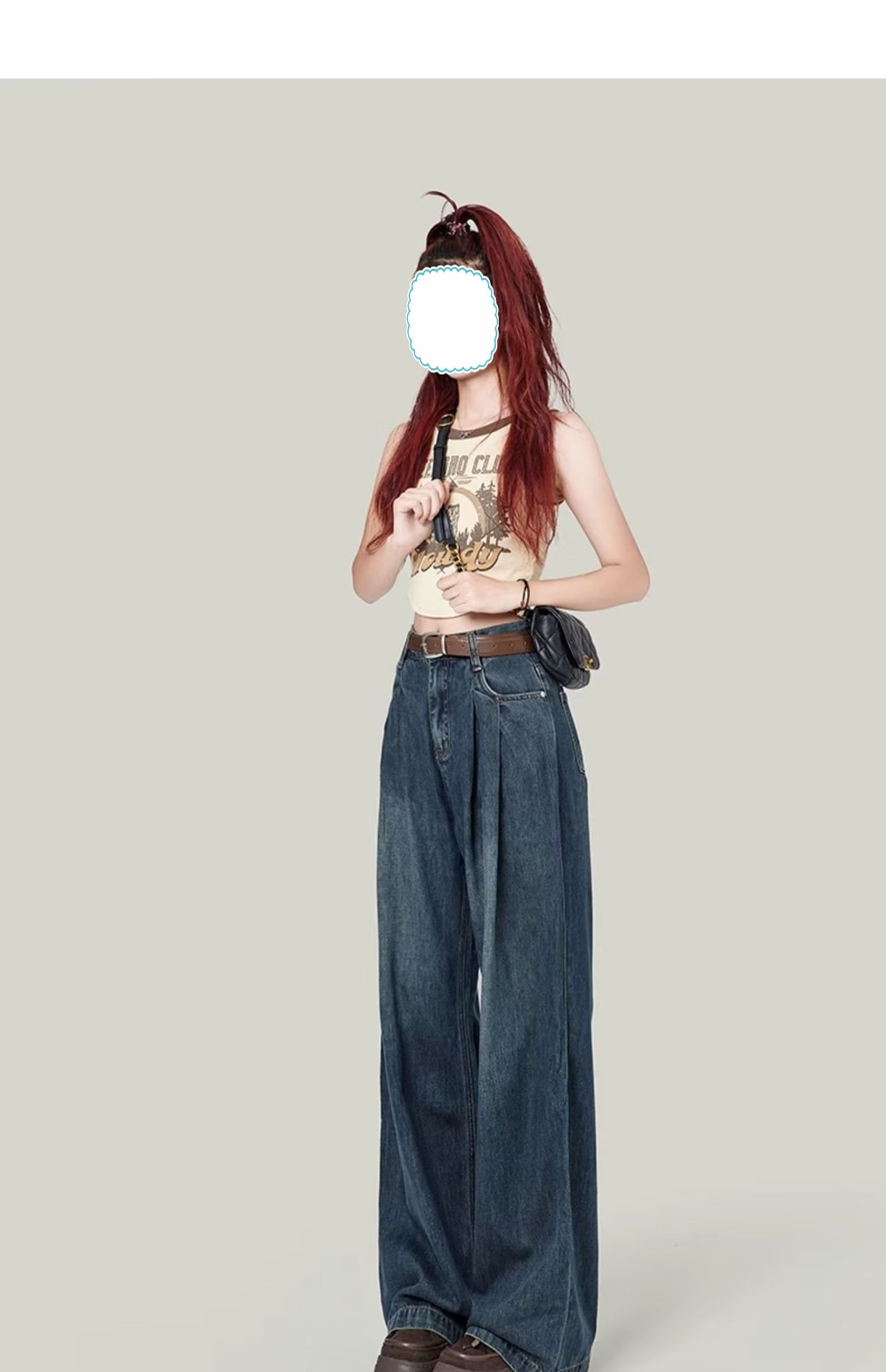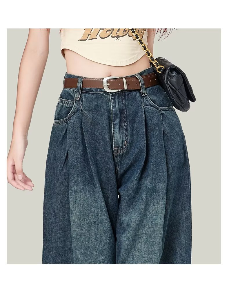 빈티지 넓은 다리 청바지 여성의 봄 2023 새로운 높은 허리 모양의 슬림 모양의 바지 디자인 센스 배 모양의 바디스토어 가기