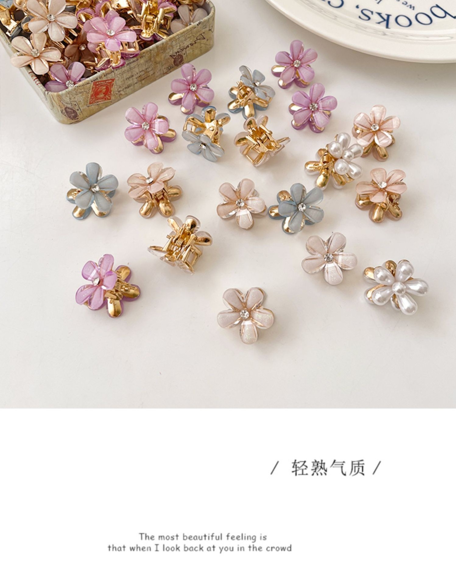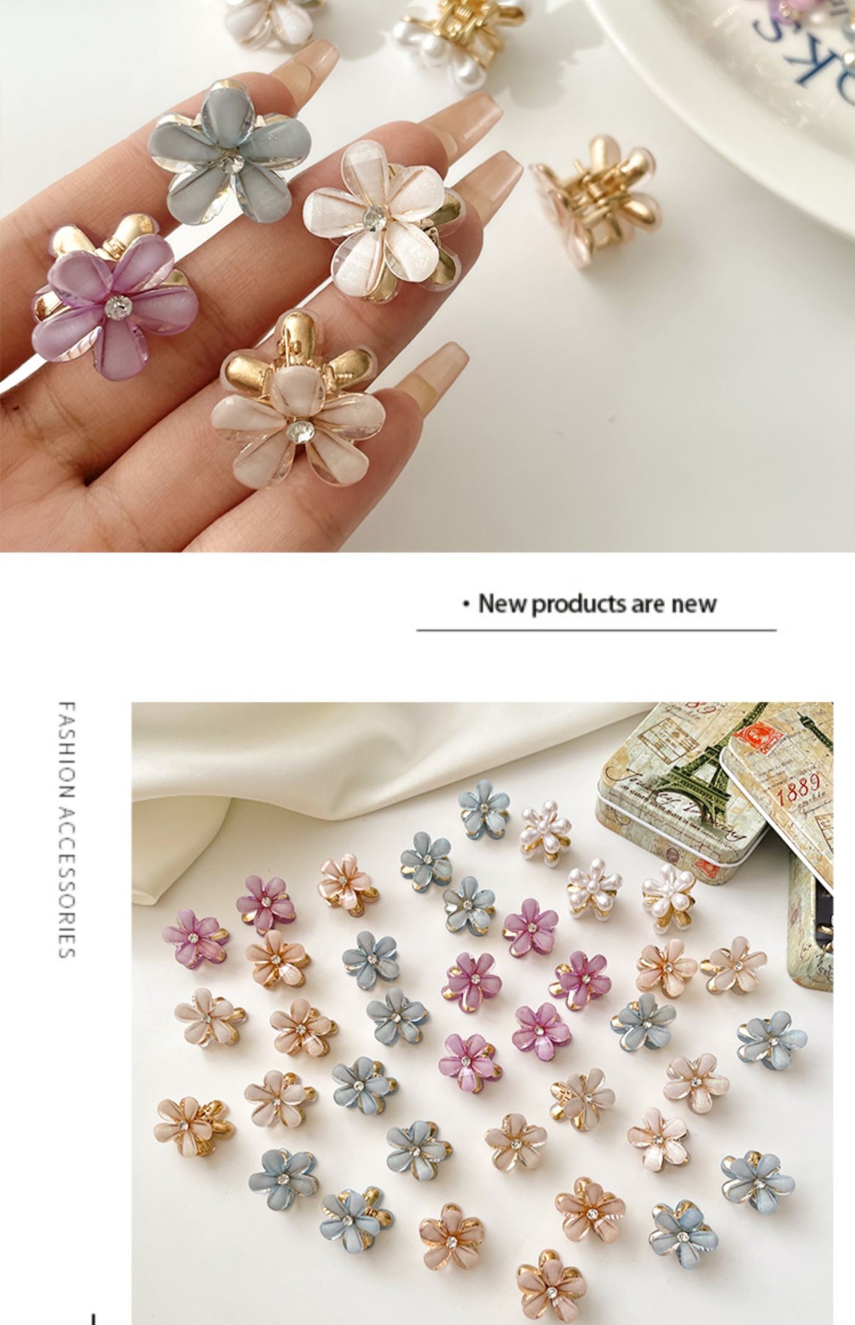 꽃 모조 다이아몬드 작은 그립 클립 측면 이마 머리핀 여성 앞머리 공주 머리 스몰 사이즈 클립 작은 머리핀 머리 장식