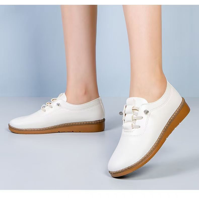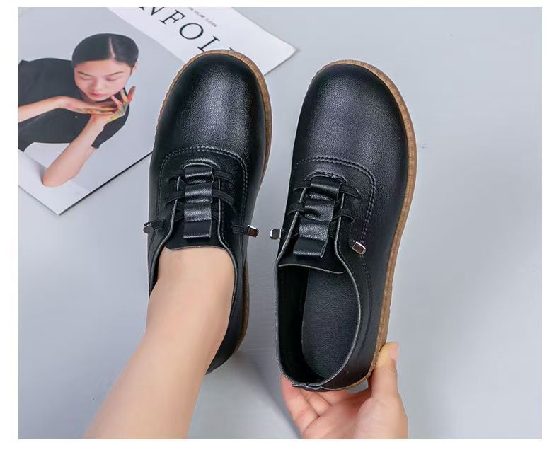 2024 Xiaoxiang 스타일 슬립 온 소프트 하단 새로운 스타일 플랫 슈즈 경량 싱글 레이어 슈즈 캐주얼 슈즈 어머니 게으름을위한 라운드 발가락 신발