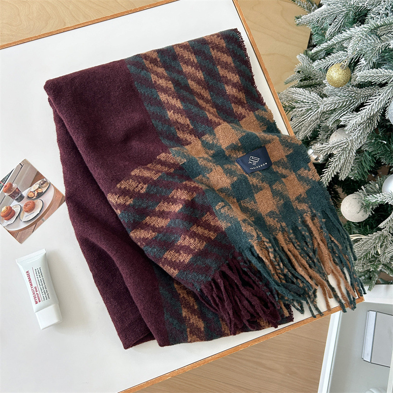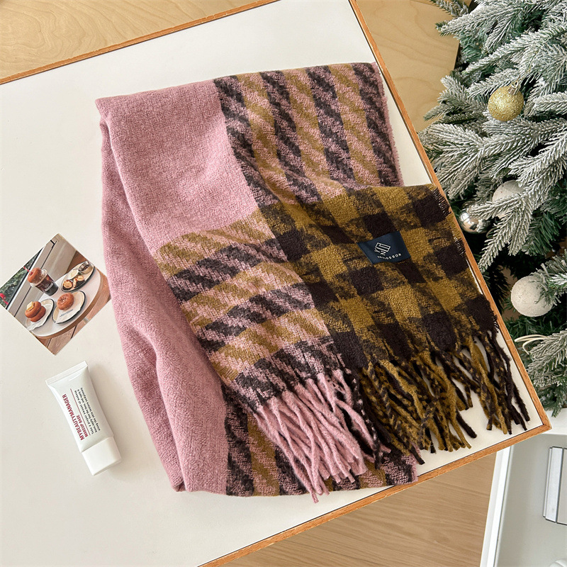 새로운 도착 줄무늬 Houndstooth Faux 캐시미어 격자 무늬 스카프 여자 가을 및 겨울 일본-한국 색상 대비 고급 올 매치 따뜻한 스카프