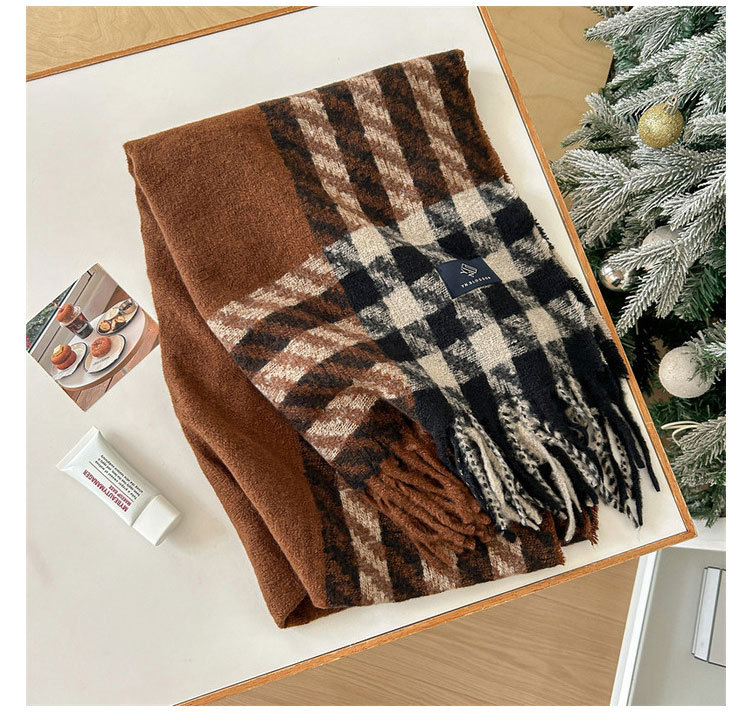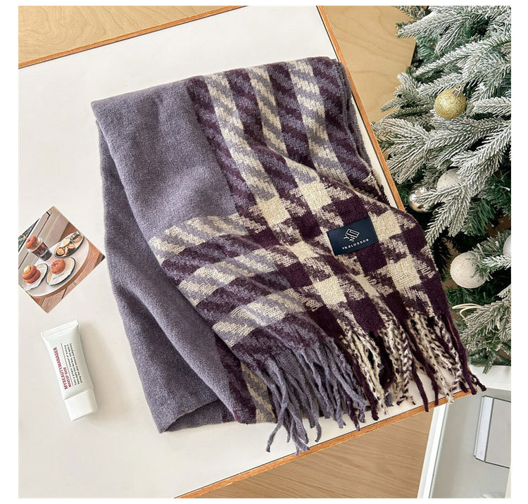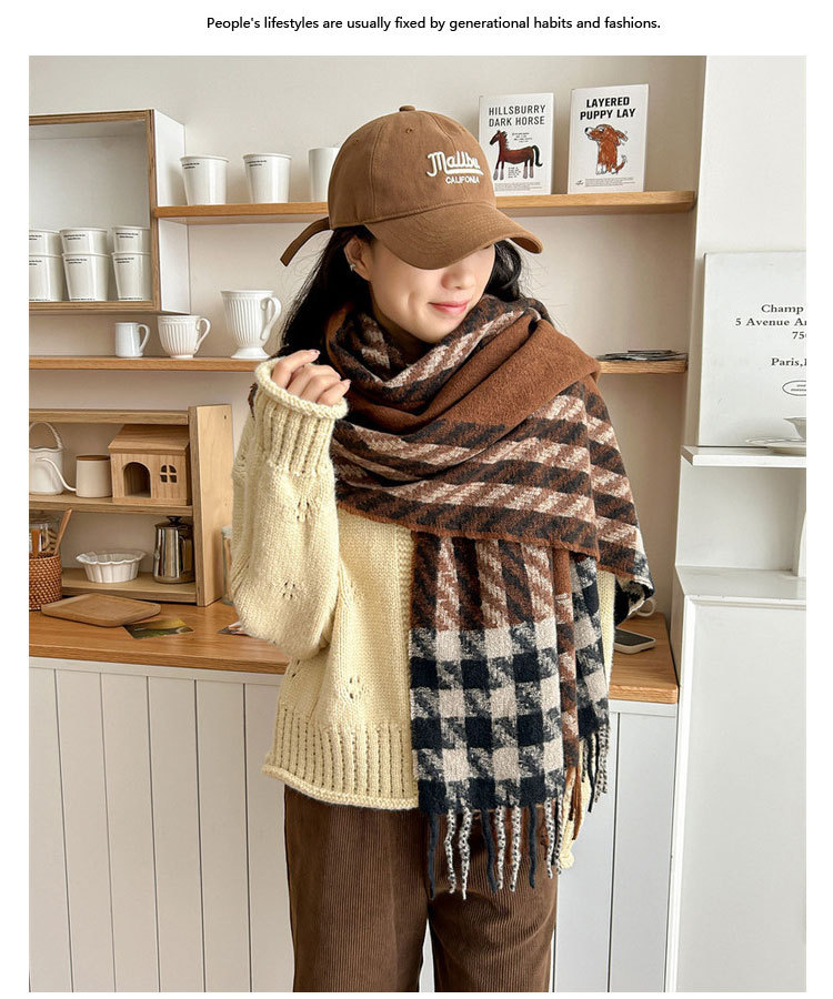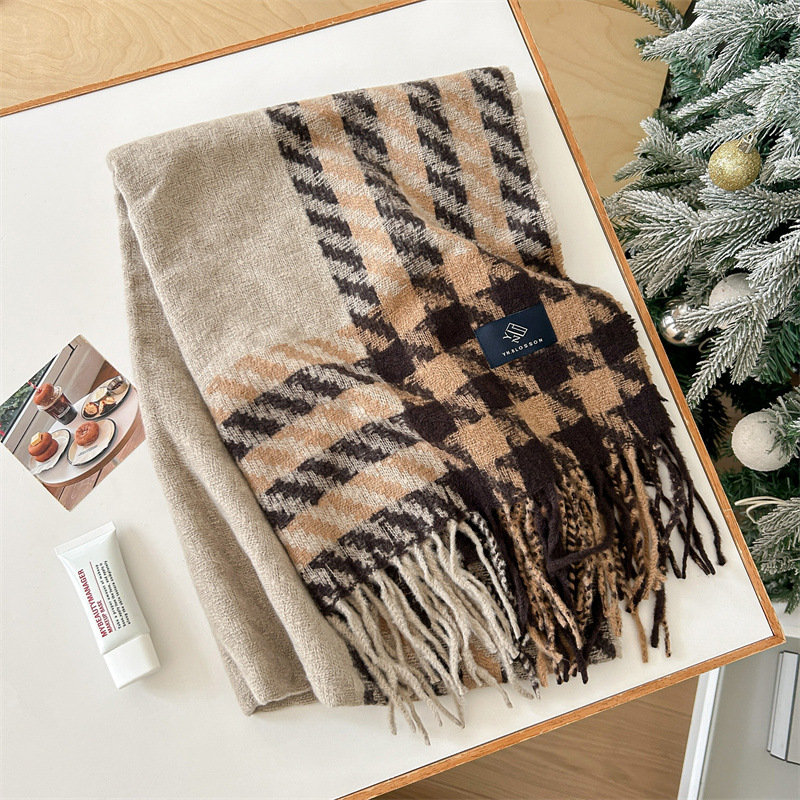 새로운 도착 줄무늬 Houndstooth Faux 캐시미어 격자 무늬 스카프 여자 가을 및 겨울 일본-한국 색상 대비 고급 올 매치 따뜻한 스카프스토어 가기