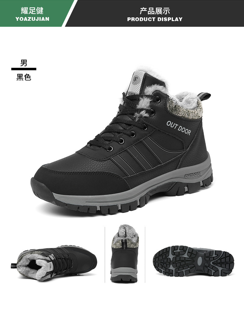 기모 따뜻한 면화 겨울 중년 및 노인 아빠 신발 미끄럼 방지 착용 방지 등산 신발 두꺼운 남성용 신발 냉방성 스노우 부츠