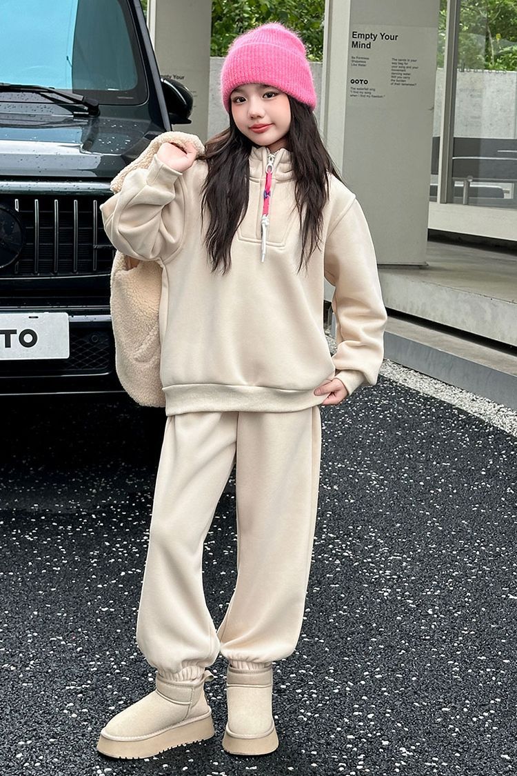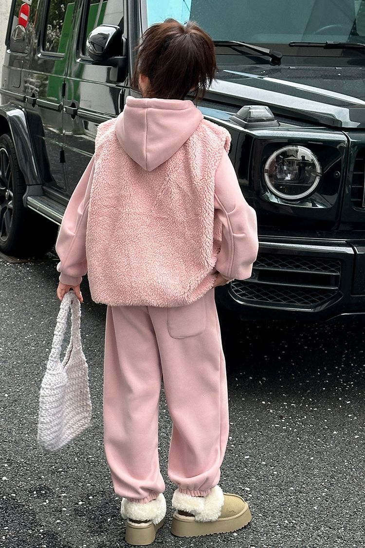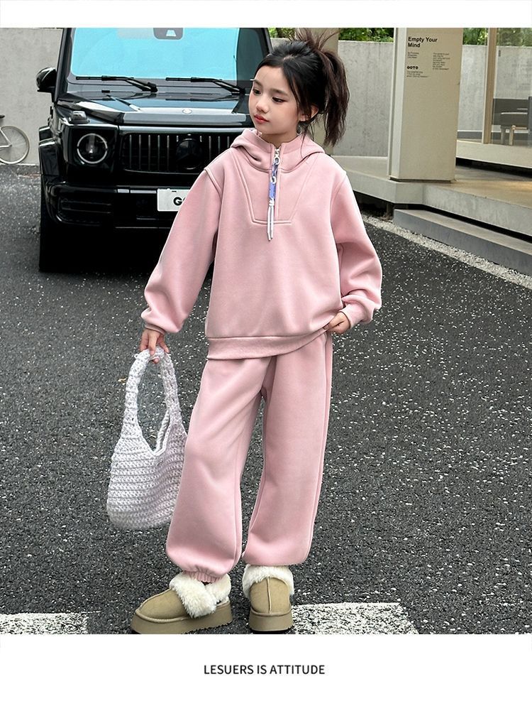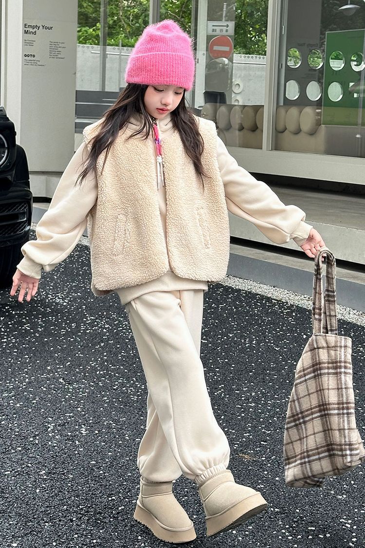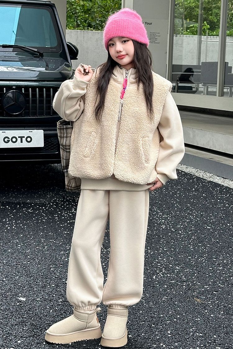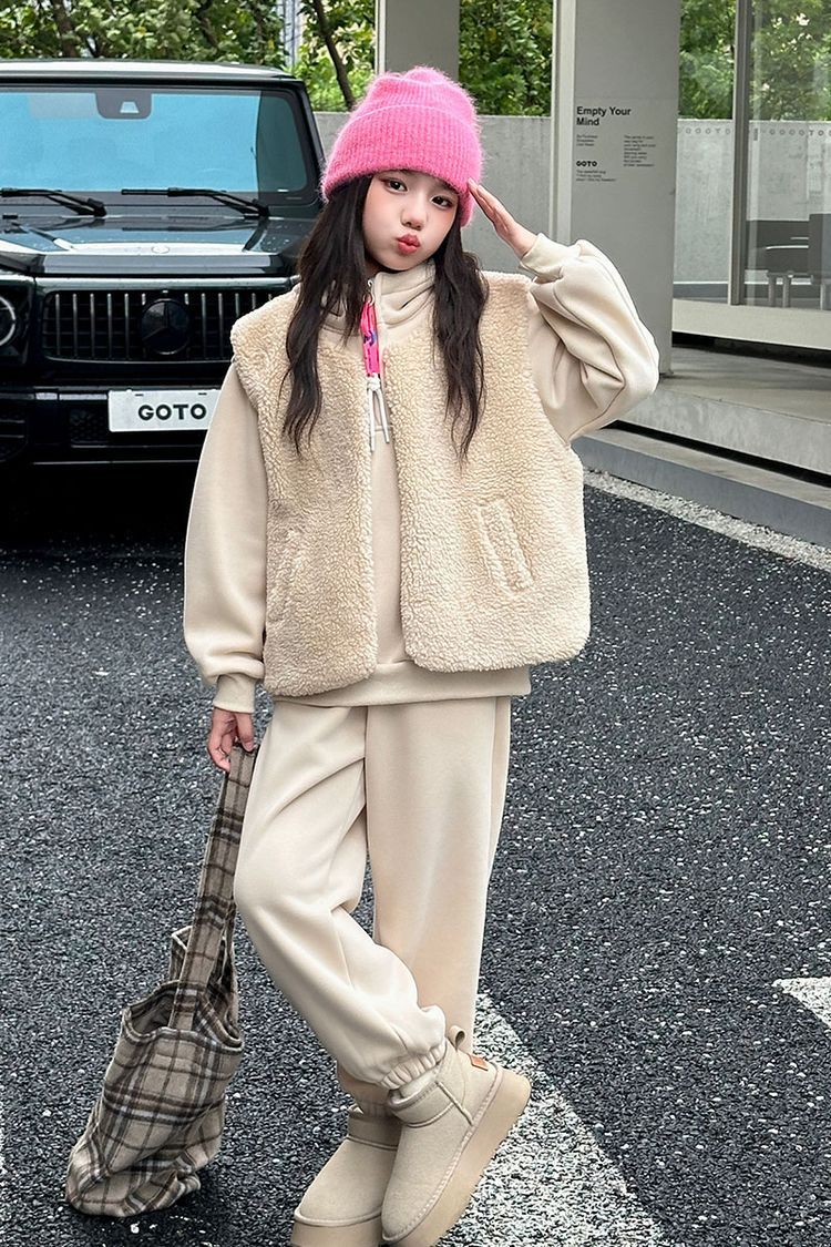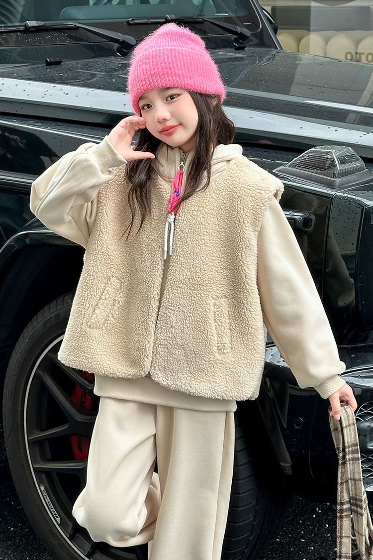 걸스 벨벳 세트 가을과 겨울 큰 어린이 후드 스웨트 운동복 두꺼운 따뜻한 양고기 울 조끼 3 피스 세트
