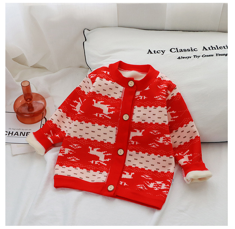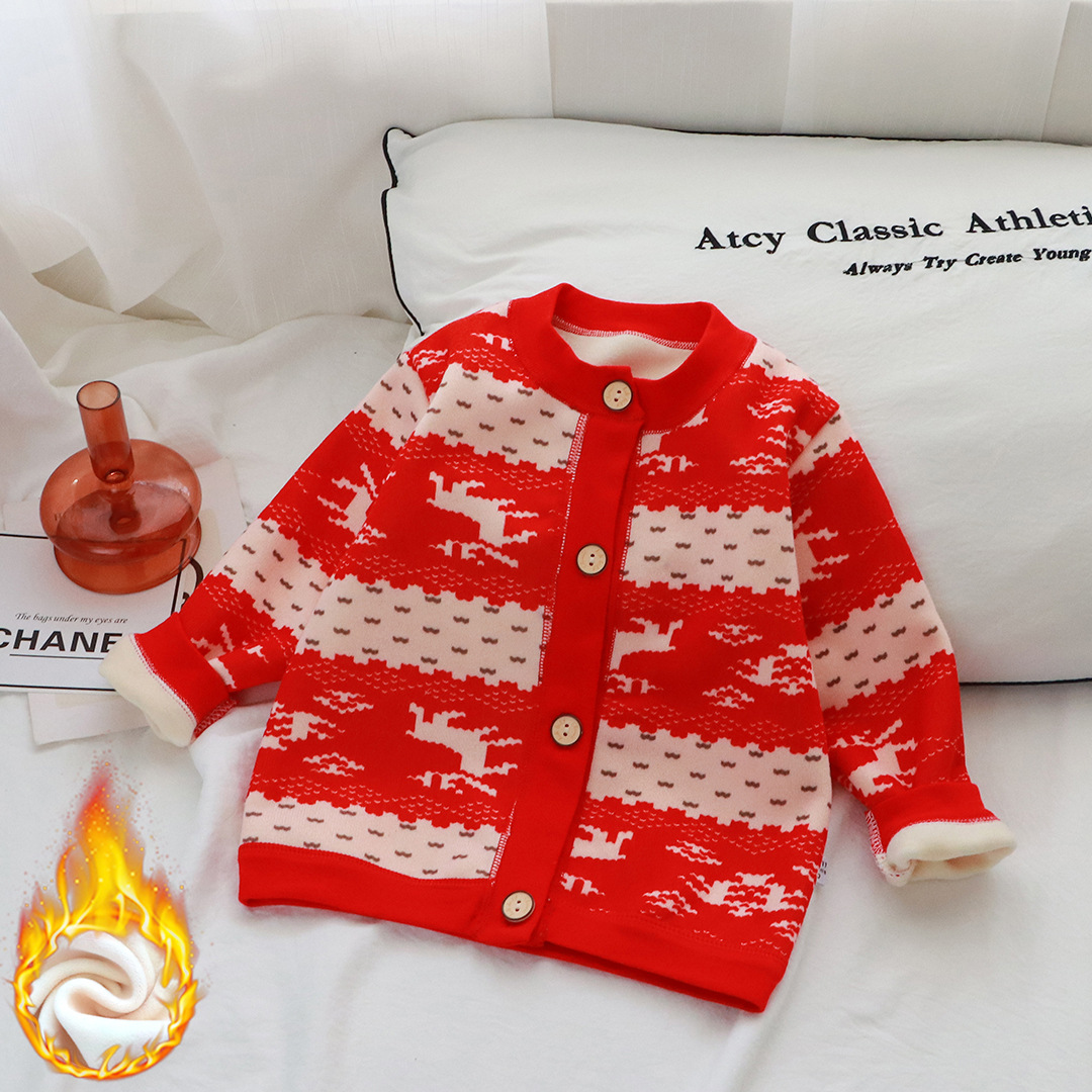 2024 년 가을과 겨울 새로운 어린이 올매치 니트 코트 소년 소녀 아기 따뜻한 카디건 두꺼운 외부 스웨터