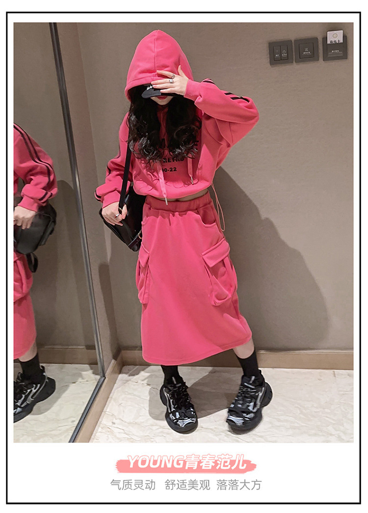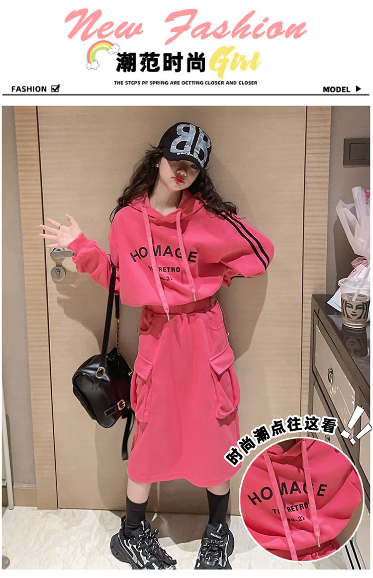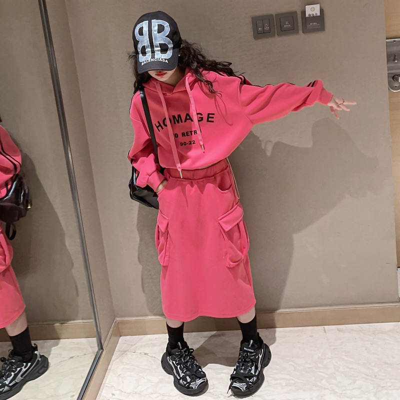한국 스타일 서양식 봄 원피스 세트 느슨한 어린이 세트 인터넷 인기 소녀 봄과 가을 새로운 2024 스커트 두 조각
