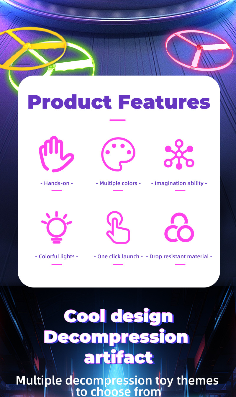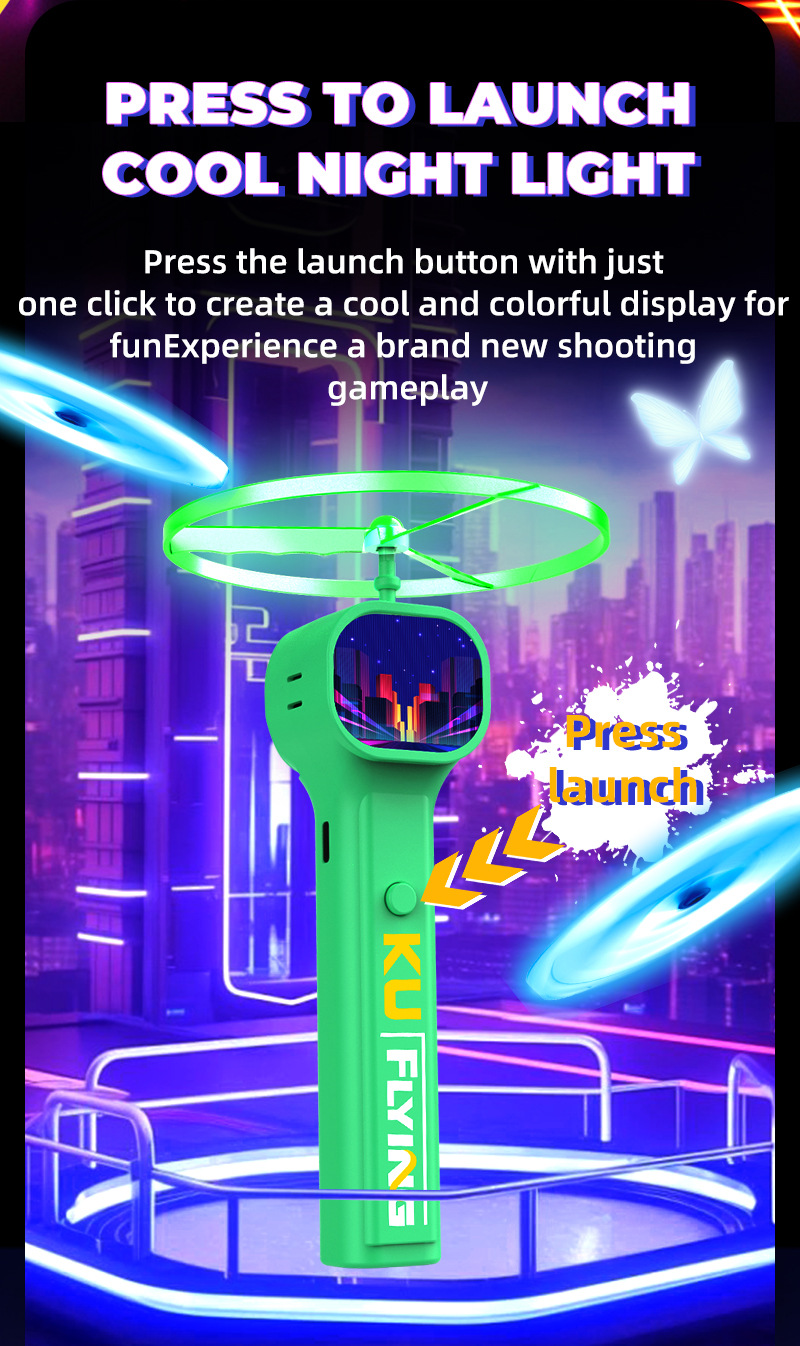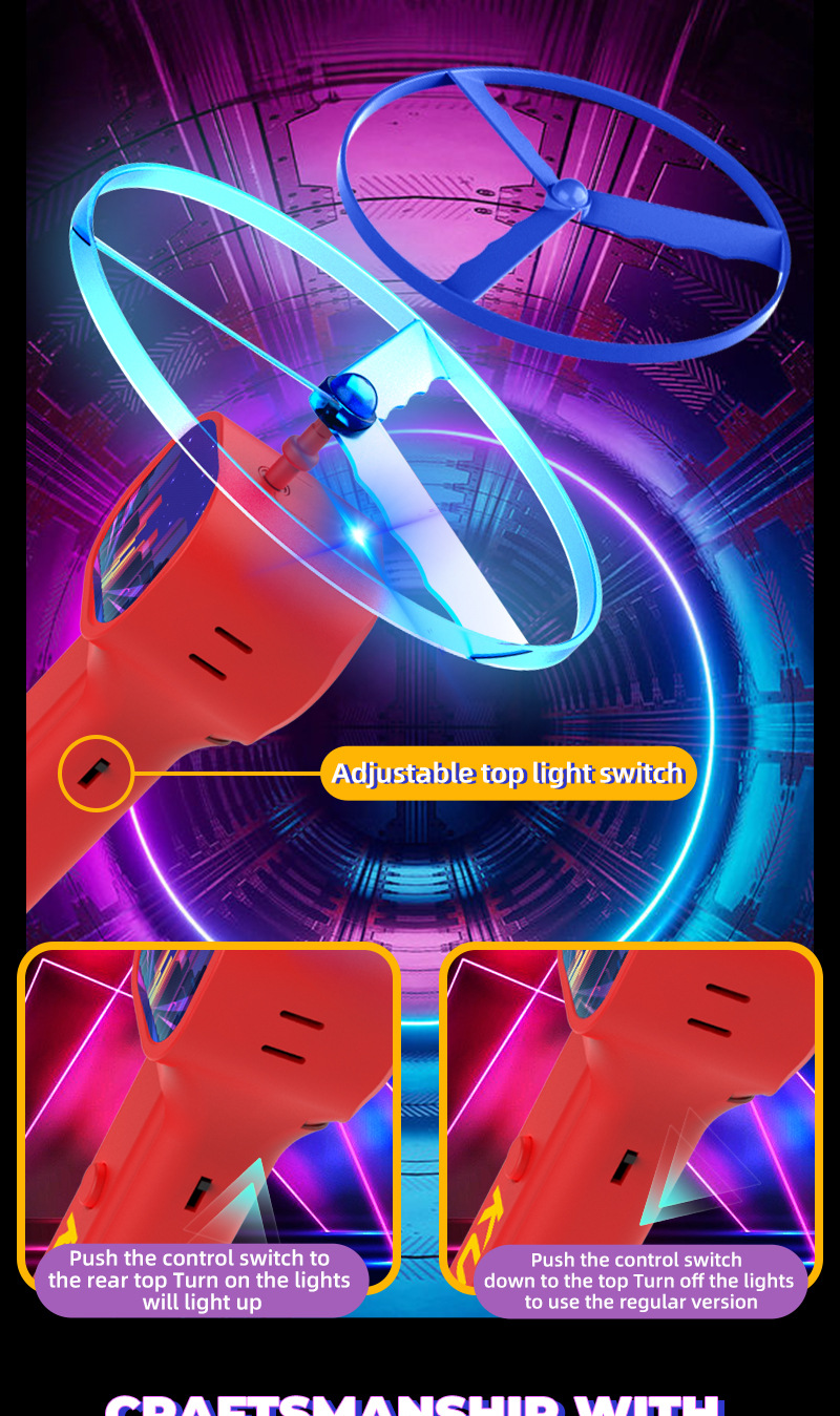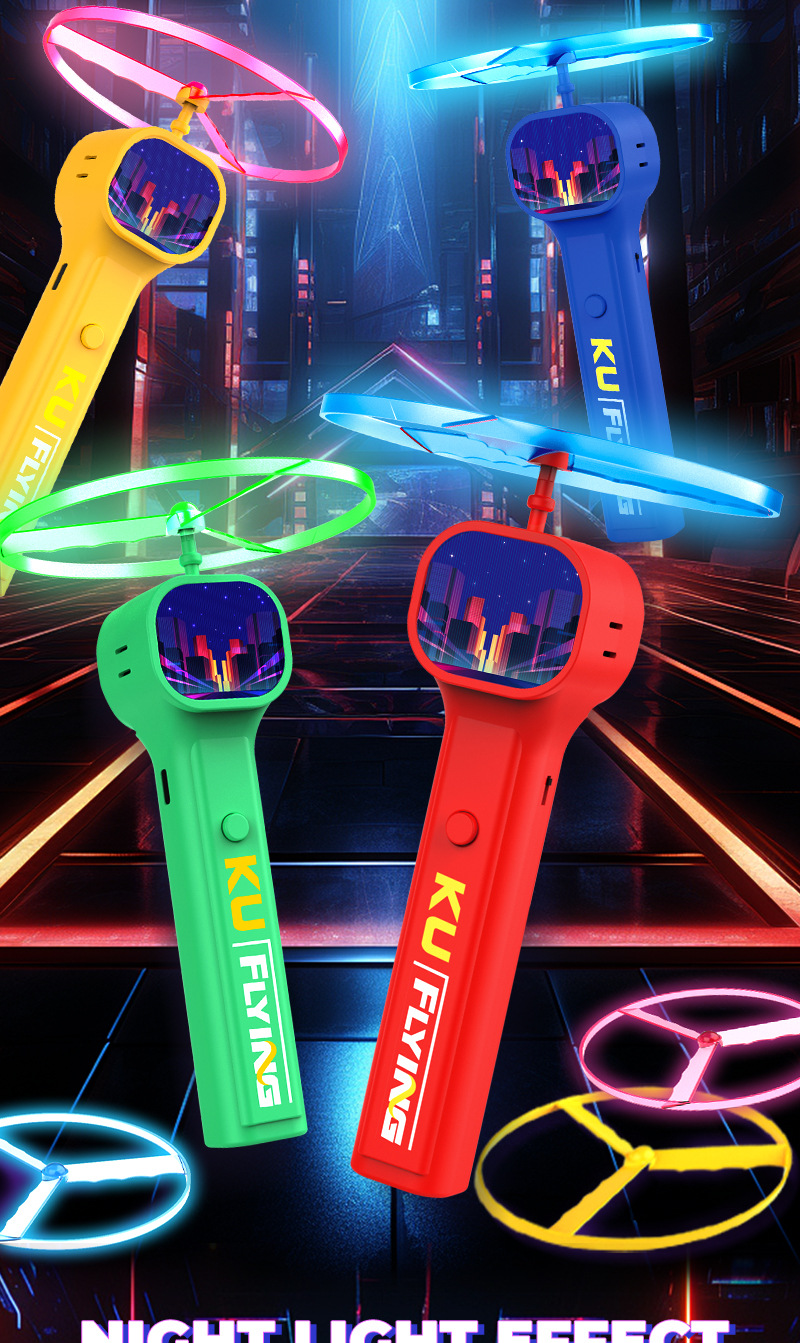국경 간 빛나는 비행 접시 창조적 인 대나무 잠자리 새로운 UFO 프리즈 비 LED 빛나는 분위기 소품 어린이 전기 장난감