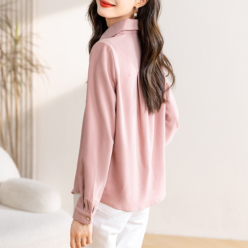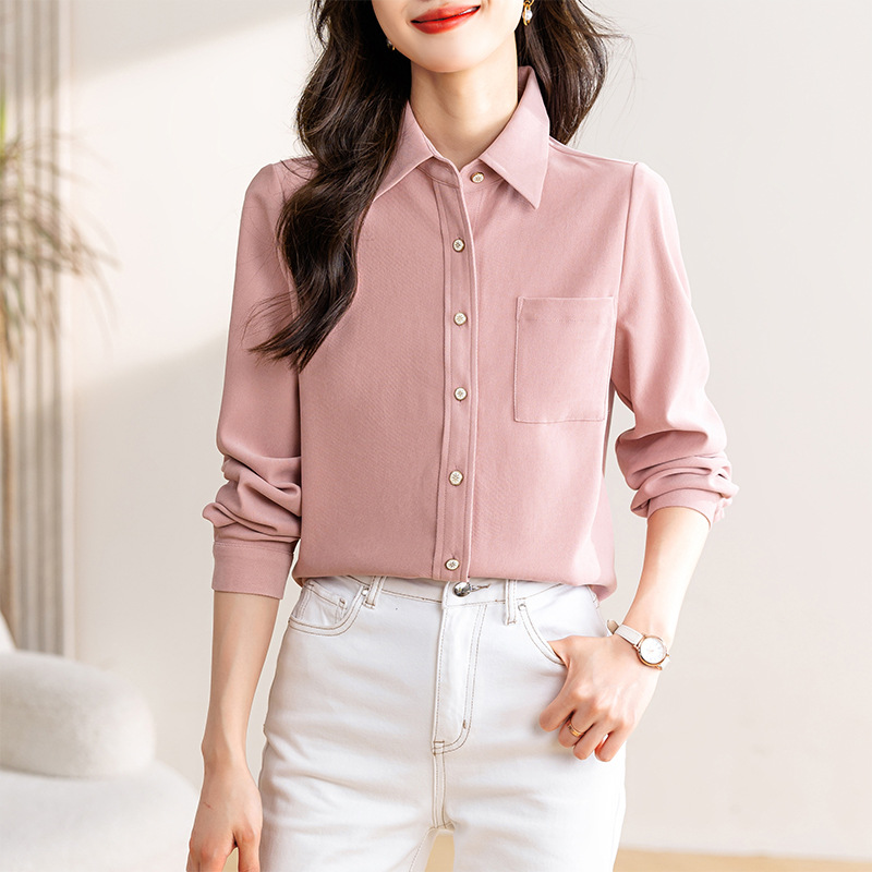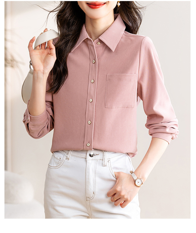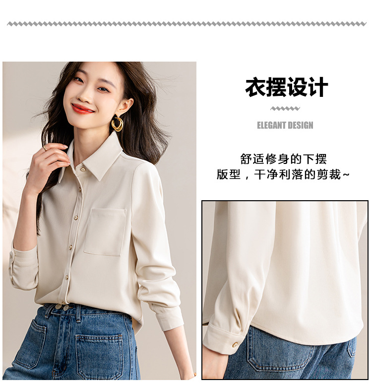 가을과 겨울에 진짜 촬영 2024 두꺼운 샌딩 고급 벨벳 단색 느슨한 슬림 긴 소매 셔츠 여성은 가을과 겨울에 접힐 수 있습니다.