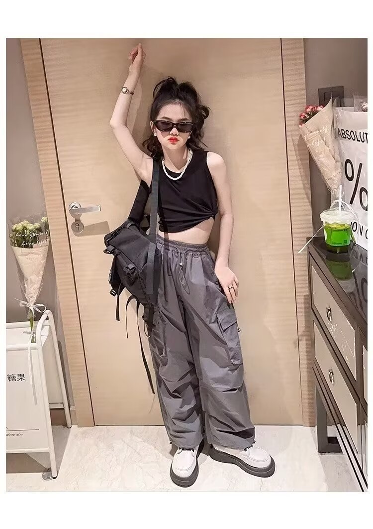 소녀 바지 아동복 2024 기모 어린이 가을과 겨울 바지 유행 시원한 소녀 큰 아이들의 가을 넓은 다리 바지