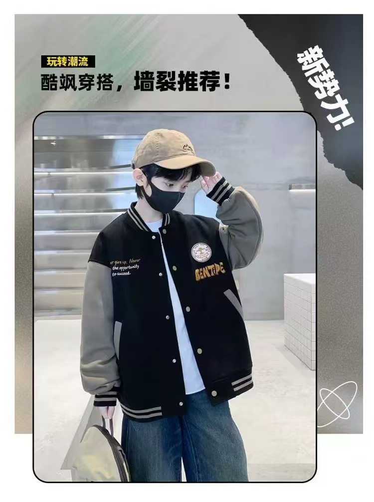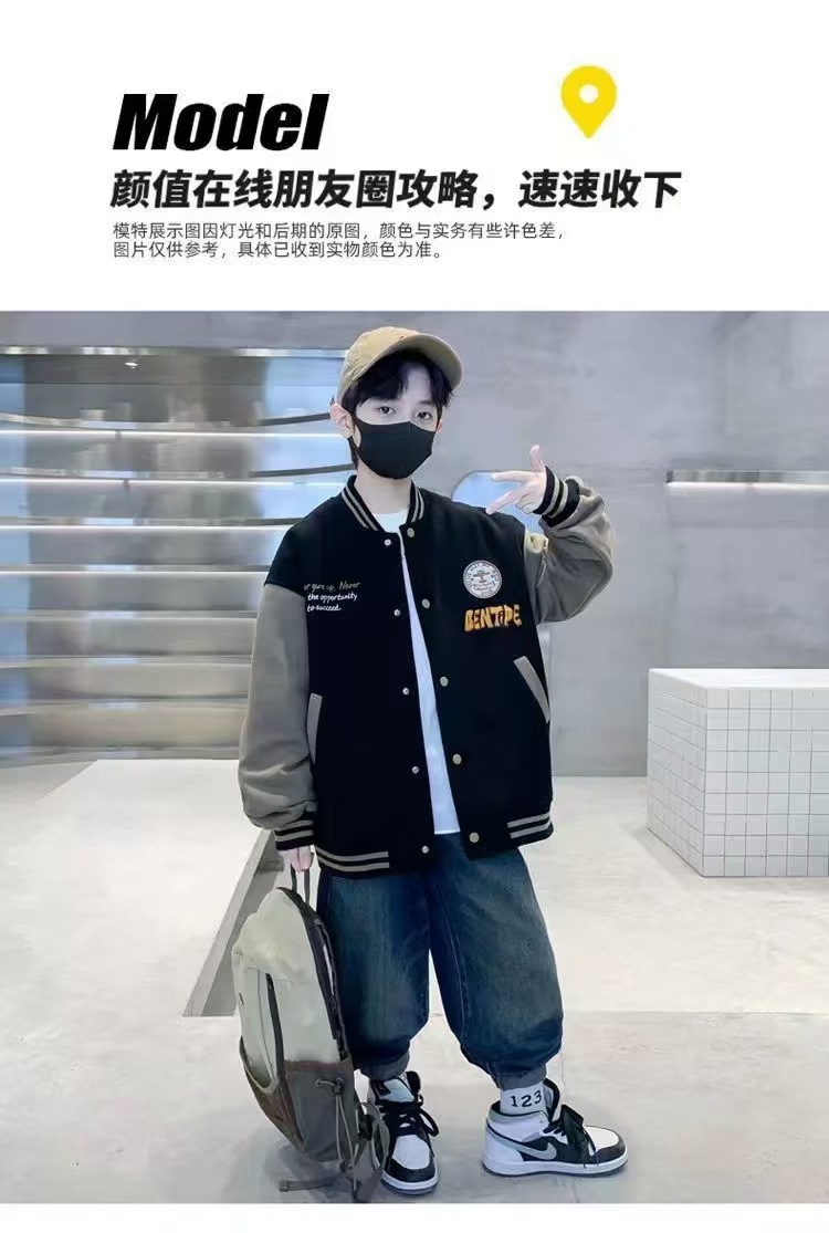 소년 코트 봄과 가을 2024 새로운 중대형 어린이 서양식 가을 재킷 스포츠 탑 봄 옷 어린이 야구 옷스토어 가기