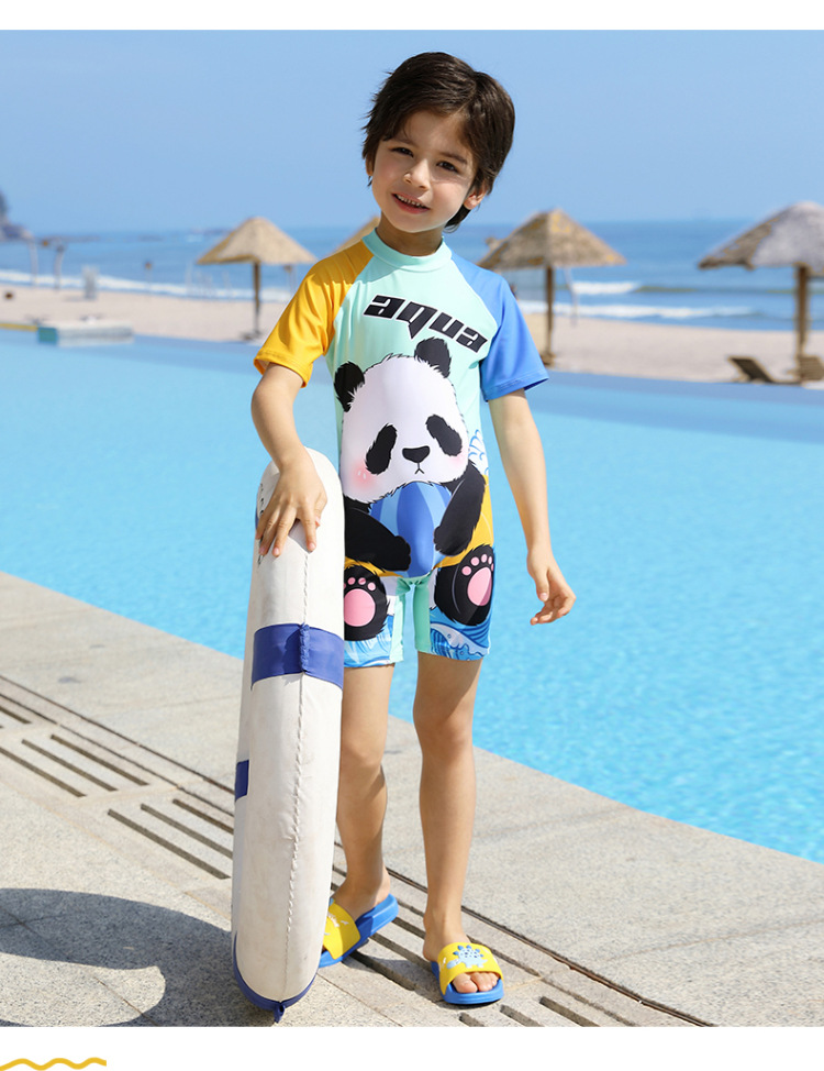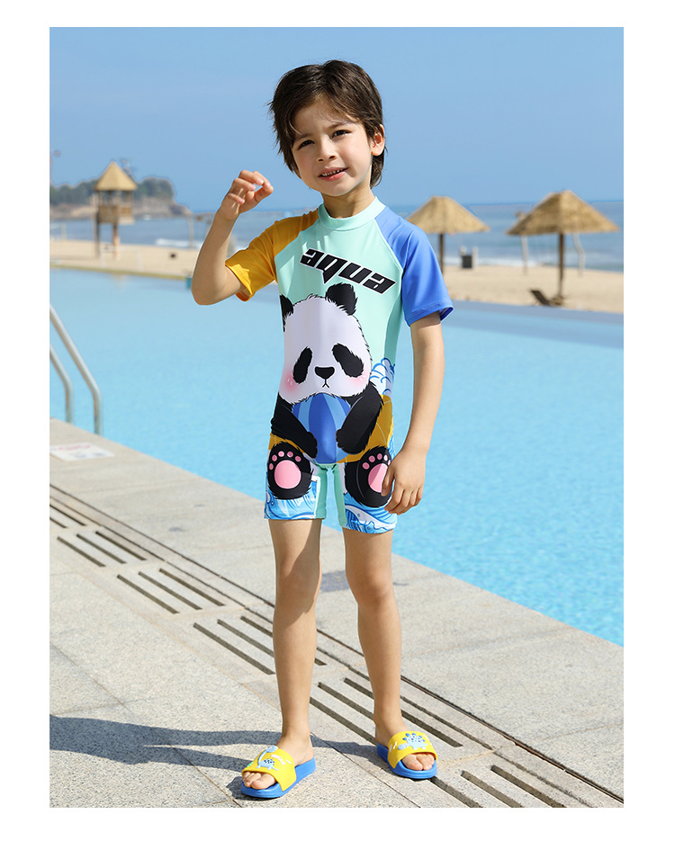 여름 새 어린이 수영복 한국식 만화 팬더 어린이 온천 휴가 패션 컬러 매칭 수영복스토어 가기