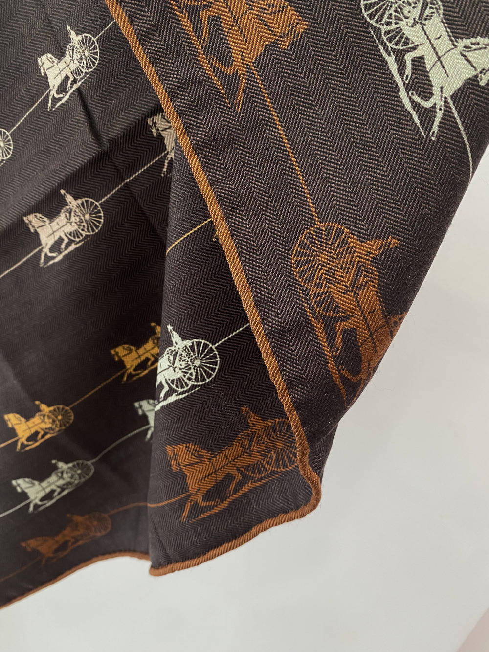 • 다크 브라운 고대 마차 양면 실크 울 70