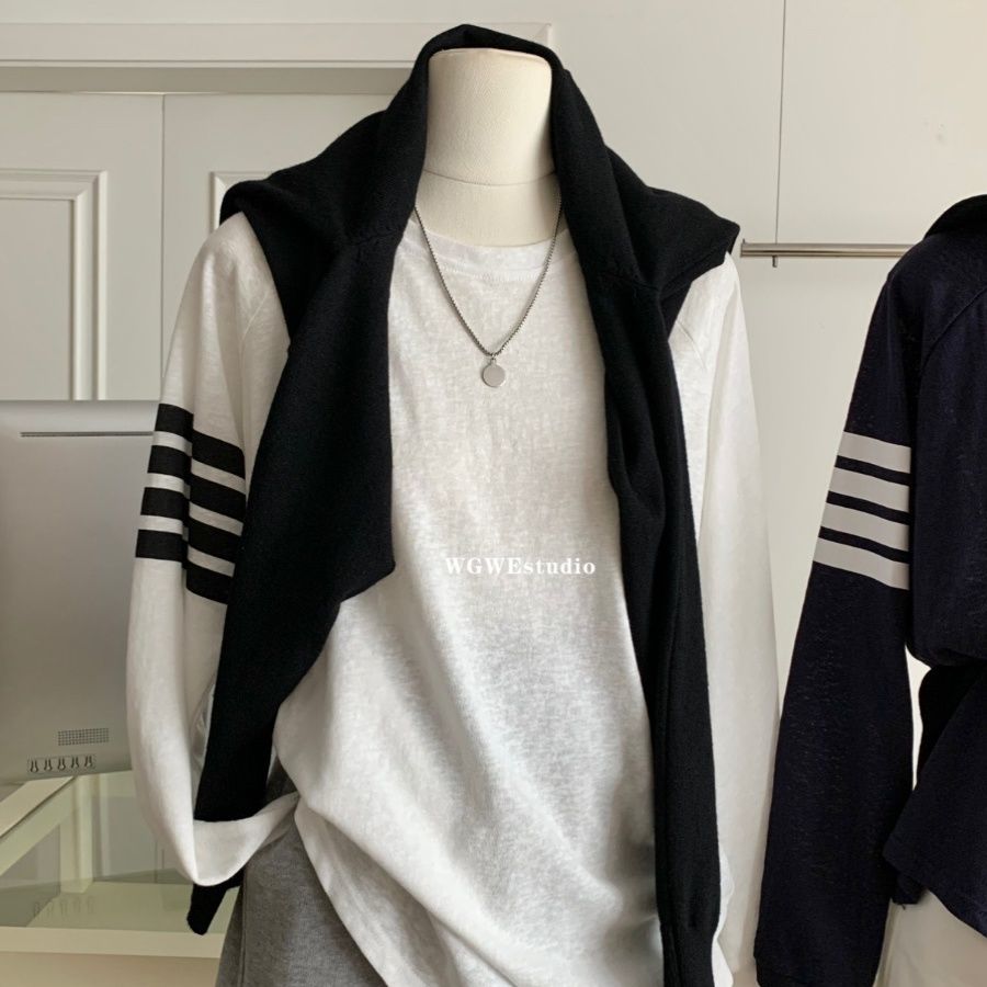 2024 13 라인 이른 가을 새로운 느슨한 기본 셔츠 옷 얇은 선 스크린 줄무늬 스포츠 세련된 긴 소매 티셔츠스토어 가기