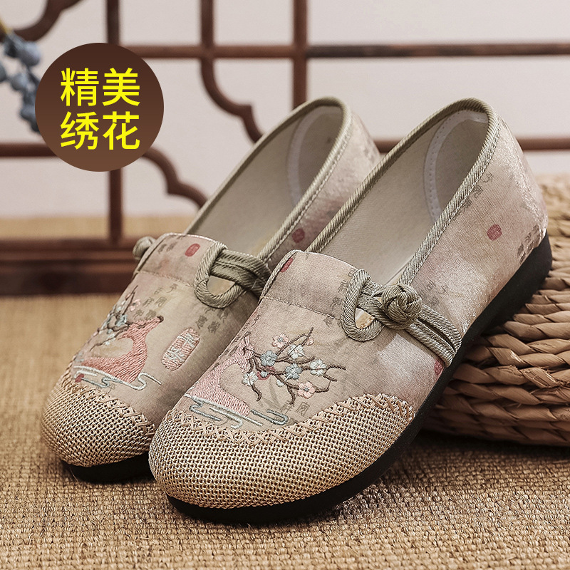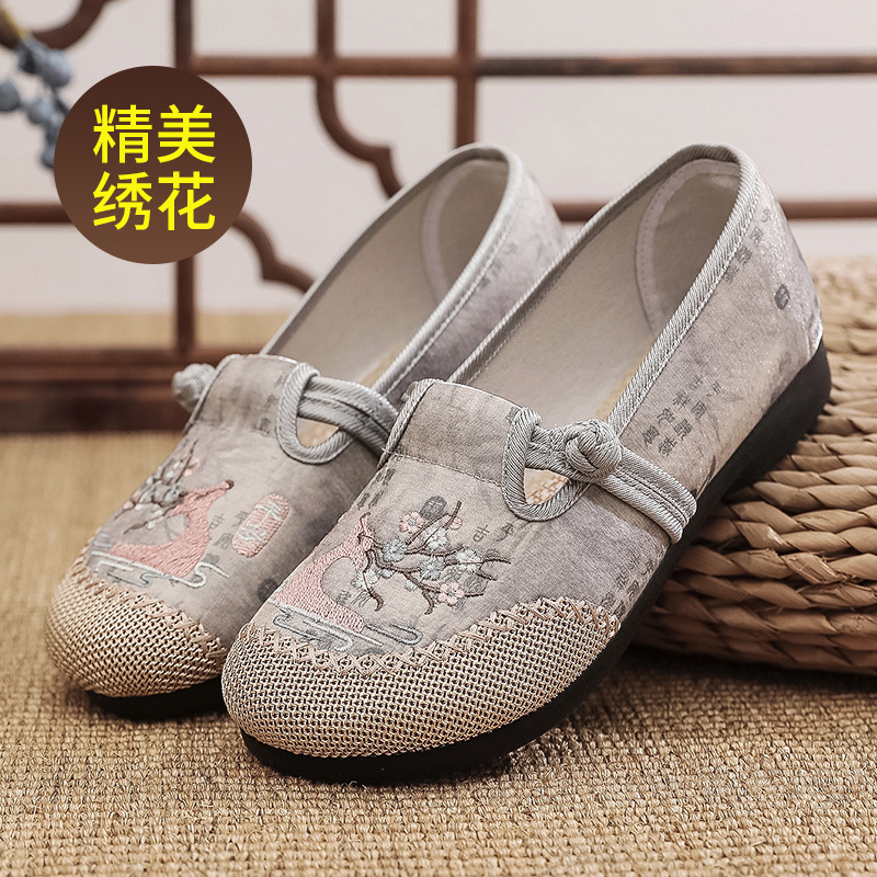 새로운 중국 스타일 오래 된 베이징 천 신발 여성 통기성 민족 한 스타일 자수 신발 소프트 단독 미끄럼 방지 국가 스타일 편안한 어머니 신발