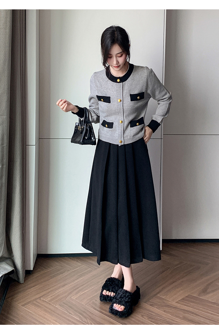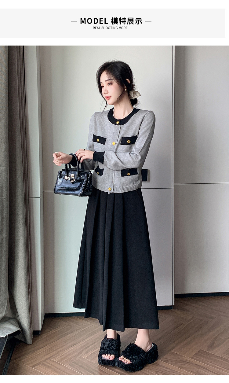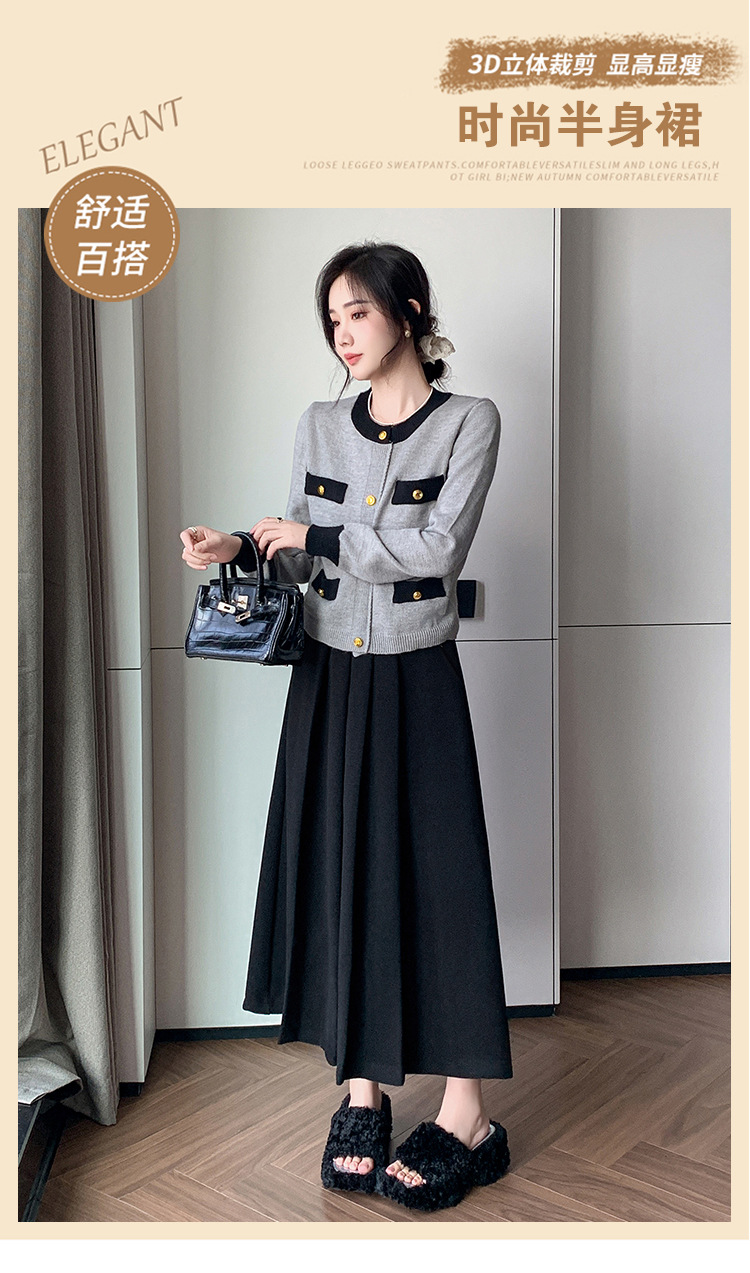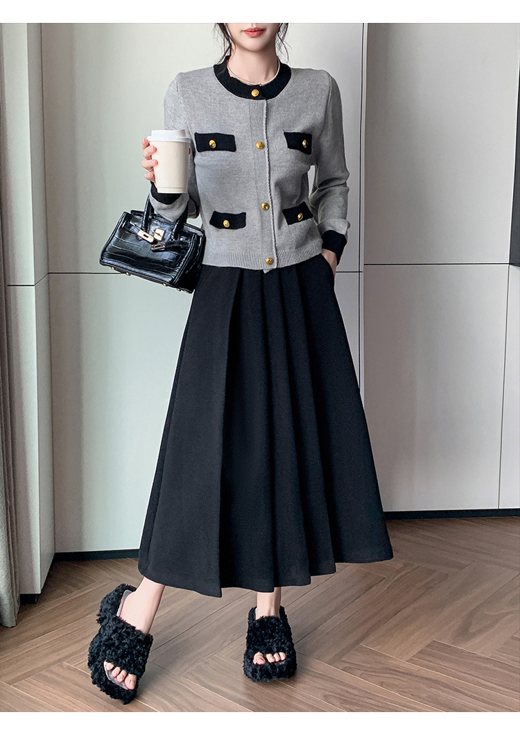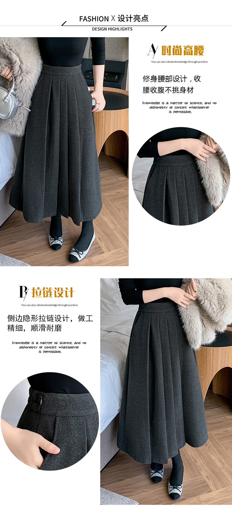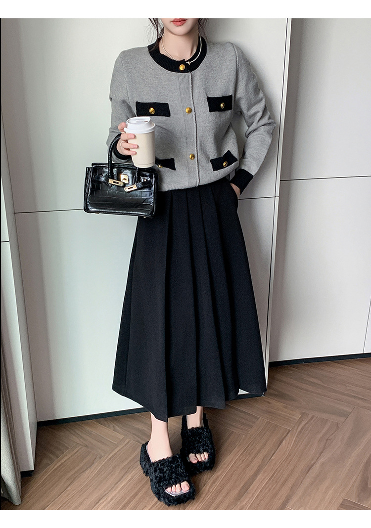 가을과 겨울을위한 재고 모직 주름 치마 2024 높은 허리 A 자형 대형 스윙 주름 엉덩이 슬리밍 울 중간 길이의 절반 길이