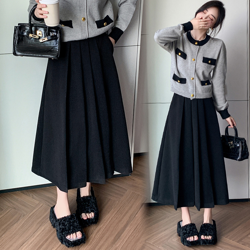 2025 가을 겨울용 플리츠 스커트, 하이웨이스트 A라인, 허리라인을 가려주는 주름 디자인, 슬림한 모직 미디 스커트스토어 가기