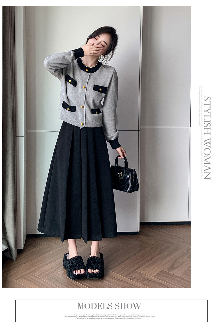 가을과 겨울을위한 재고 모직 주름 치마 2024 높은 허리 A 자형 대형 스윙 주름 엉덩이 슬리밍 울 중간 길이의 절반 길이스토어 가기