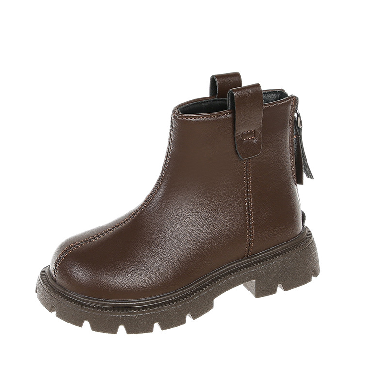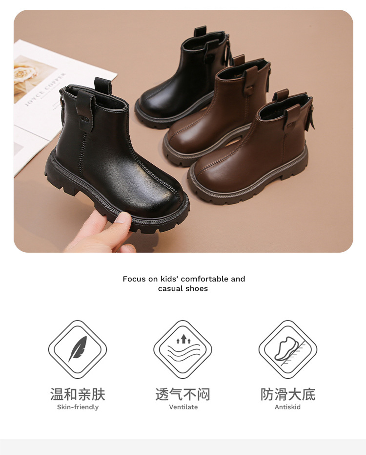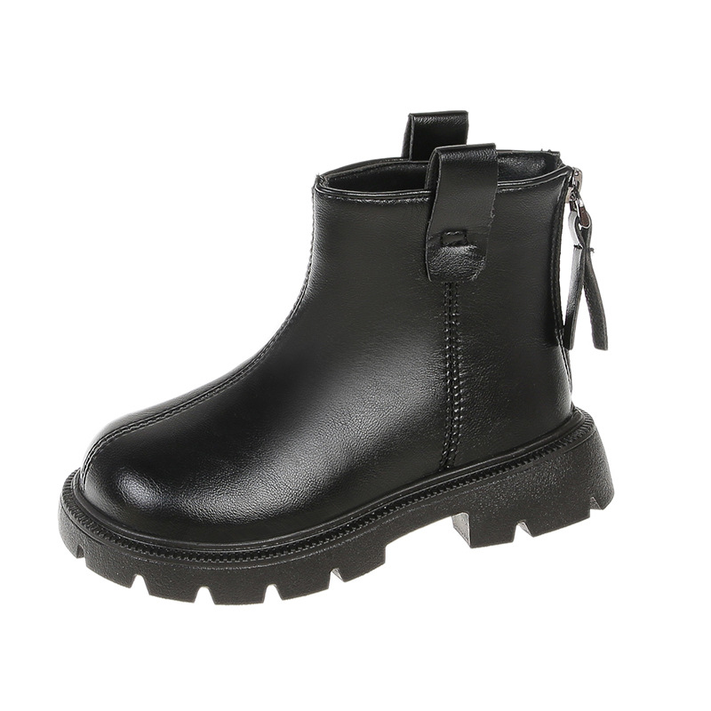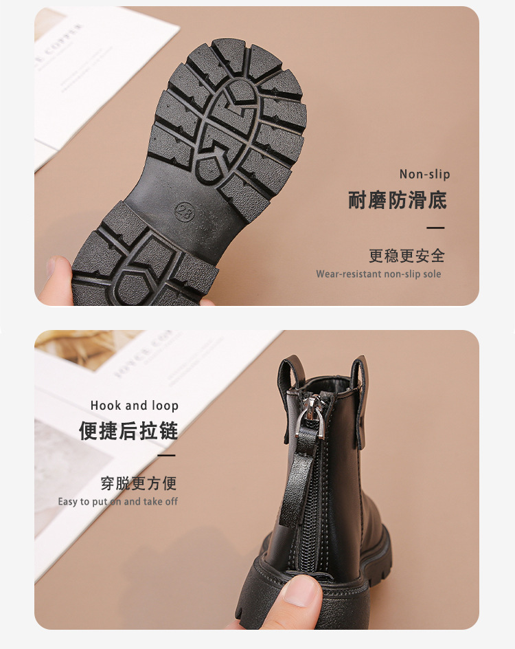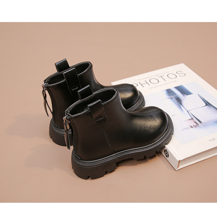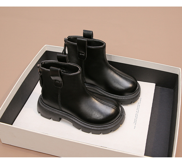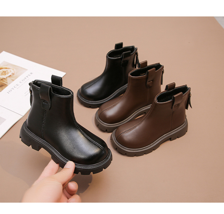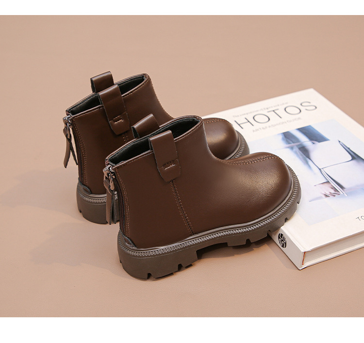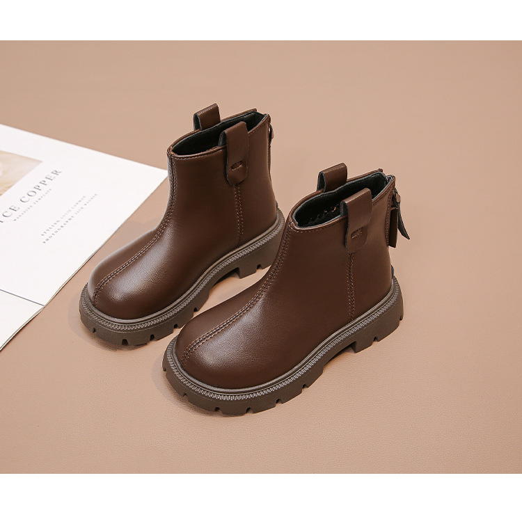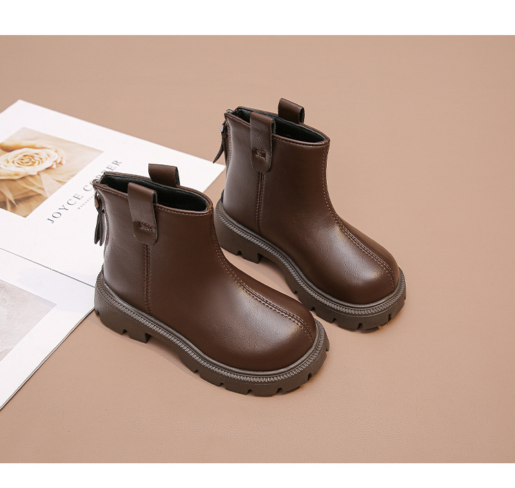 소년 소녀 2024 가을 새 어린이 쇼트 부츠 한국식 패션 단순 올매치 걸스 가죽 부츠 라운드 발가락 싱글 부츠