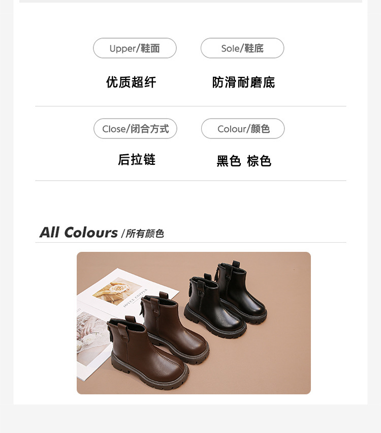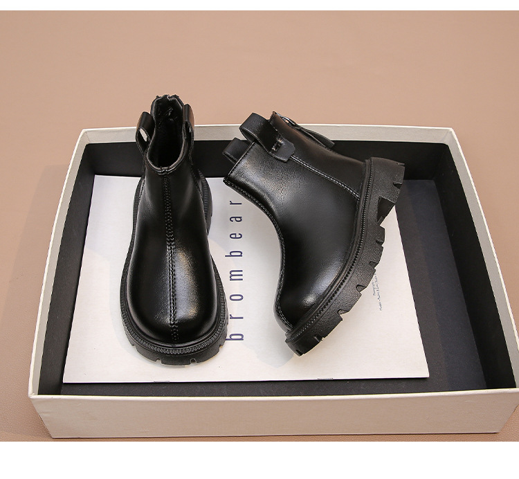 소년 소녀 2024 가을 새 어린이 쇼트 부츠 한국식 패션 단순 올매치 걸스 가죽 부츠 라운드 발가락 싱글 부츠스토어 가기