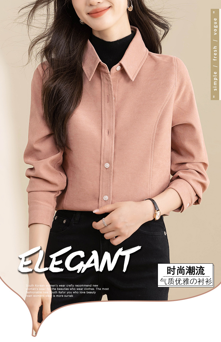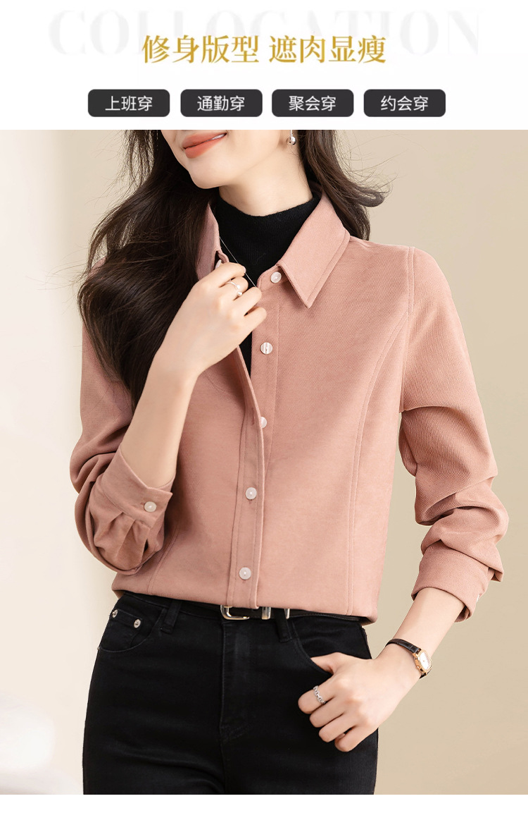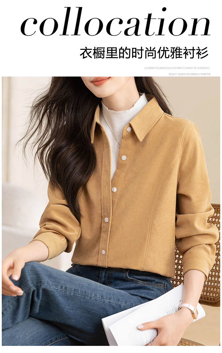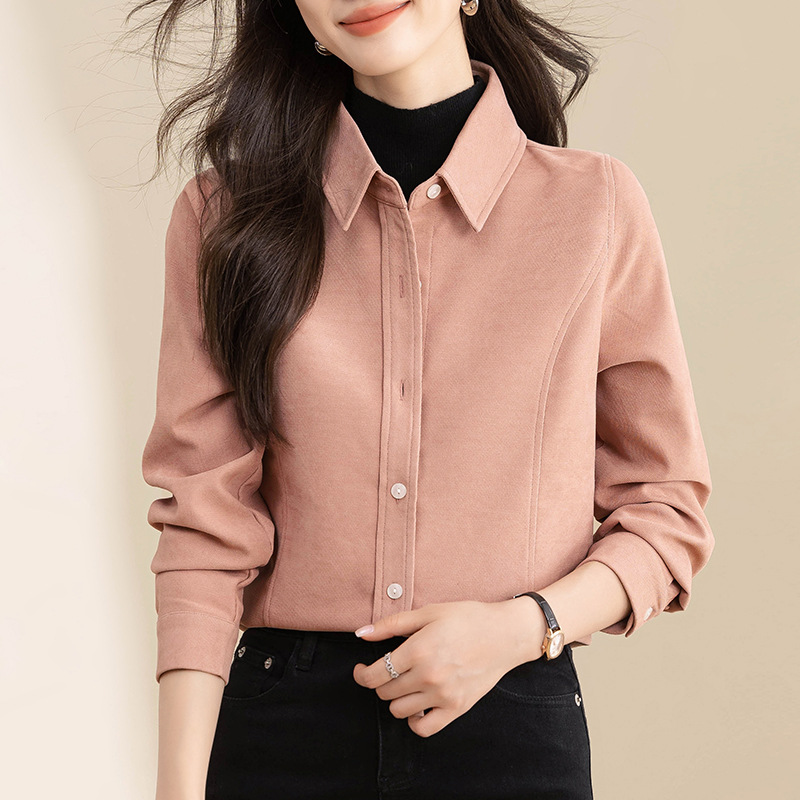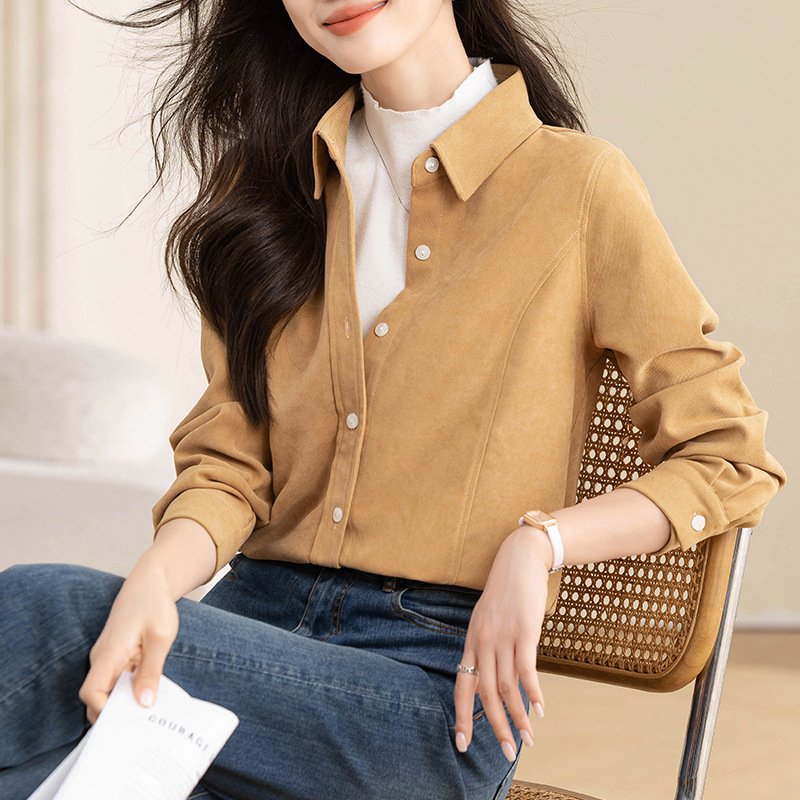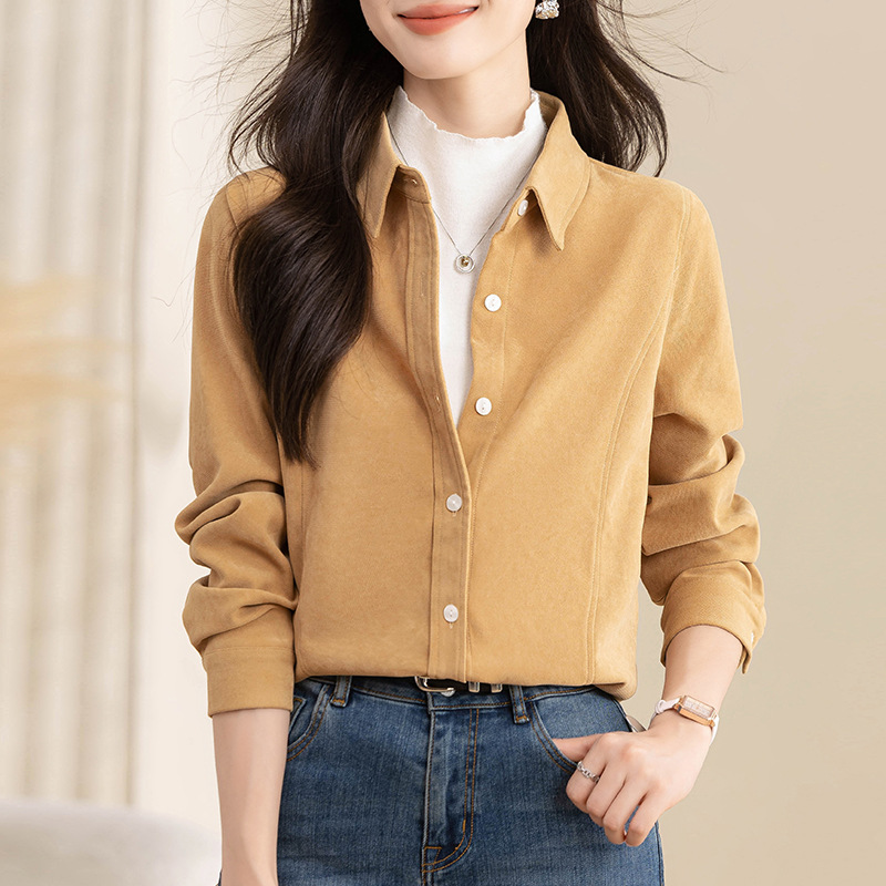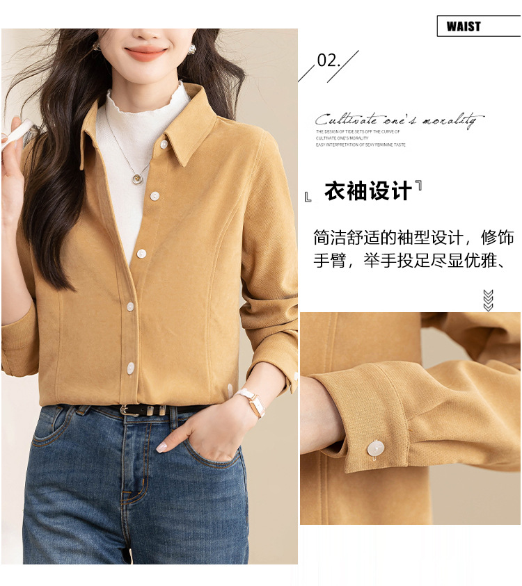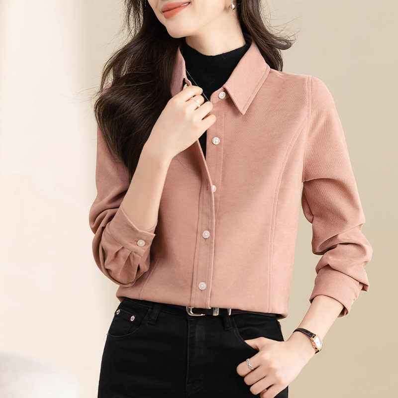 진짜 샷 2024 가을과 겨울 새로운 패션 두꺼운 샌딩 고급 벨벳 단색 느슨한 슬림 긴 소매 셔츠 여성 접힐 수 있습니다