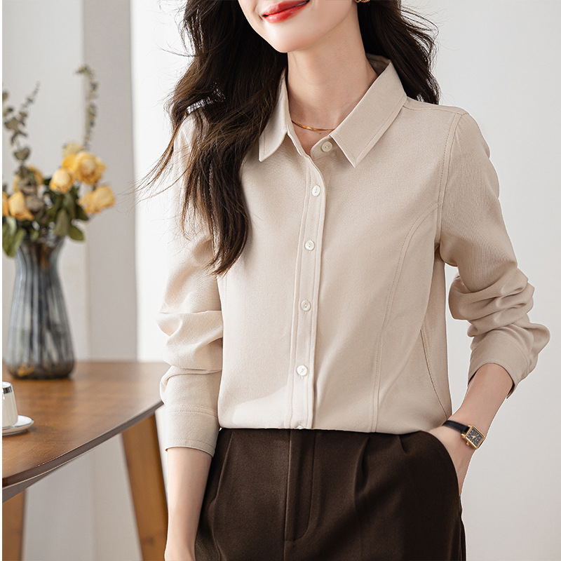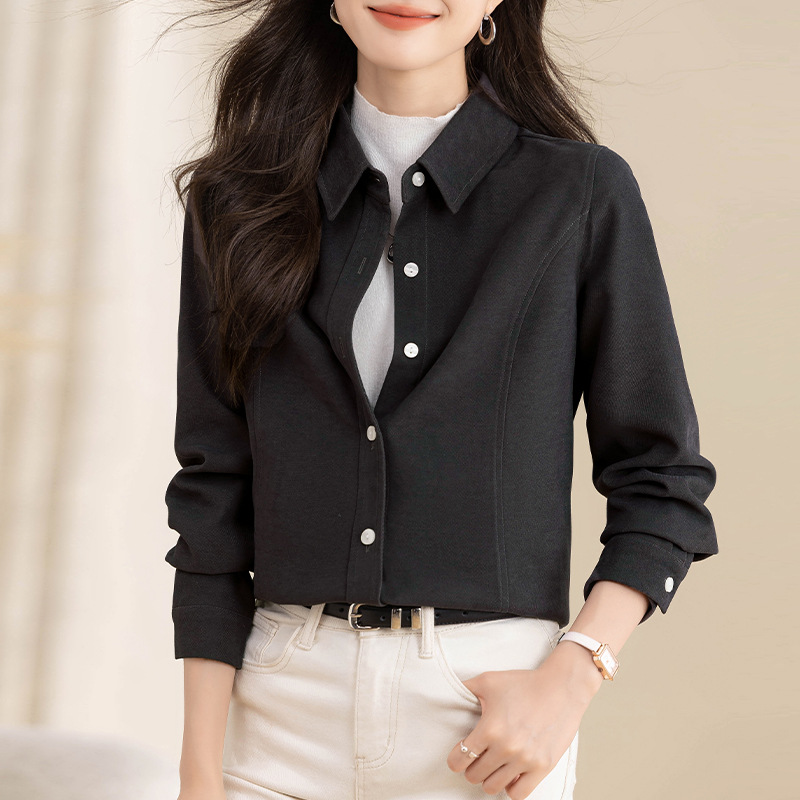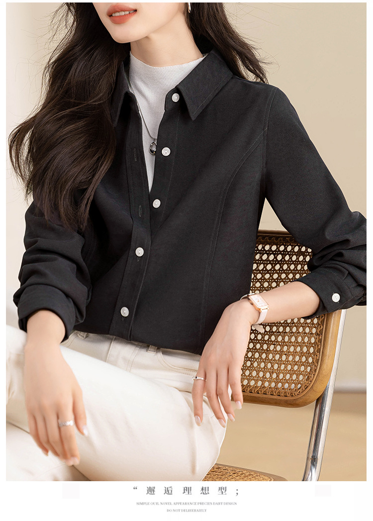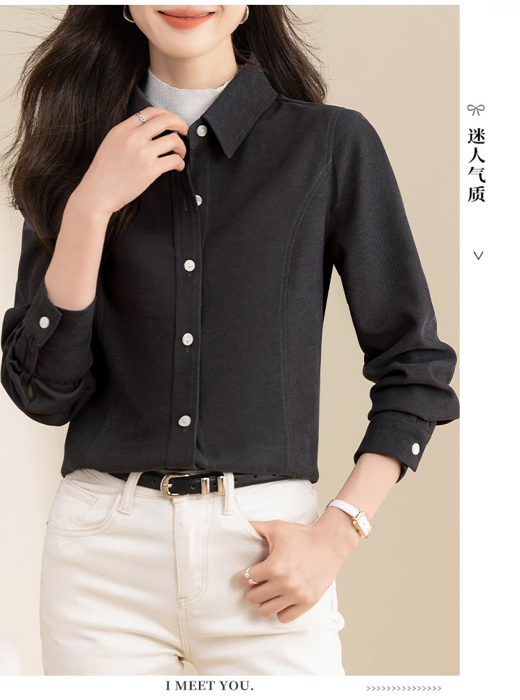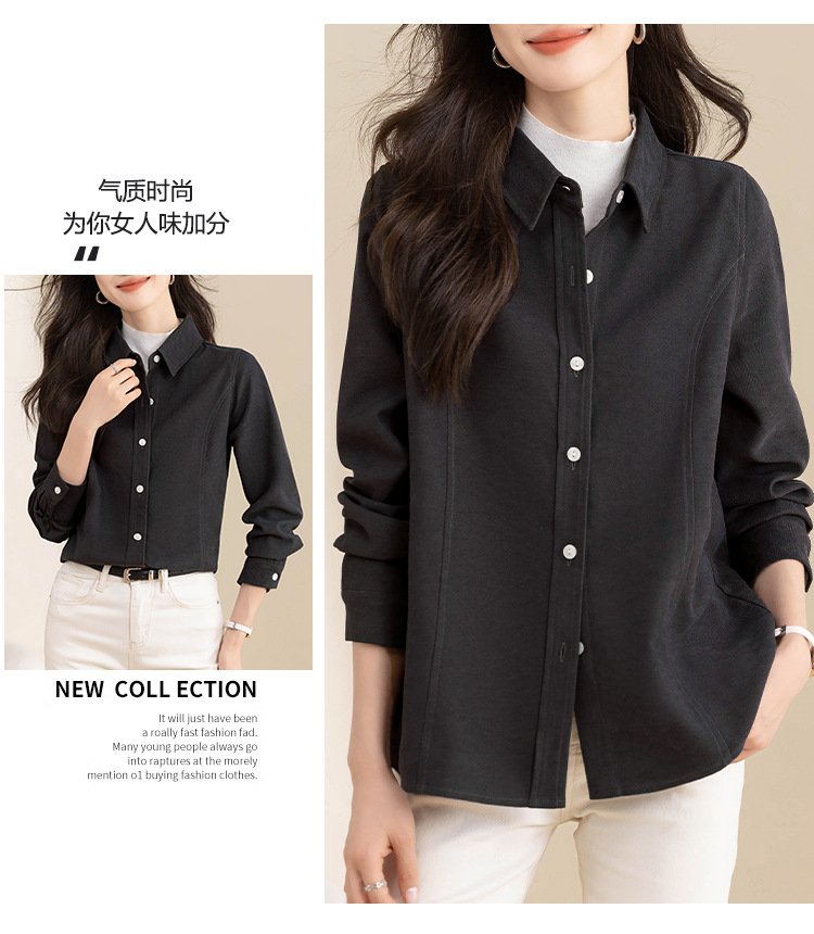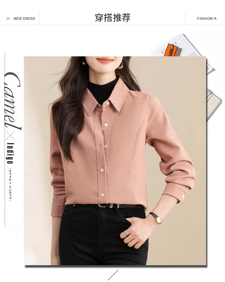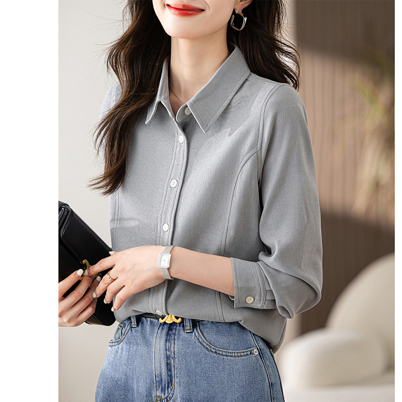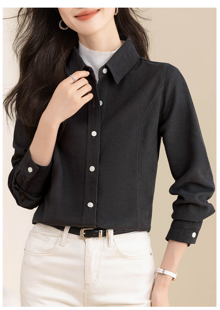 진짜 샷 2024 가을과 겨울 새로운 패션 두꺼운 샌딩 고급 벨벳 단색 느슨한 슬림 긴 소매 셔츠 여성 접힐 수 있습니다