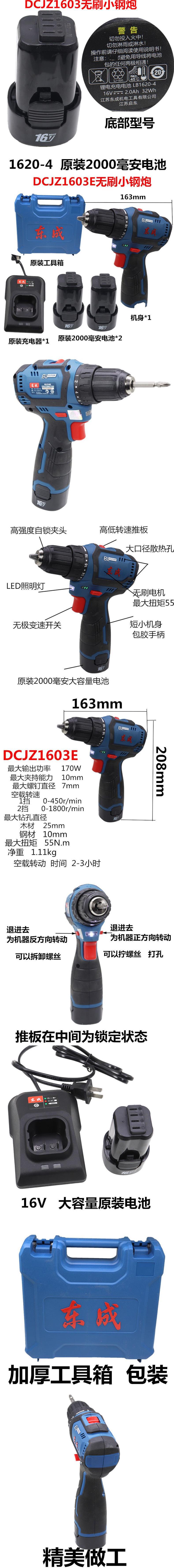 Dongcheng 16V 브러시리스 충전식 드릴 DCJZ1603E 드라이버 전기 스크루 드라이버 소형 강철 총 Dongcheng 권총 드릴