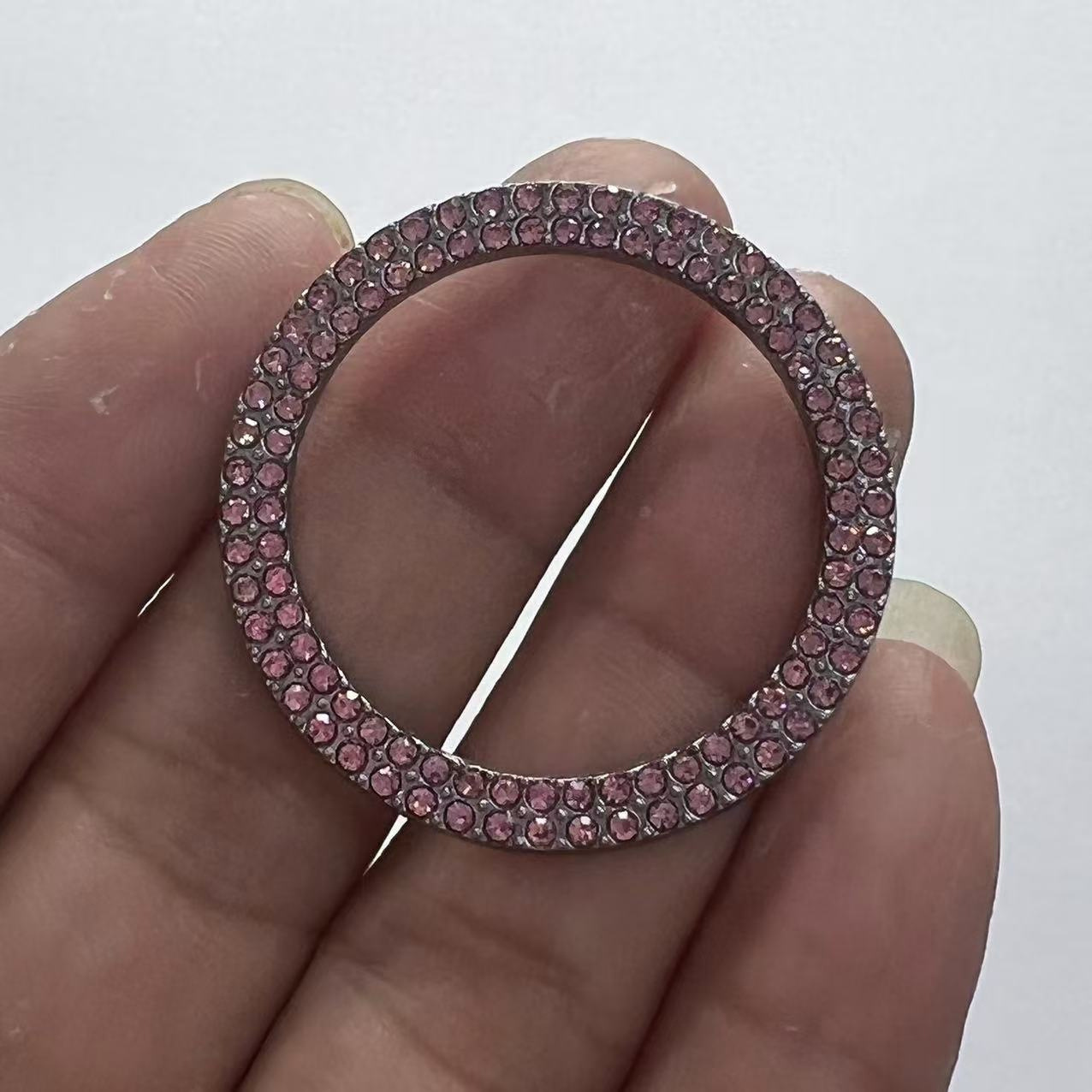 • 다이아몬드가 박힌 원버튼 스타트 링 2열 핑크