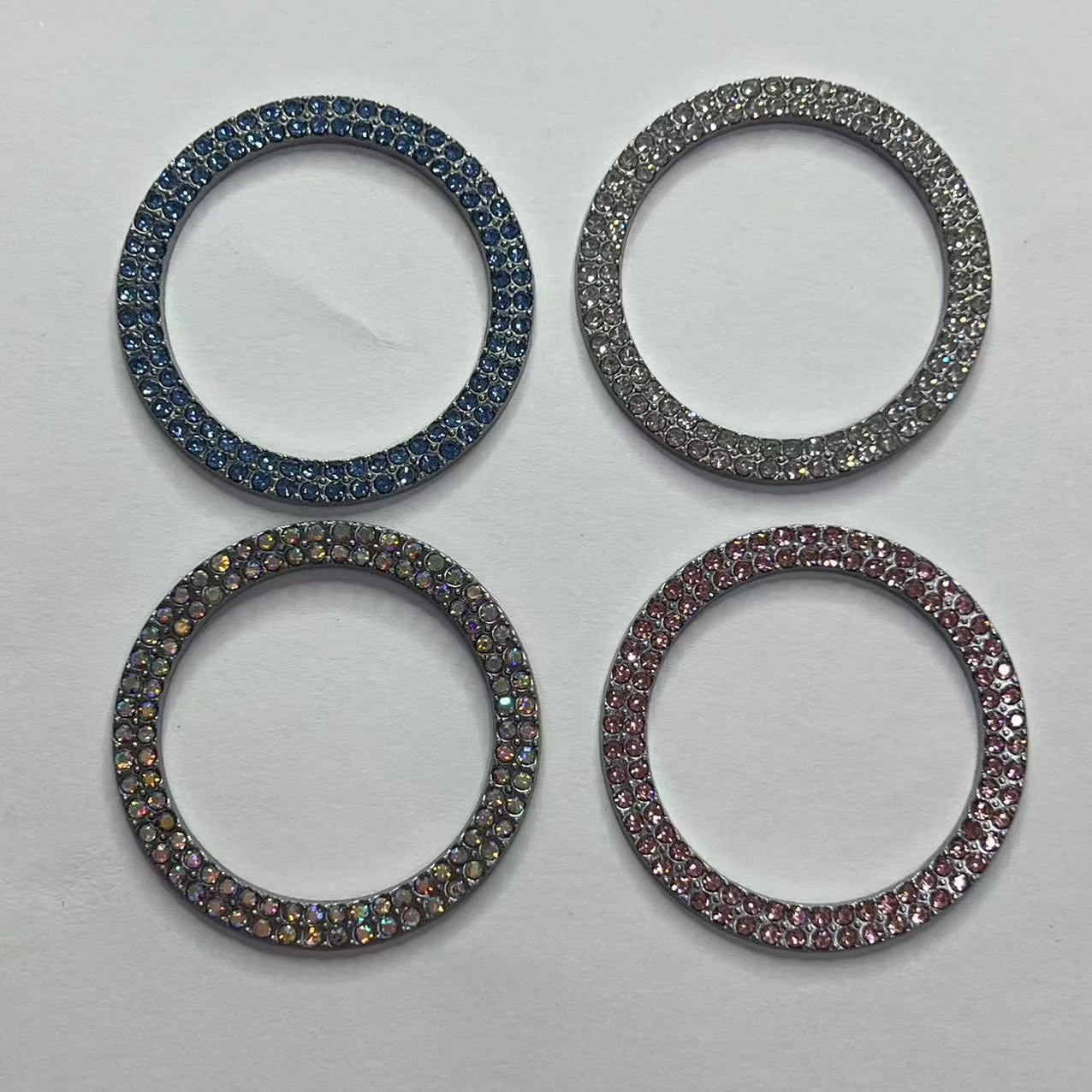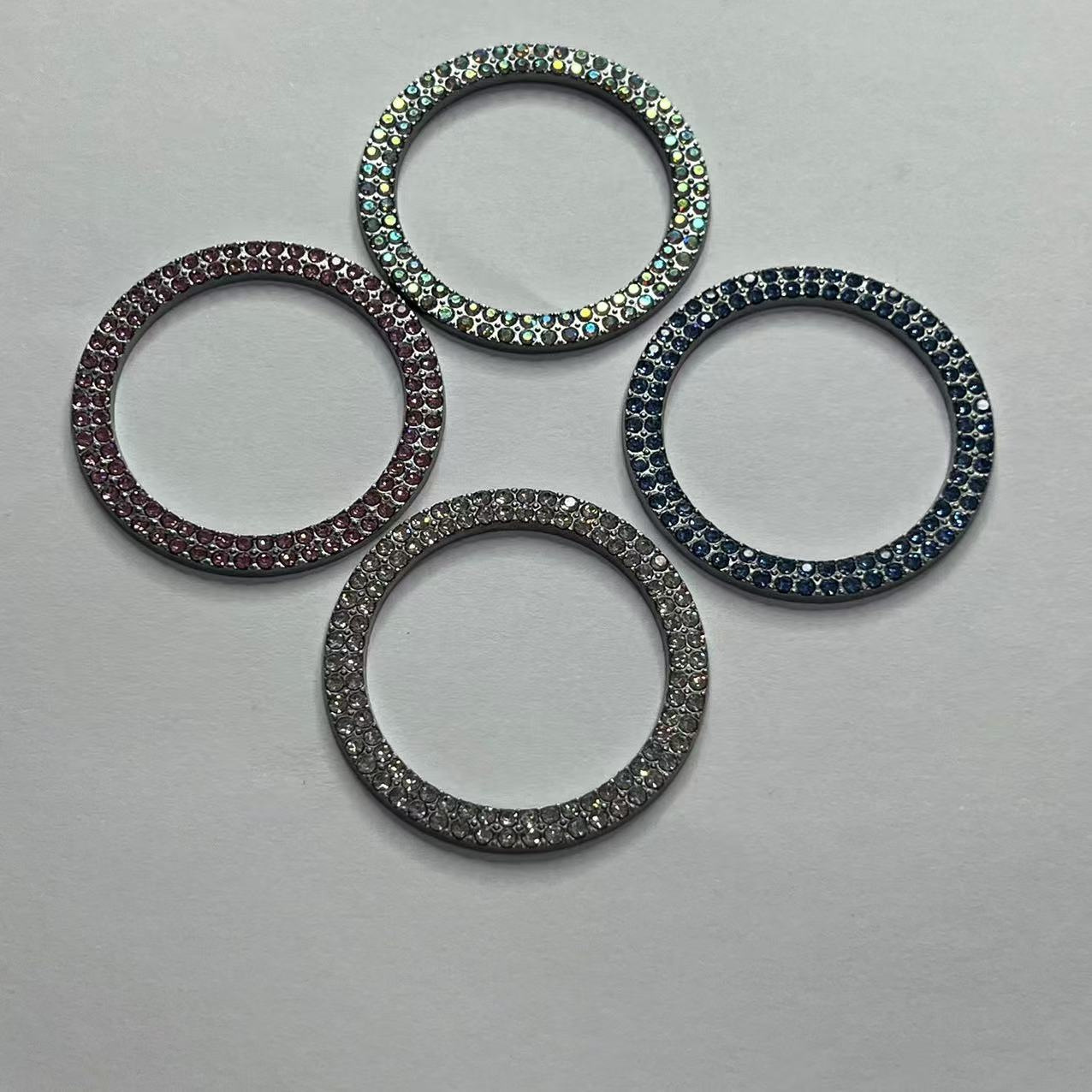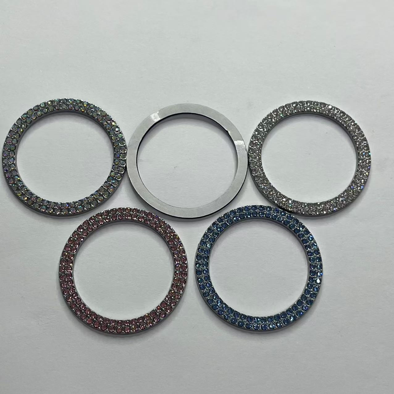 • 다이아몬드가 박힌 원버튼 스타트 링 이중 행 색상