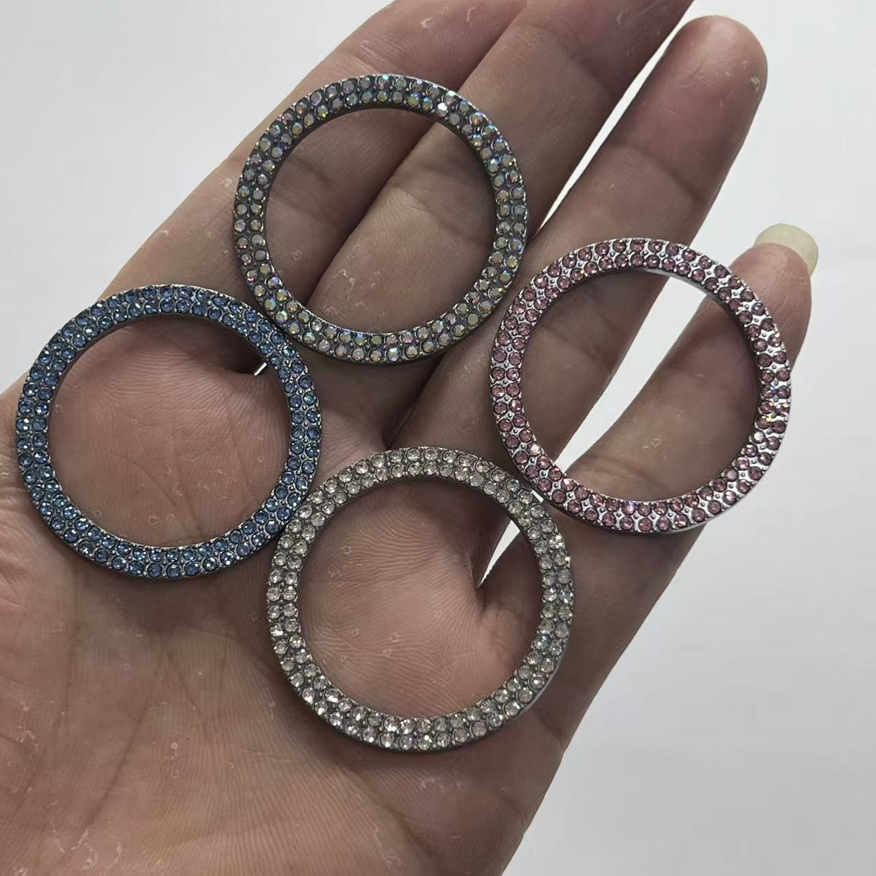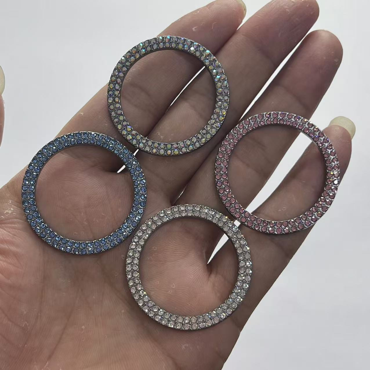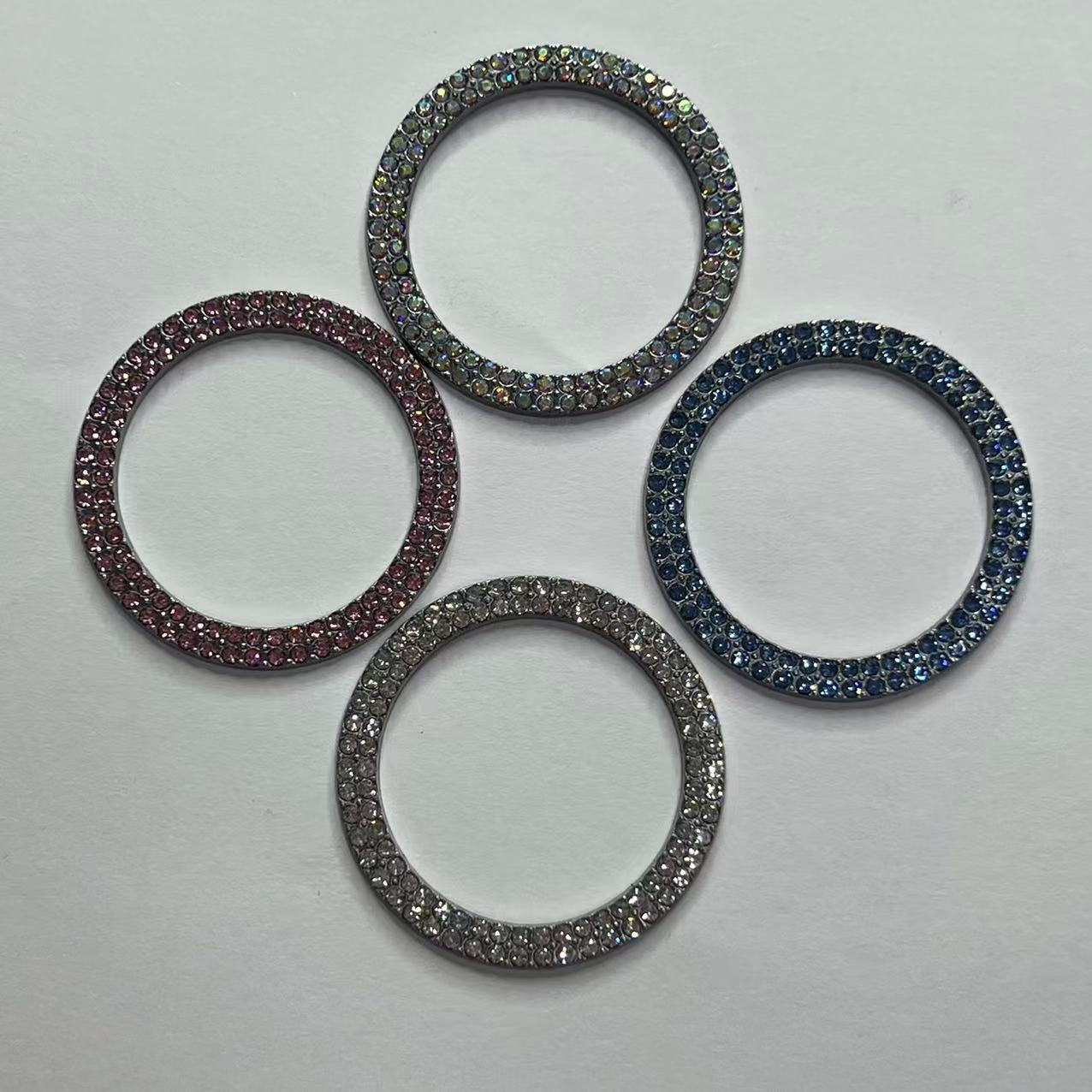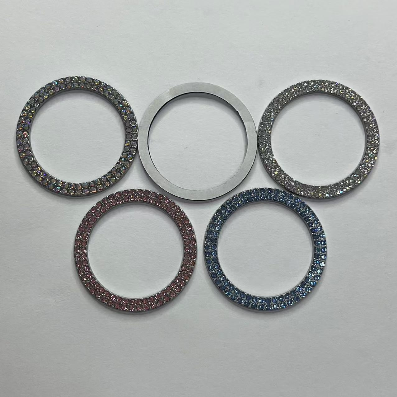 • 다이아몬드가 박힌 원버튼 스타트 링 이중 행 색상