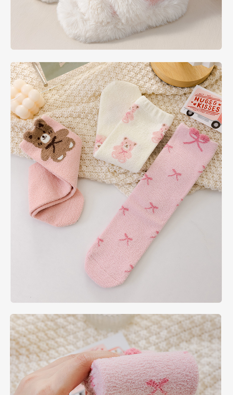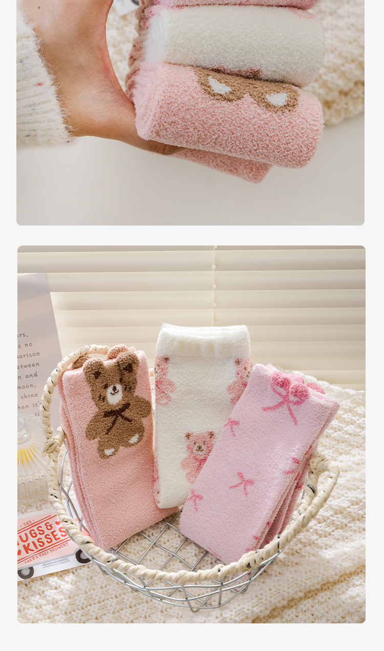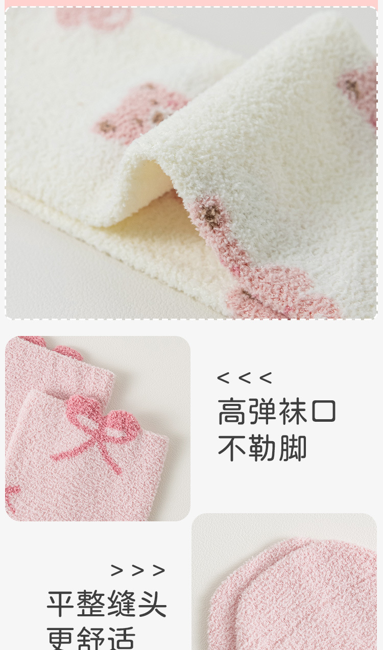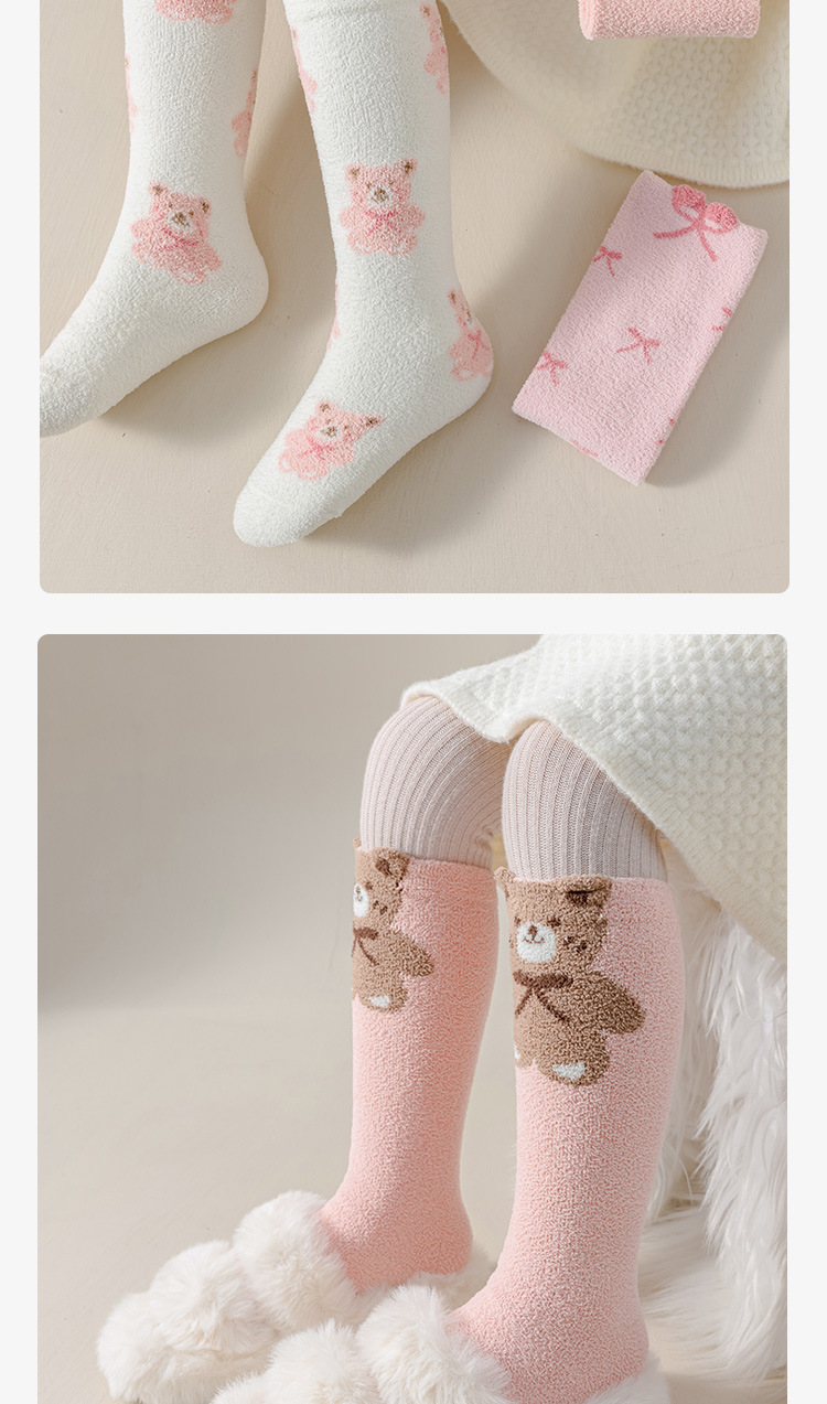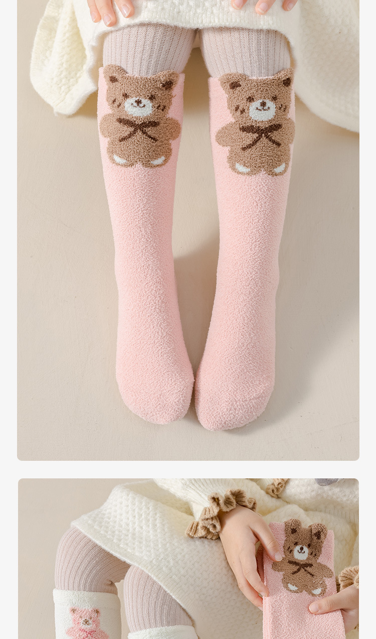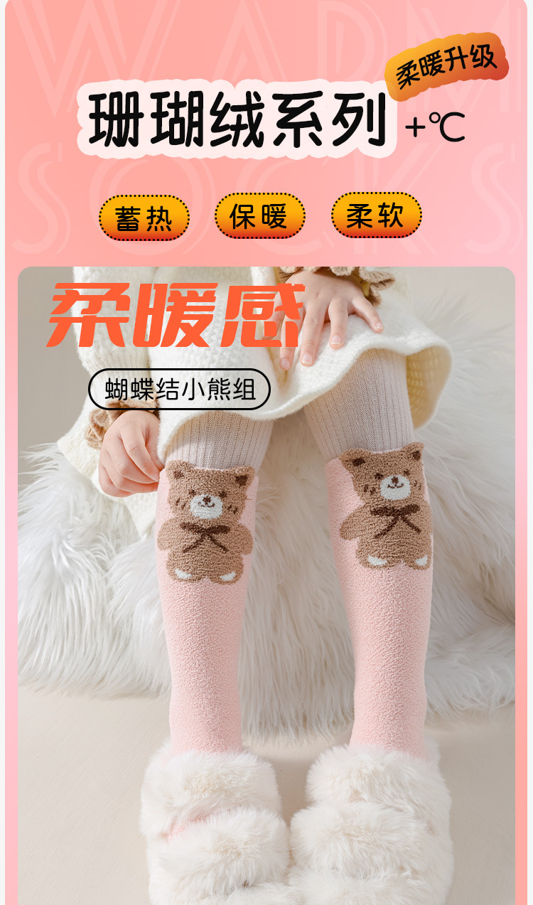 어린이 수면 양말 가을과 겨울 기모 소녀 부모-아이 두꺼운 긴 배럴 곰 만화 높은 배럴 따뜻한 산호 벨벳 양말스토어 가기