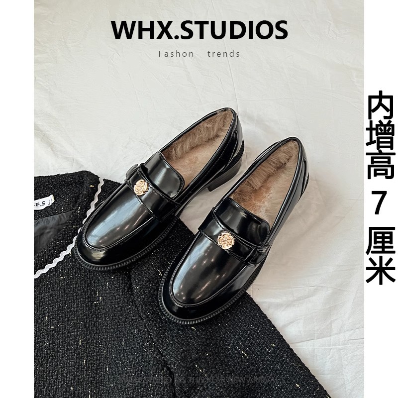 토끼 모피 버전 ~ 정품 가죽 동백 작은 가죽 신발 여성의 가을과 겨울 기모 두꺼운 발 뒤꿈치 슬립 온 로퍼 여성용 싱글 레이어 신발스토어 가기