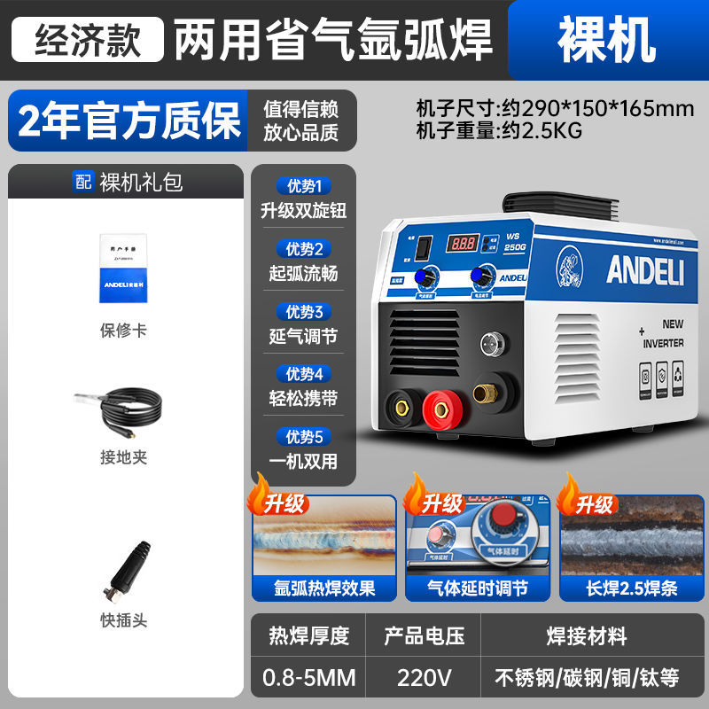 안드레이 WS-250 산업 아르곤 아크 용접 기계 220V 가정용 작은 스테인리스 저온 이중 목적 용접 기계
