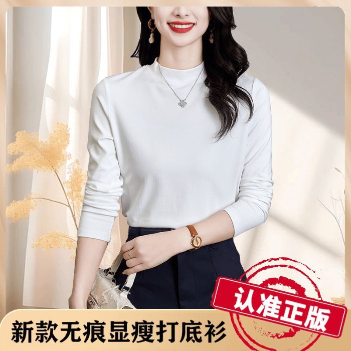 [카운터 정품] 새로운 작은 칼라베이스 셔츠 긴 소매 패션 올 매치 슬림 가을과 겨울 높은 칼라 긴 소매스토어 가기
