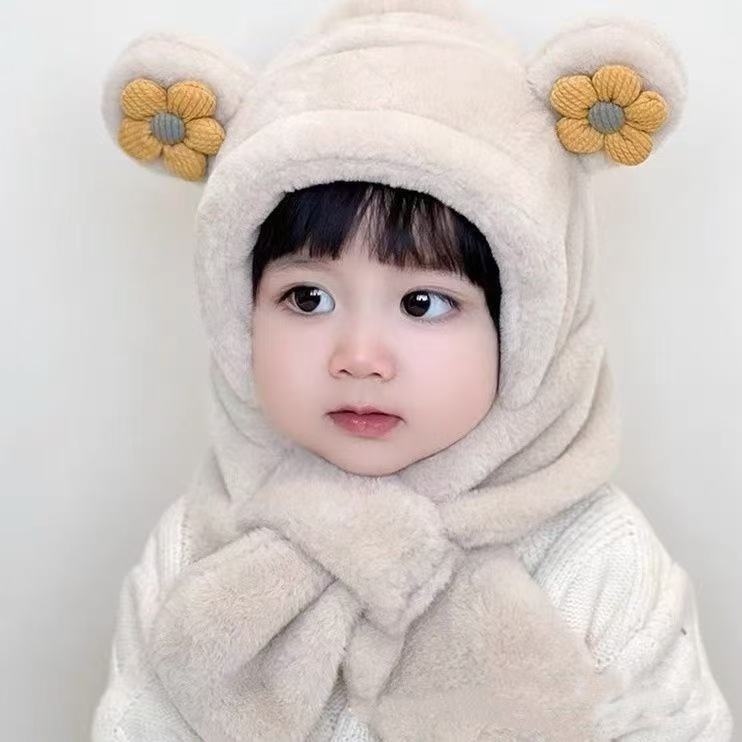 아기의 겨울 기모 두꺼운 따뜻한 모자와 스카프 통합 방풍 귀 보호 소년과 소녀의 두꺼운 푹신한 모자