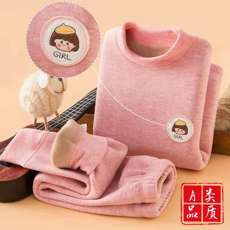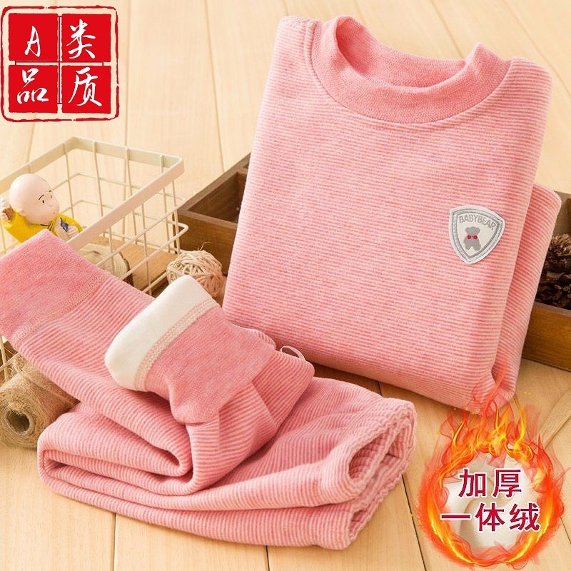 어린이 겨울 기모 두꺼운 열 속옷 소년 소녀 아기 젖병 세트 가을 옷과 바지