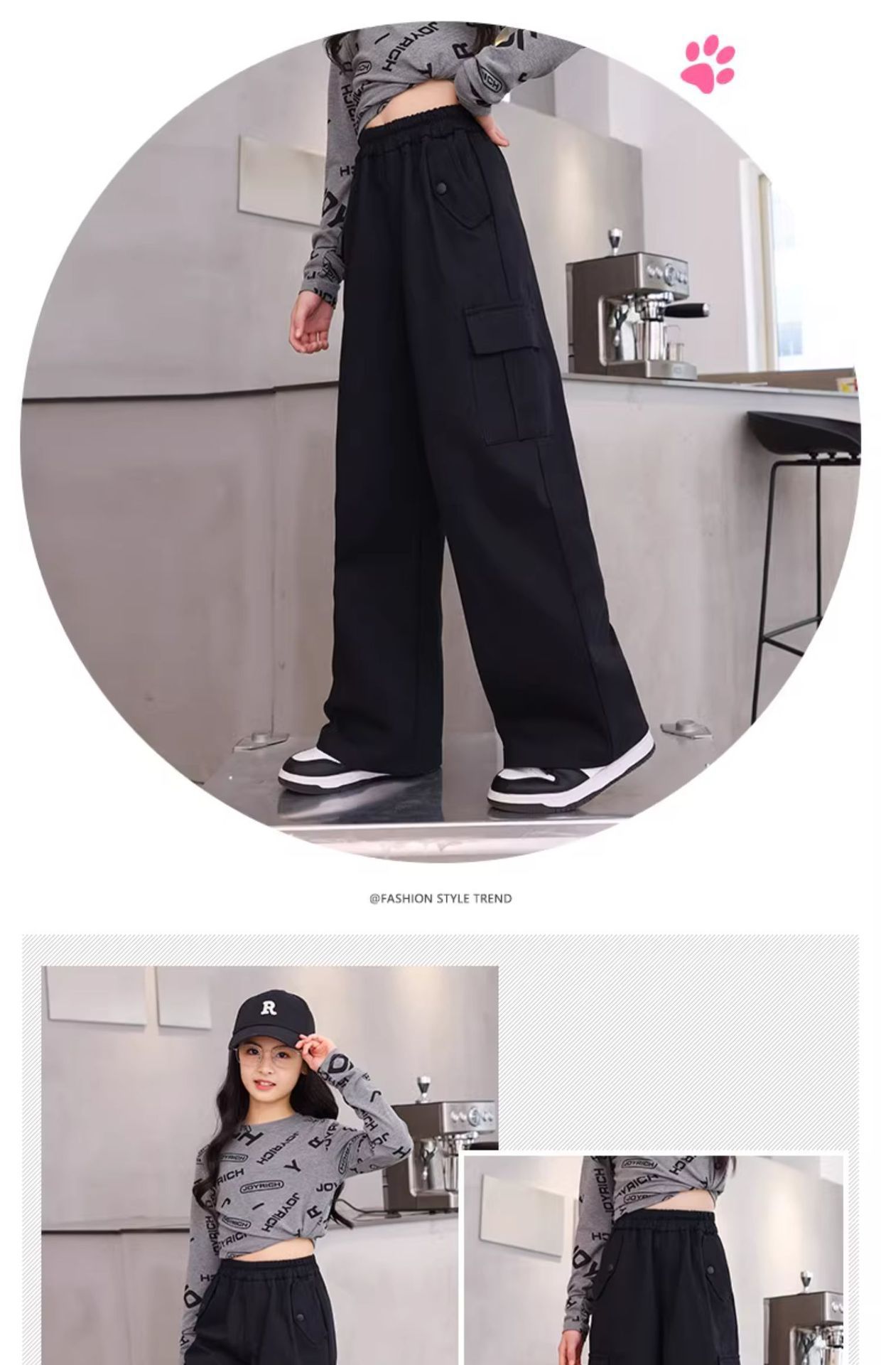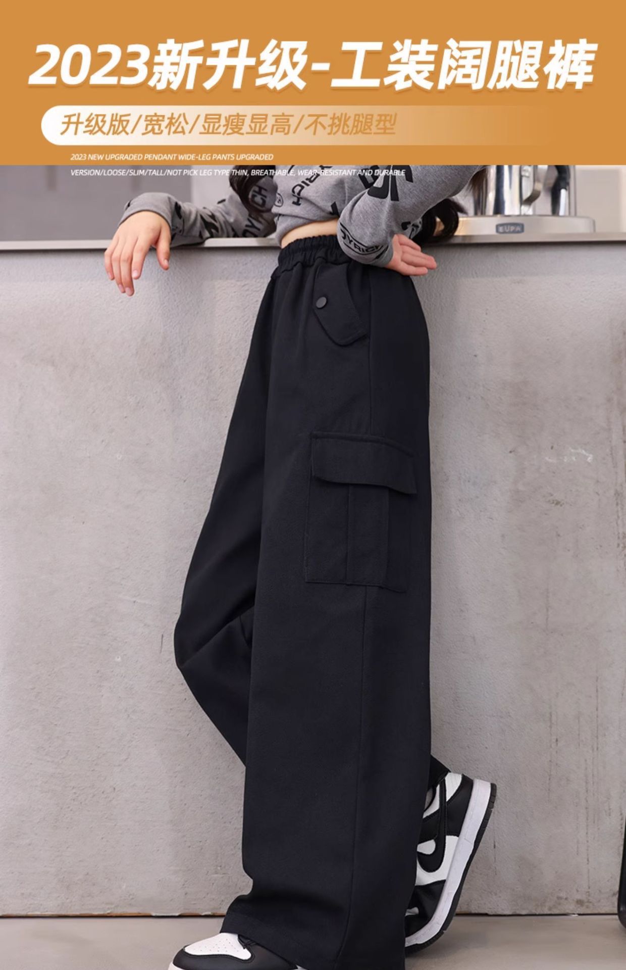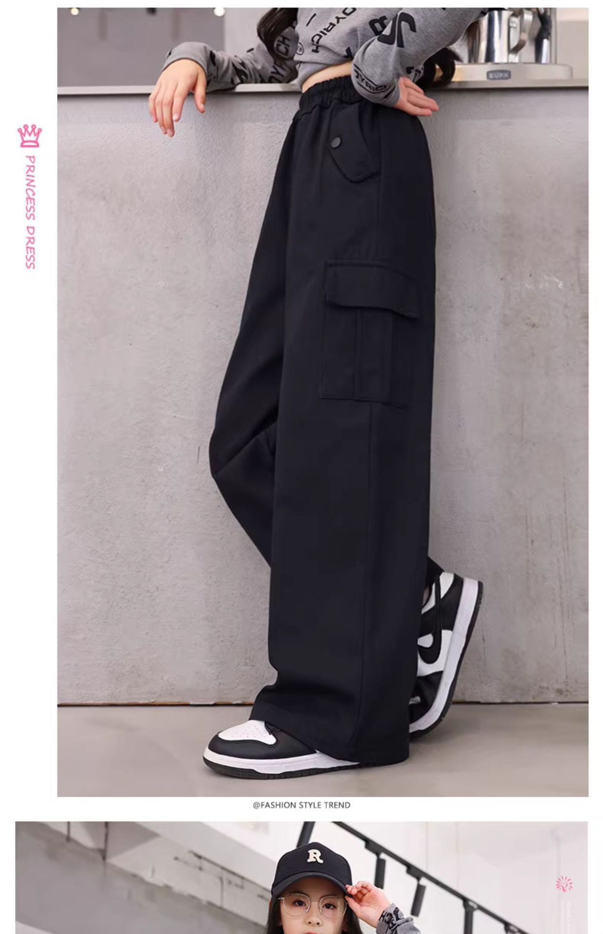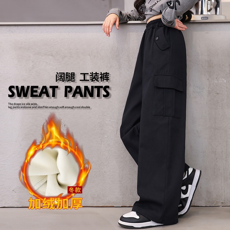 소녀 바지 가을과 겨울 어린이 2024 새로운 겨울 넓은 다리 크레인 바지 기모 겨울 두꺼운 겨울 착용스토어 가기