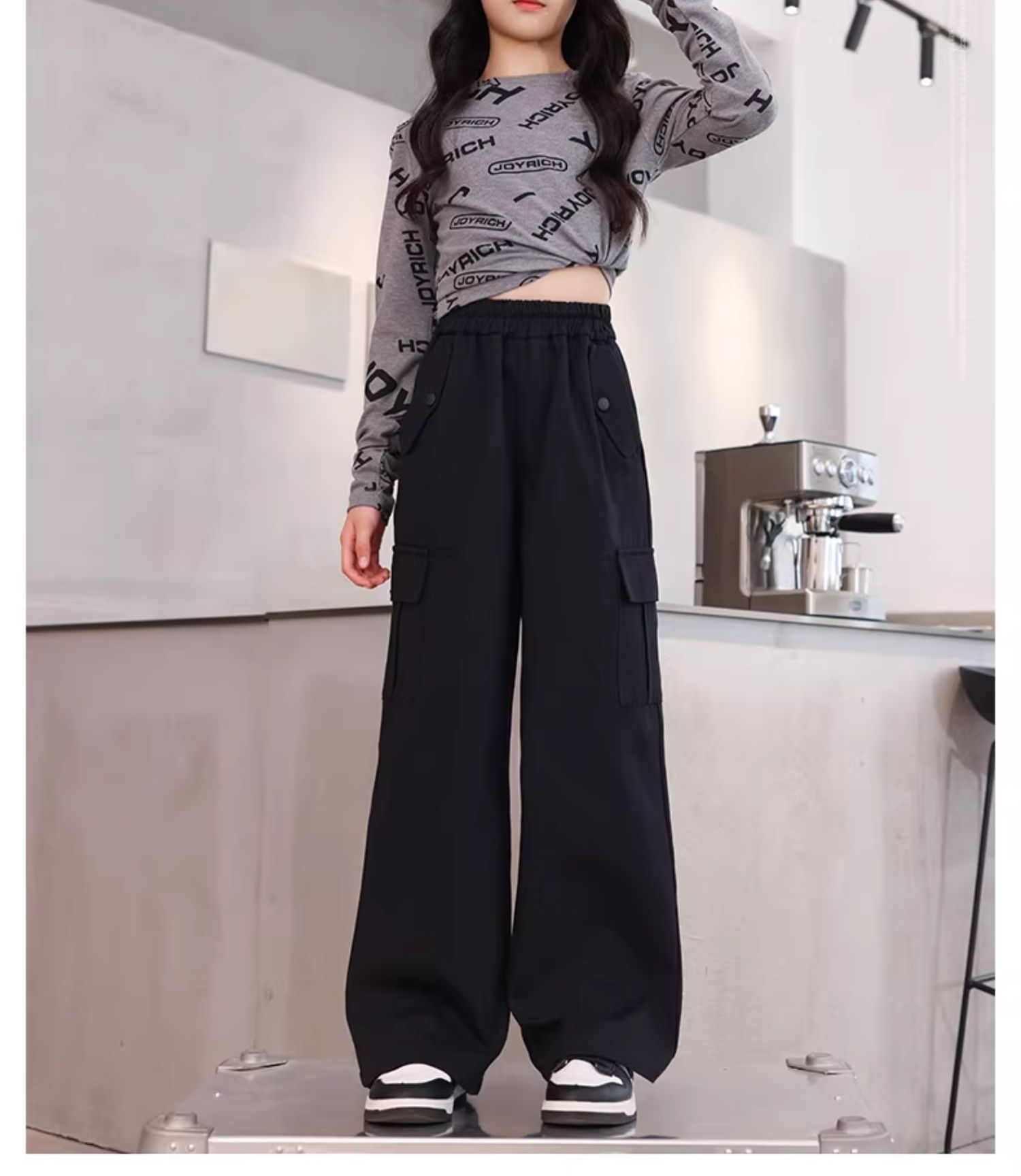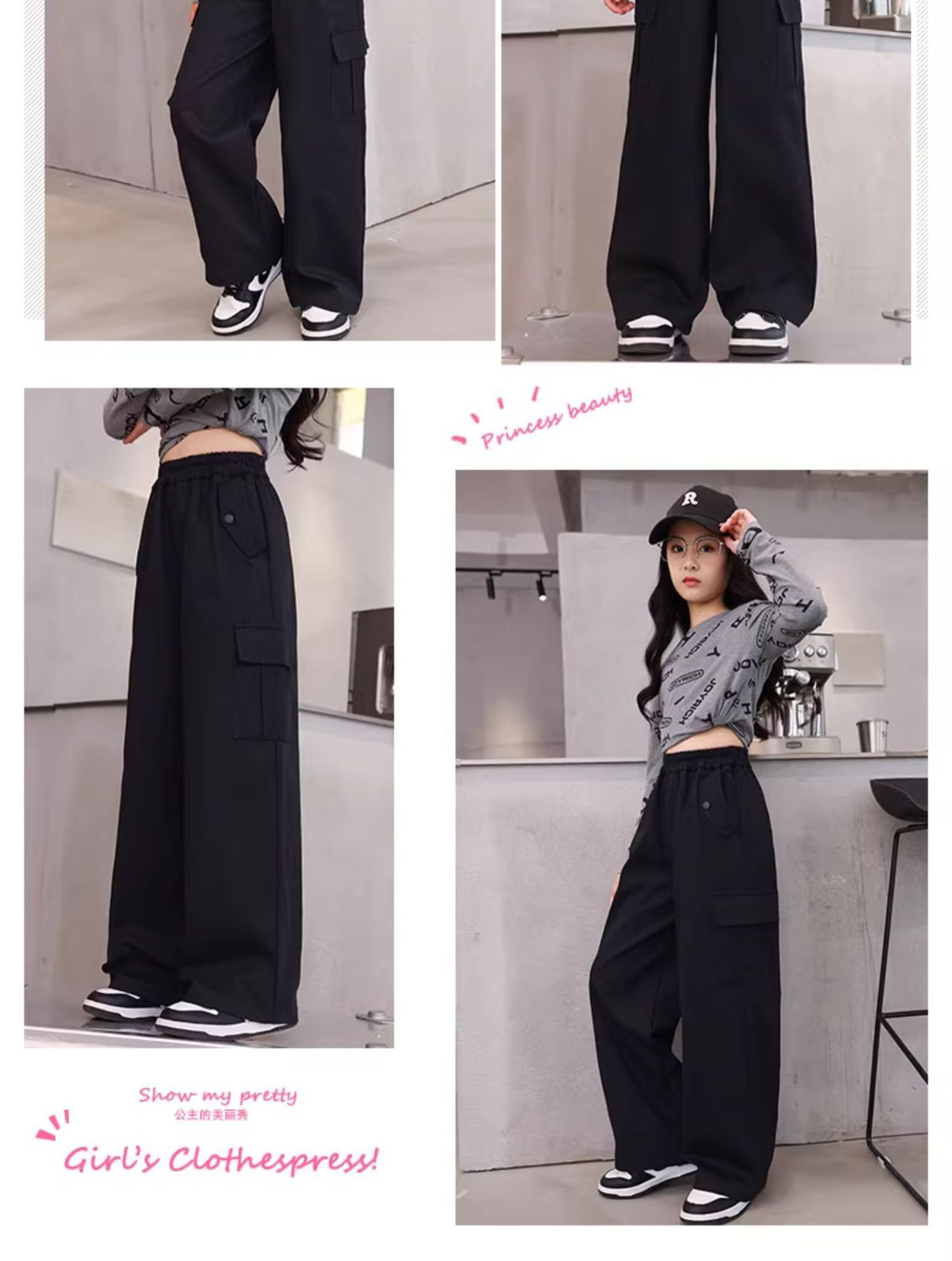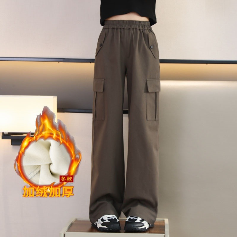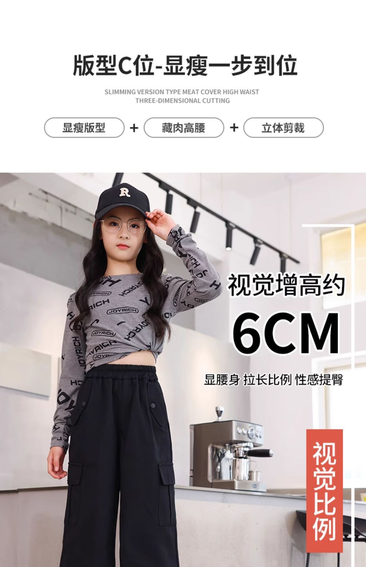 소녀 바지 가을과 겨울 어린이 2024 새로운 겨울 넓은 다리 크레인 바지 기모 겨울 두꺼운 겨울 착용스토어 가기